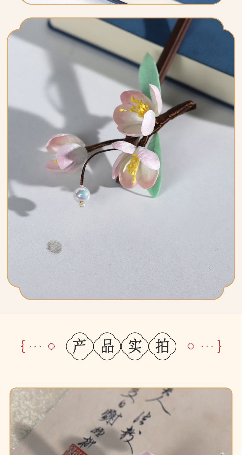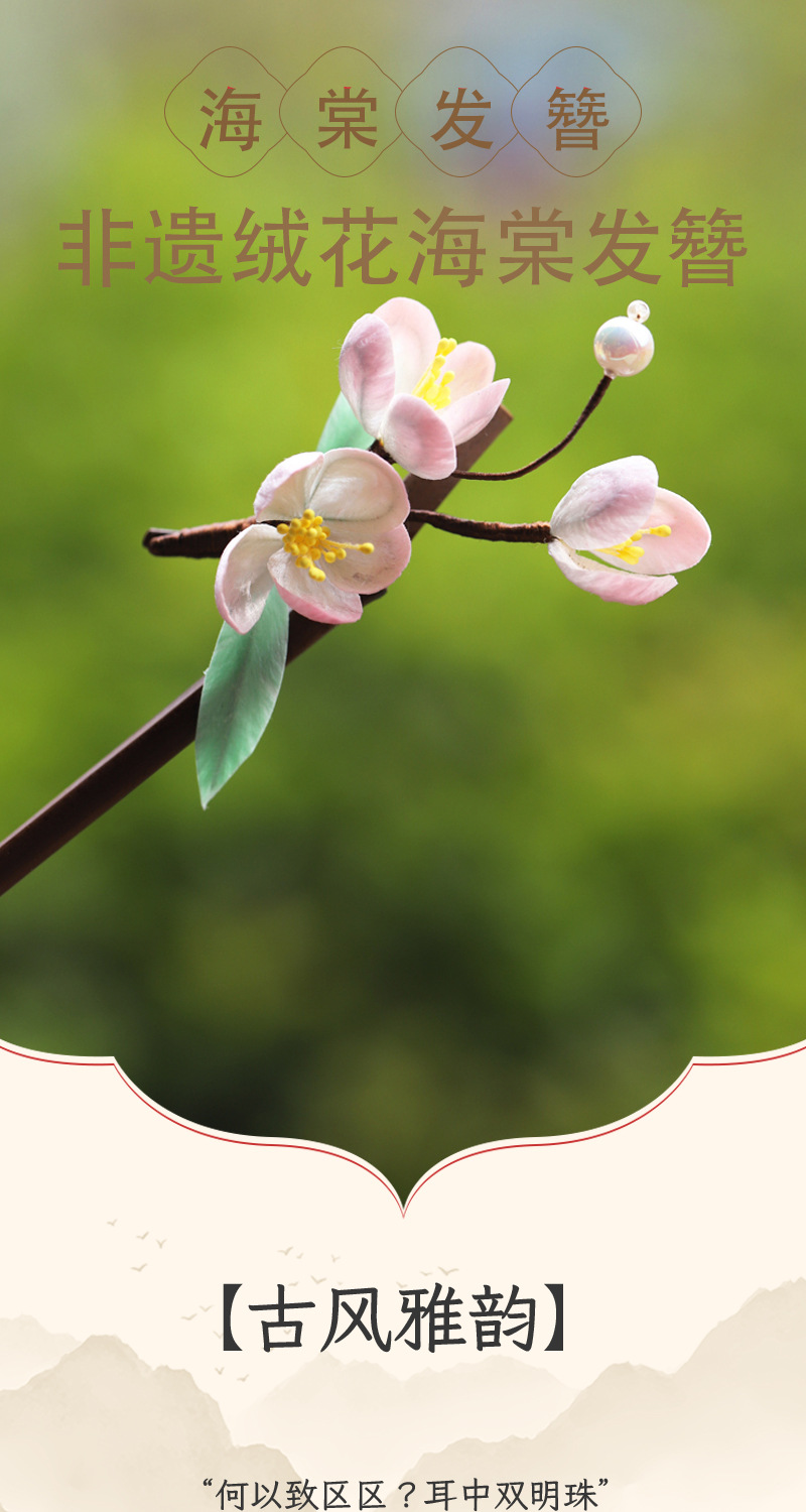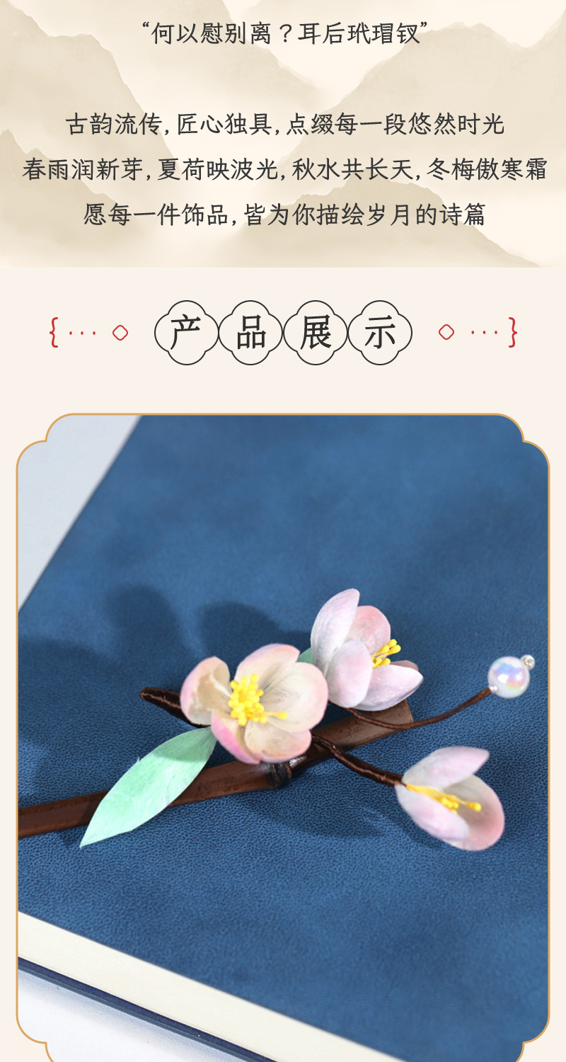 手工非遗蚕丝绒花发簪国风新中式发饰复古旗袍头饰日常百塔可送礼