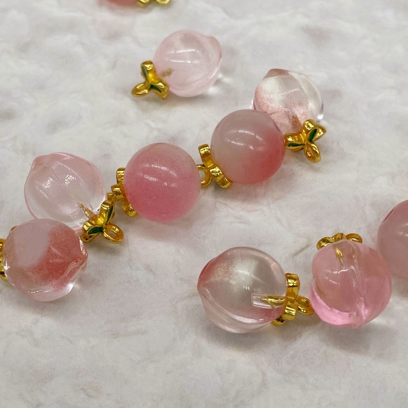 新款水晶桃子吊坠水蜜桃小滴溜配饰手链手串diy饰品配件挂坠材料