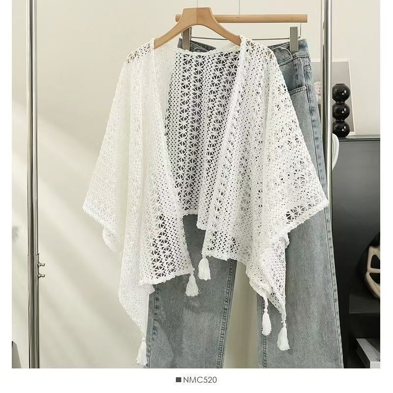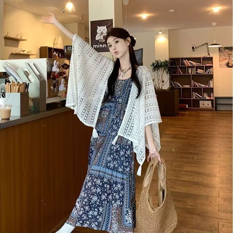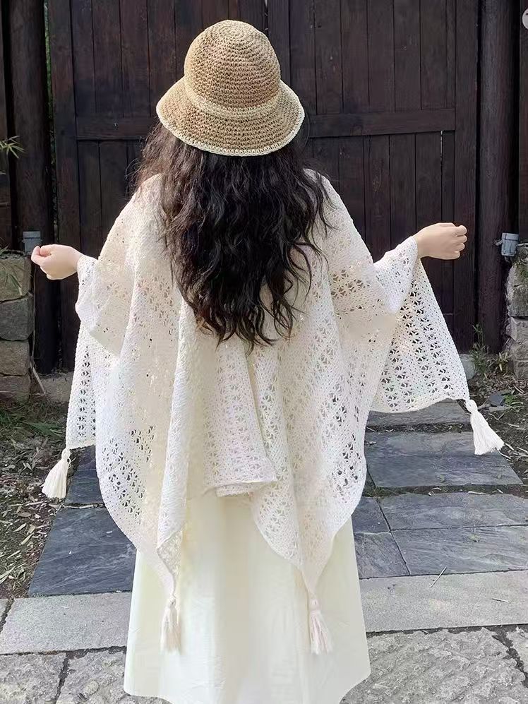 云南新疆三亚旅拍复古民族风镂空流苏开衫沙滩连衣裙外搭女夏季披