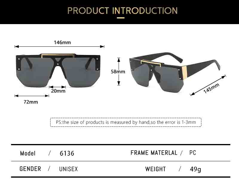 现货欧美高级高端轻奢大框太阳镜男女半框多边形眼镜户外骑行墨镜