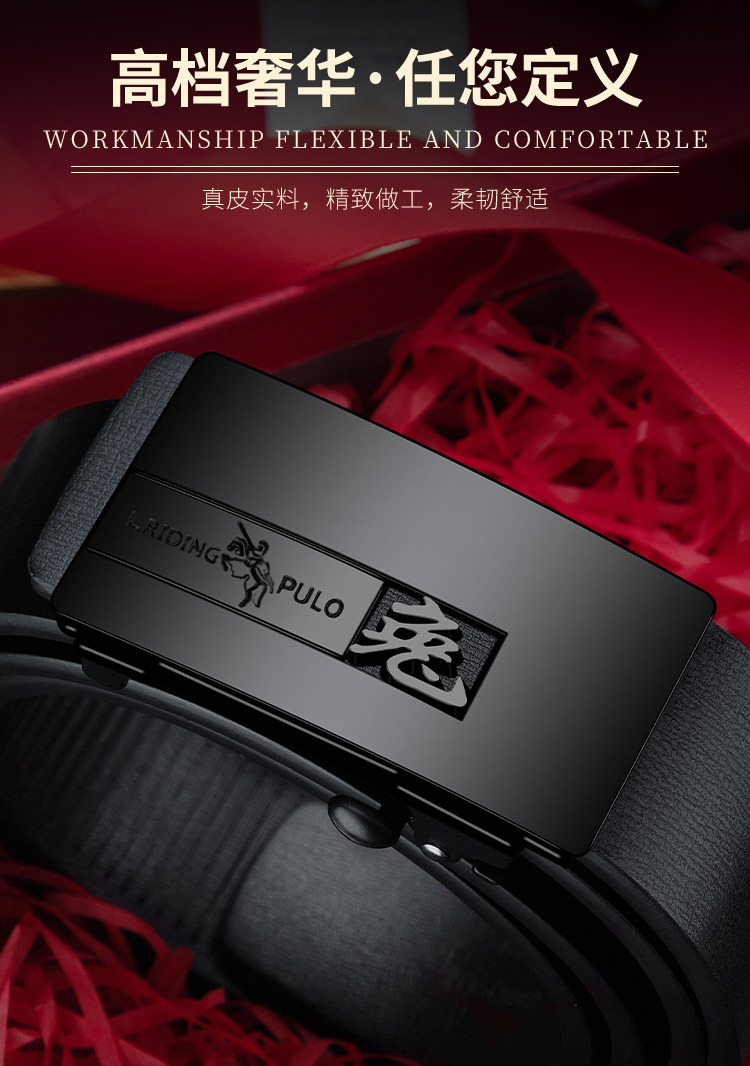 【新人补贴】保罗十二生肖皮带男士时尚简约自动扣腰带高档商务裤