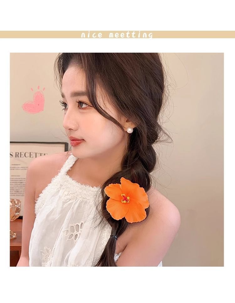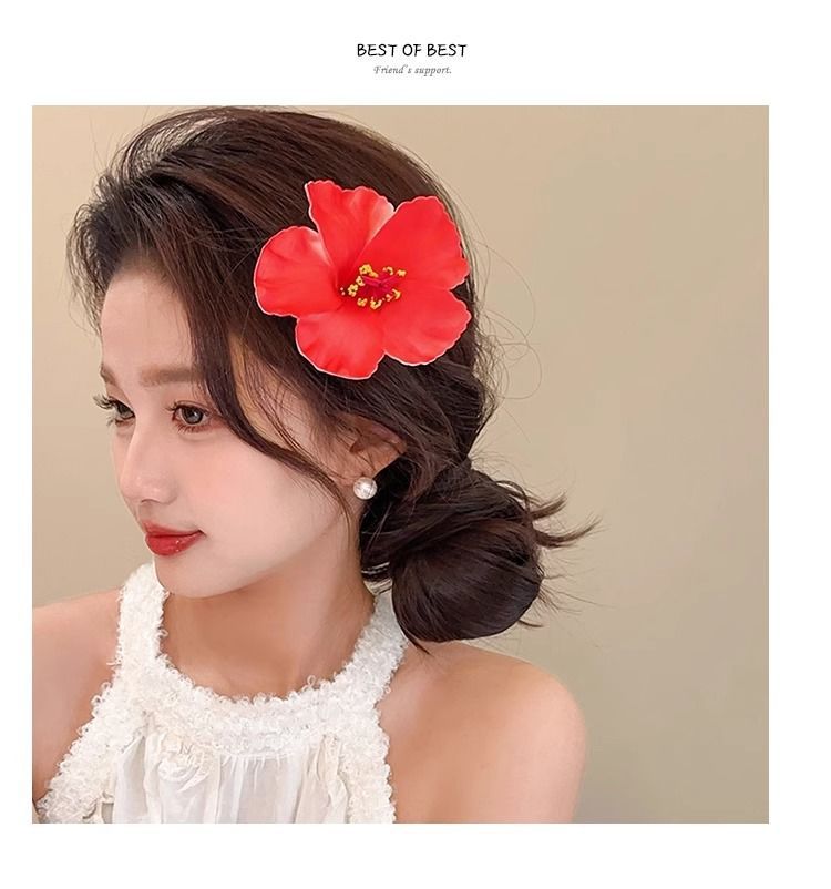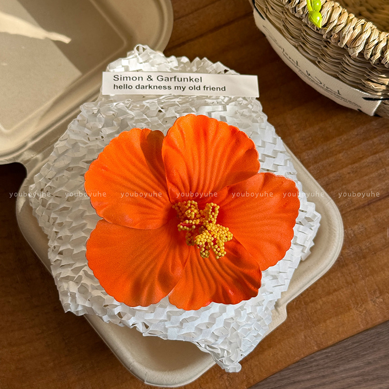 早春氛围感~甜美海边度假风仿真扶桑花发夹女波西米亚鸡蛋花发饰