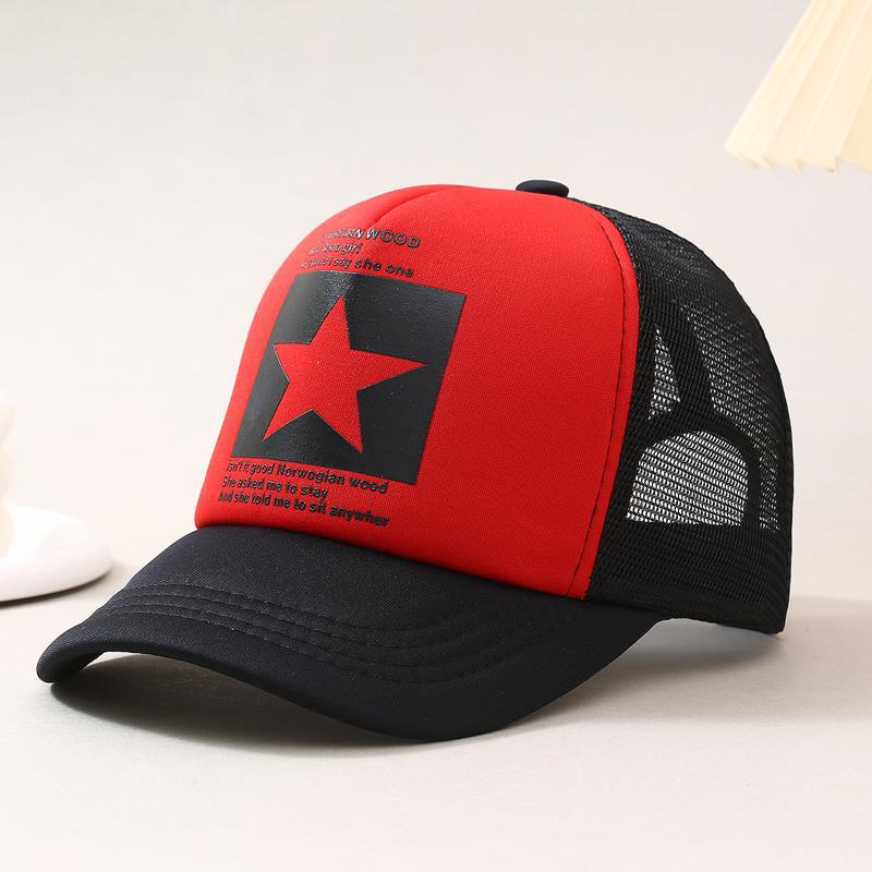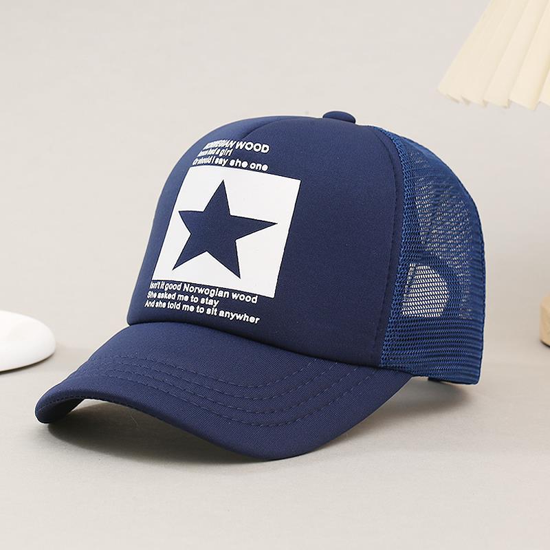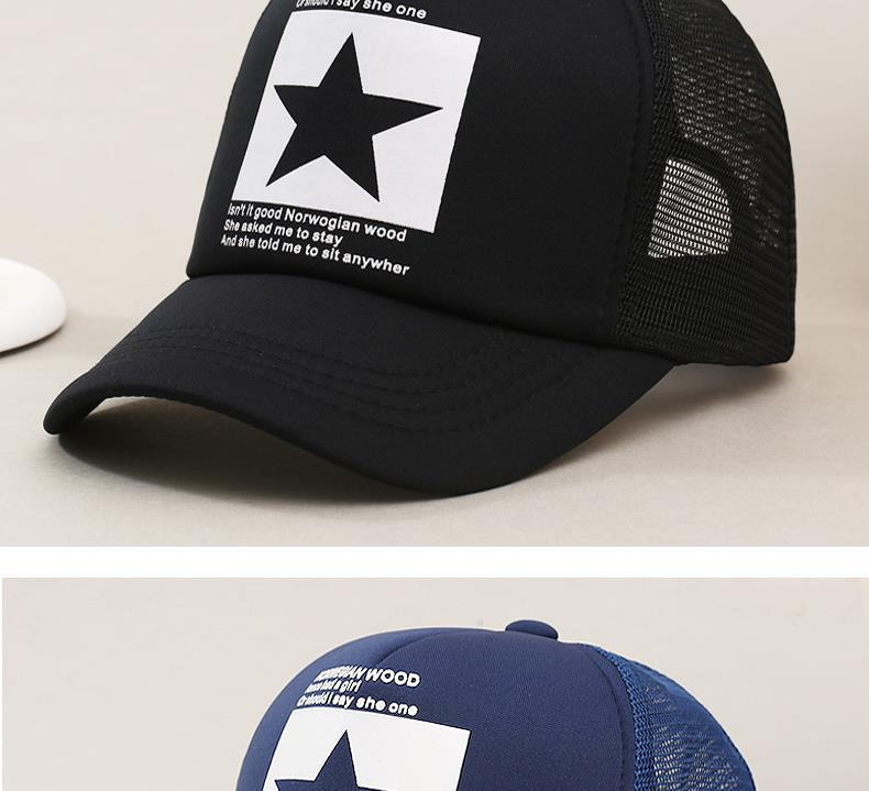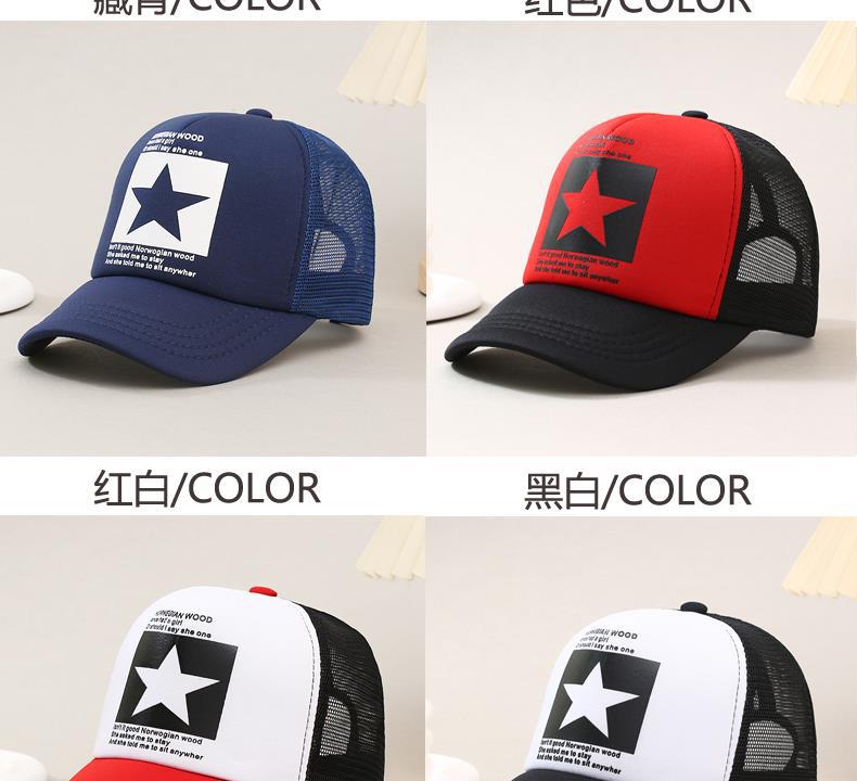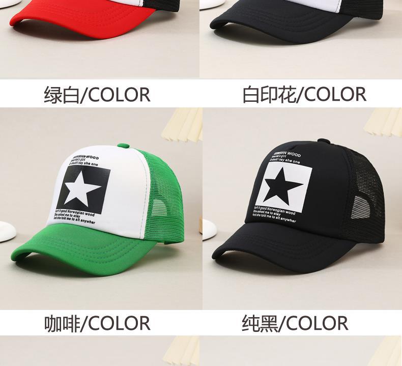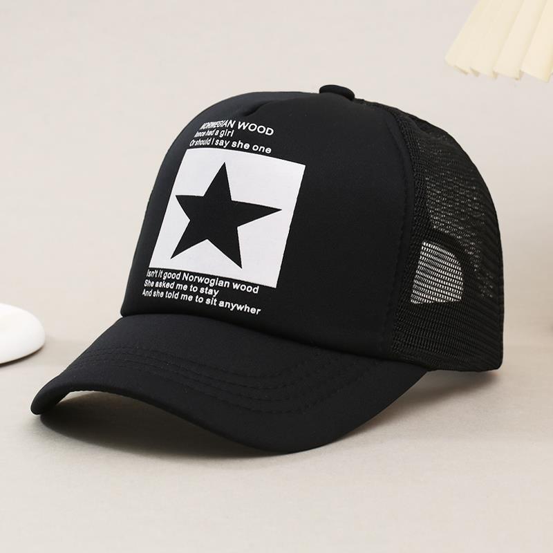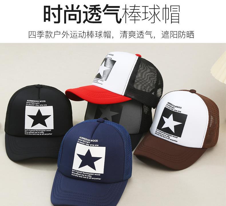帽子男韩版鸭舌帽五角星印花棒球帽女夏天防晒透气网帽青年货车帽