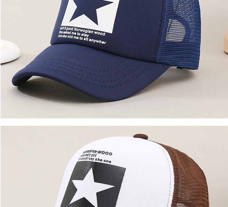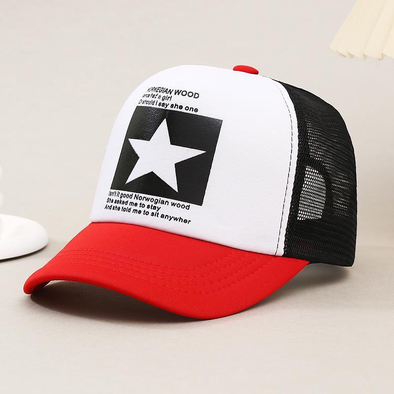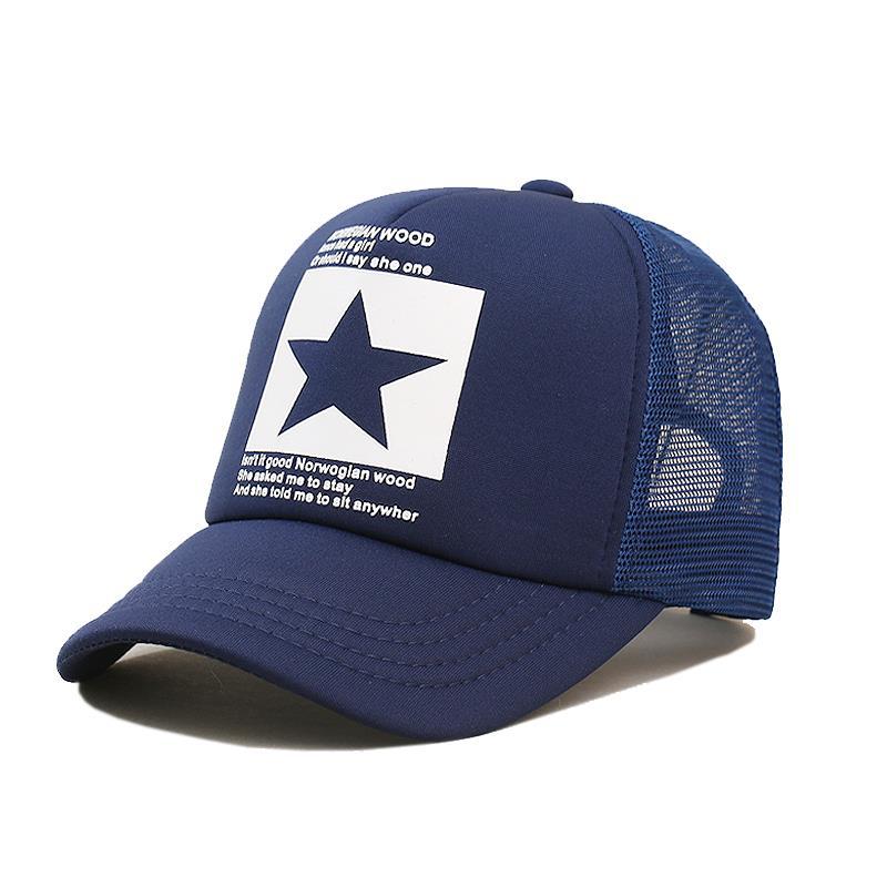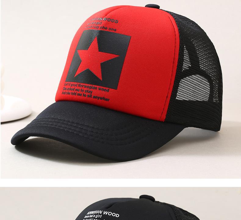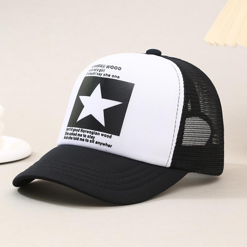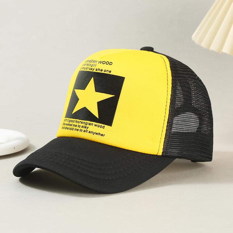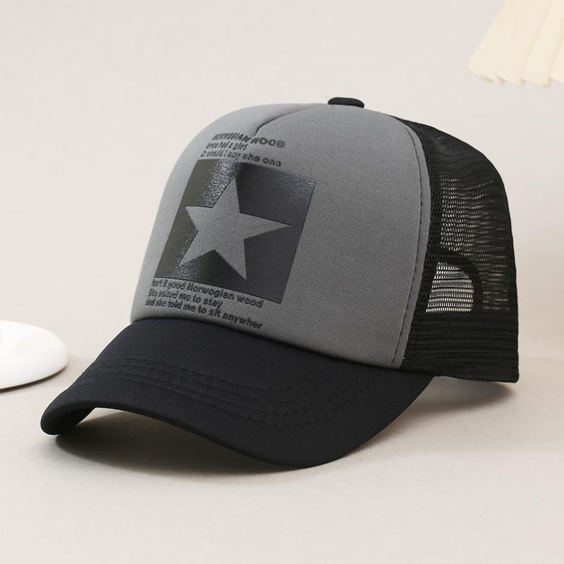 帽子男韩版鸭舌帽五角星印花棒球帽女夏天防晒透气网帽青年货车帽