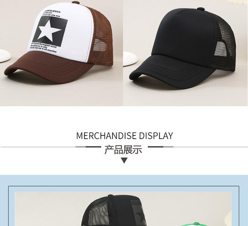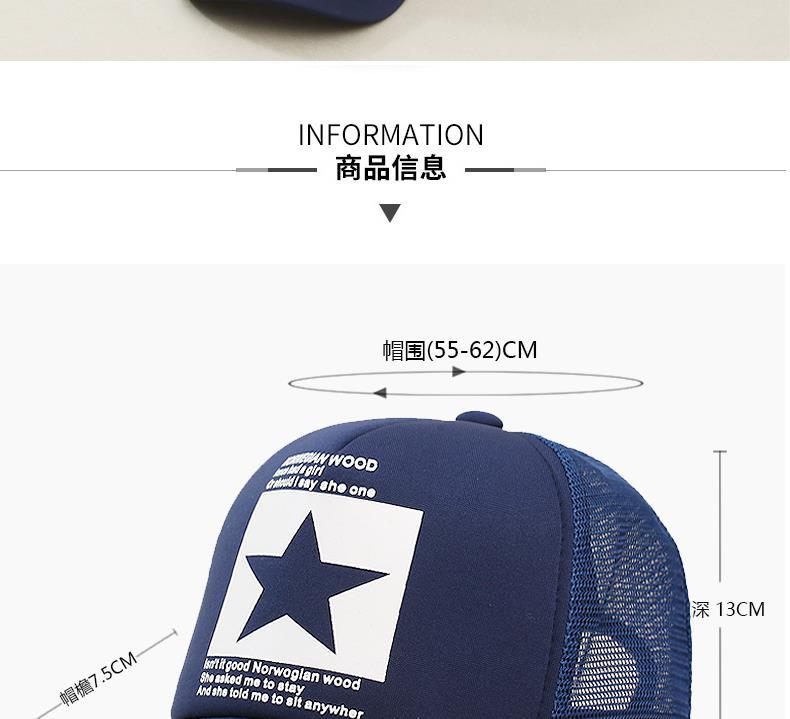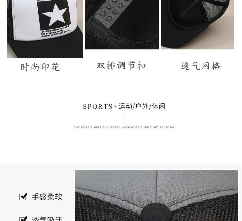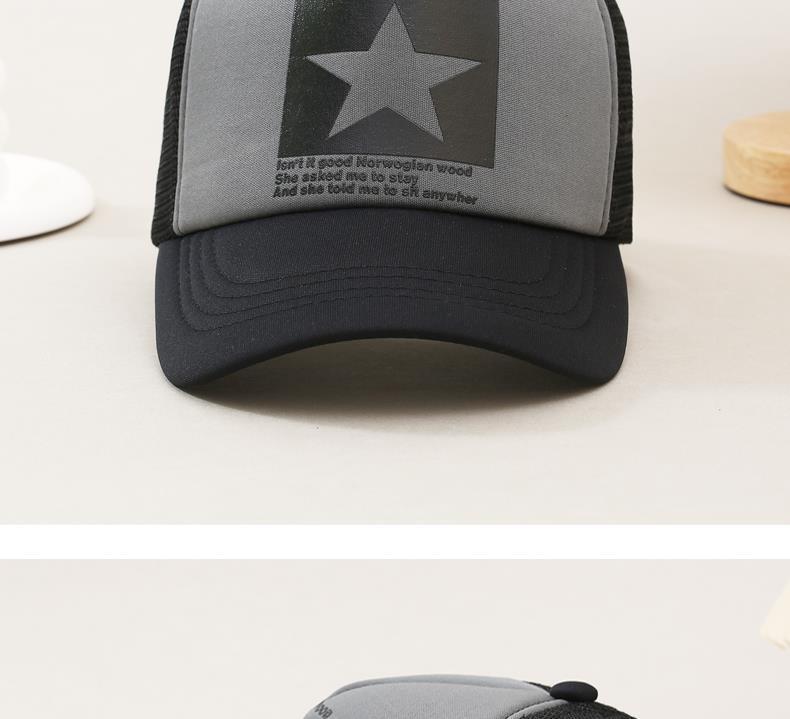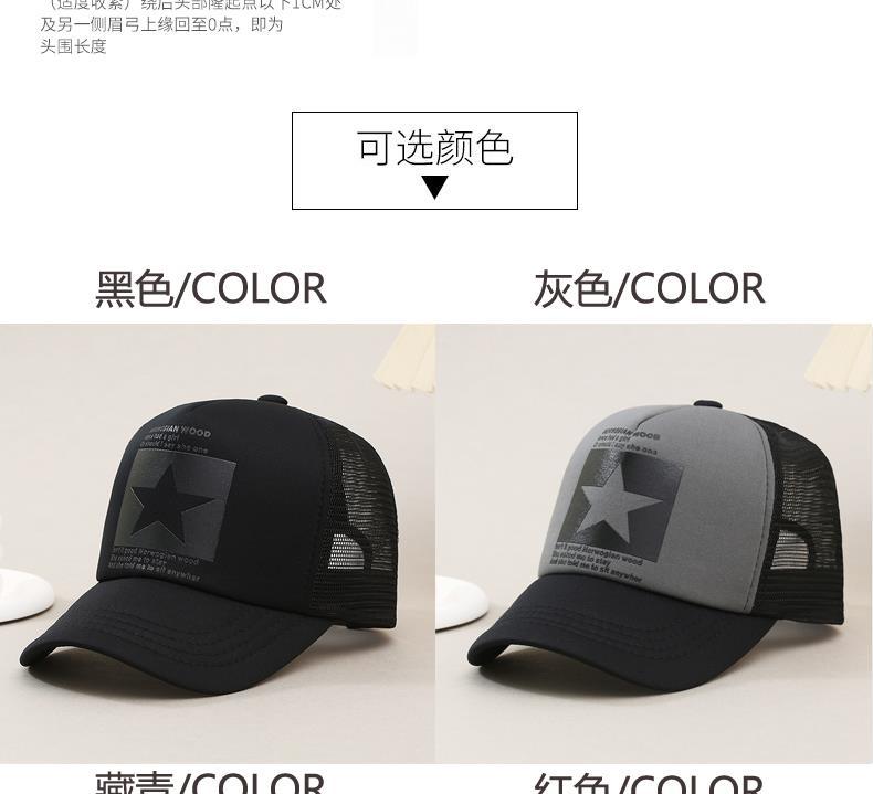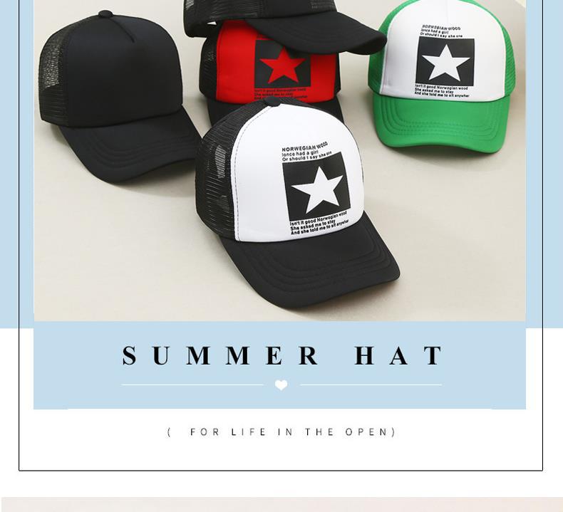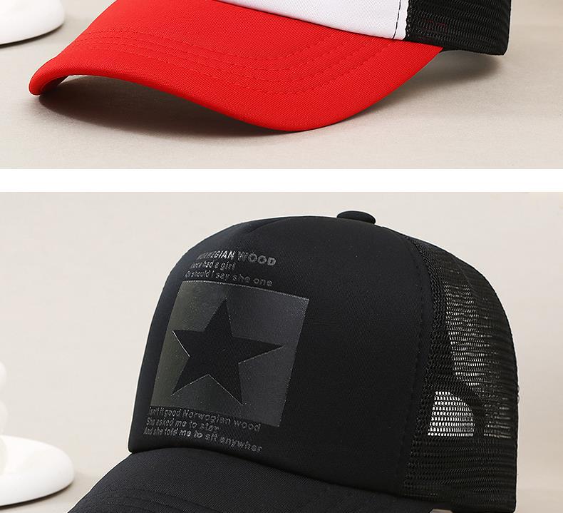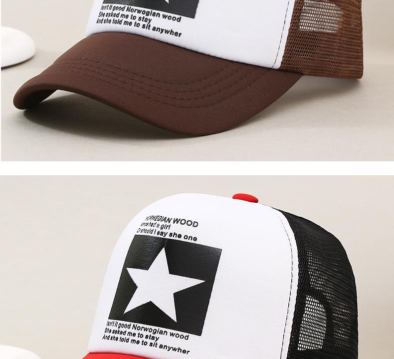 帽子男韩版鸭舌帽五角星印花棒球帽女夏天防晒透气网帽青年货车帽