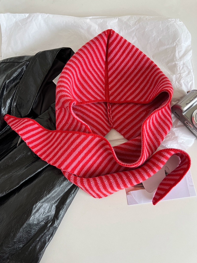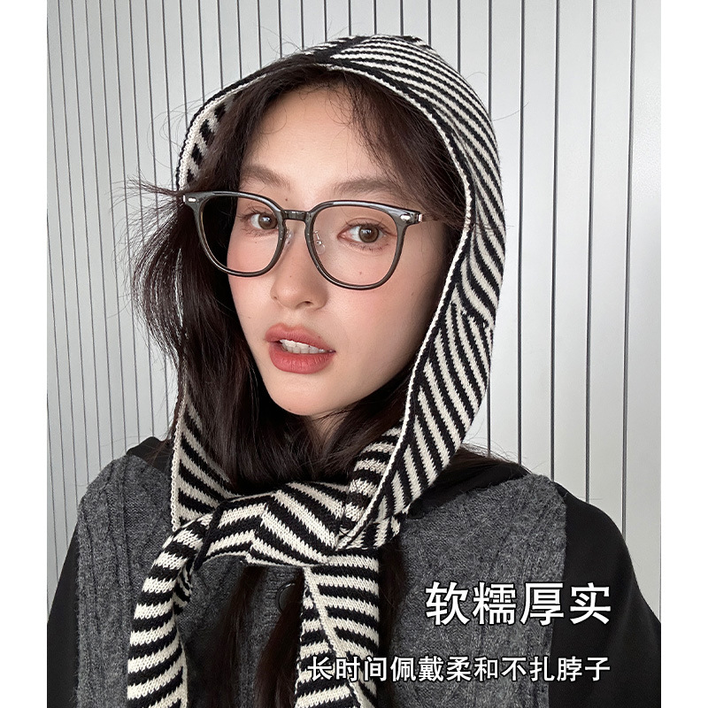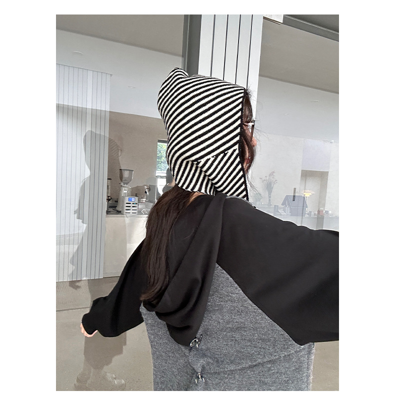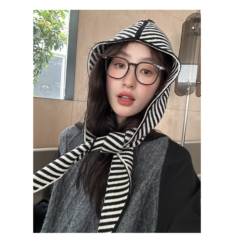 多种风格秋冬韩版条纹帽子围巾一体女保暖披肩围脖毛线针织帽连帽