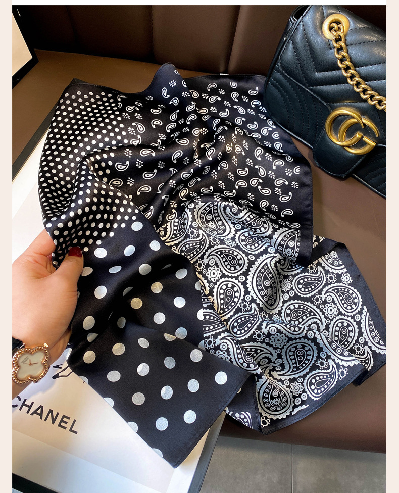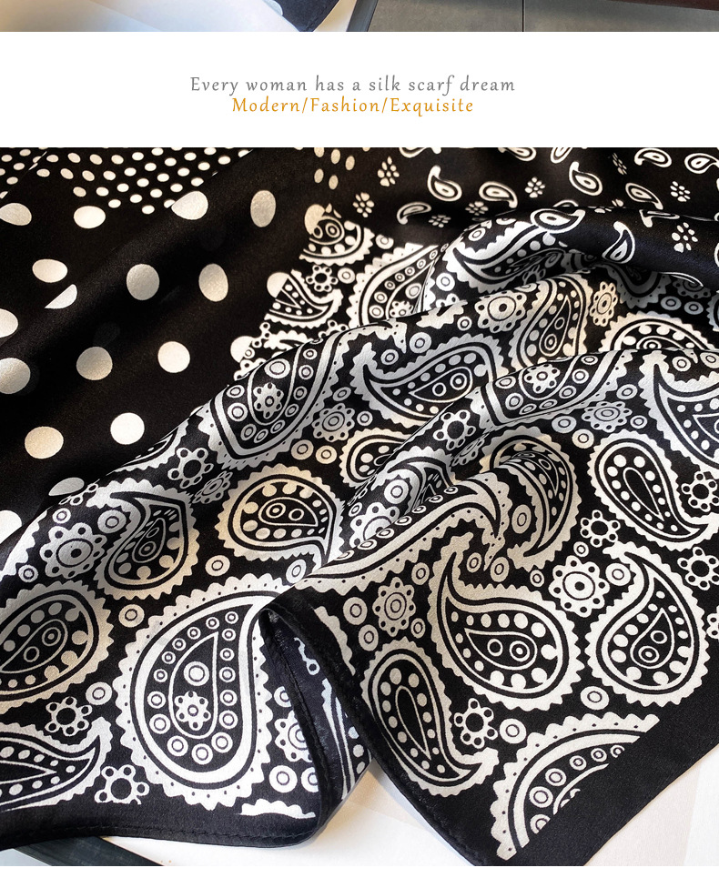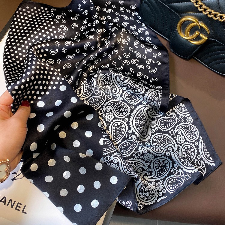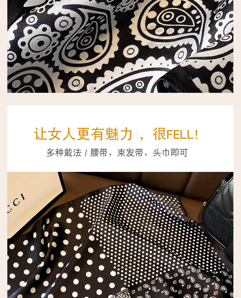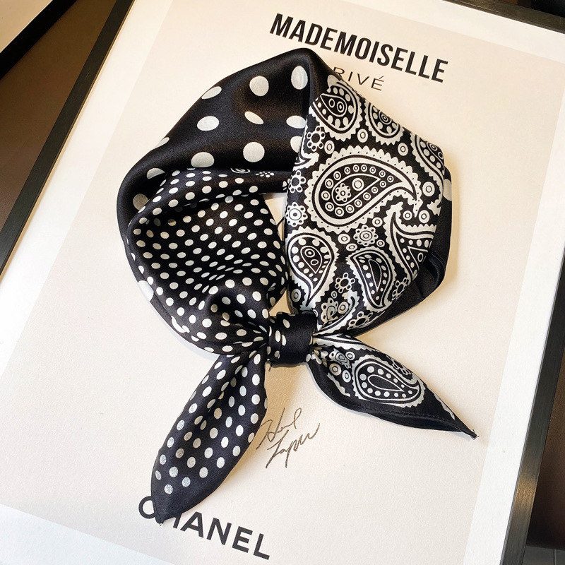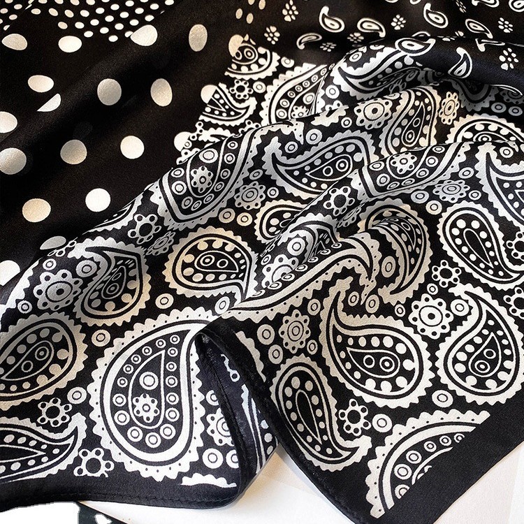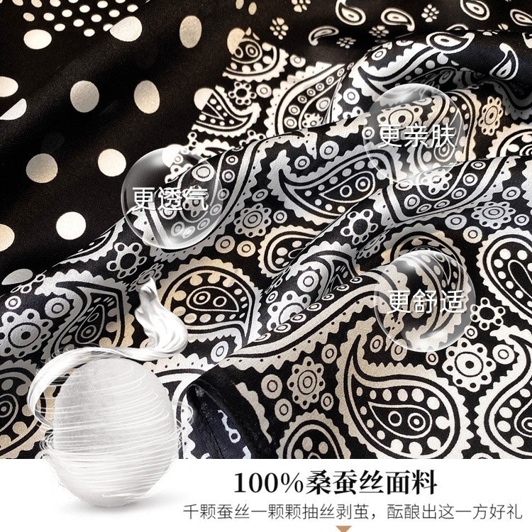 黑色腰果花真丝小方巾丝巾女春秋杭州丝绸小领巾桑蚕丝围巾搭衬衫