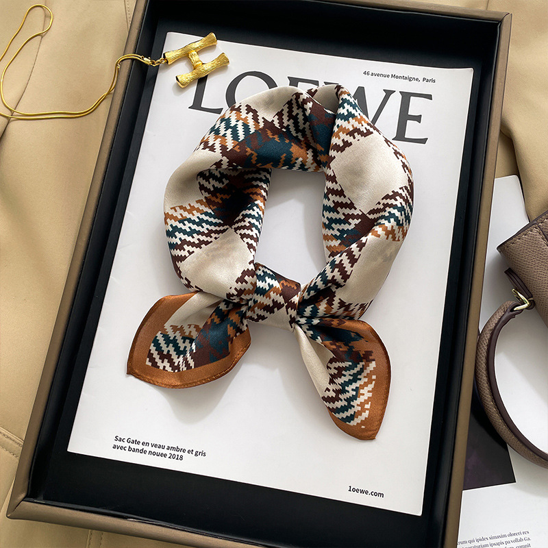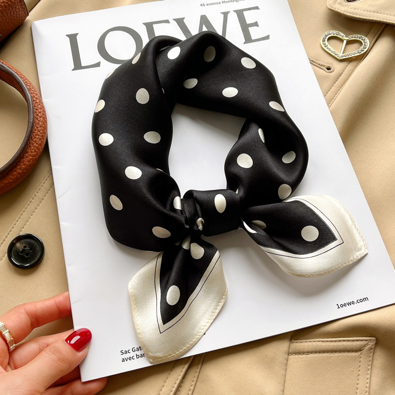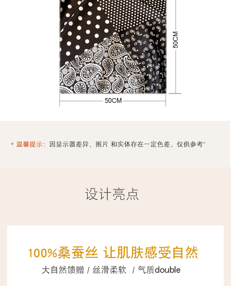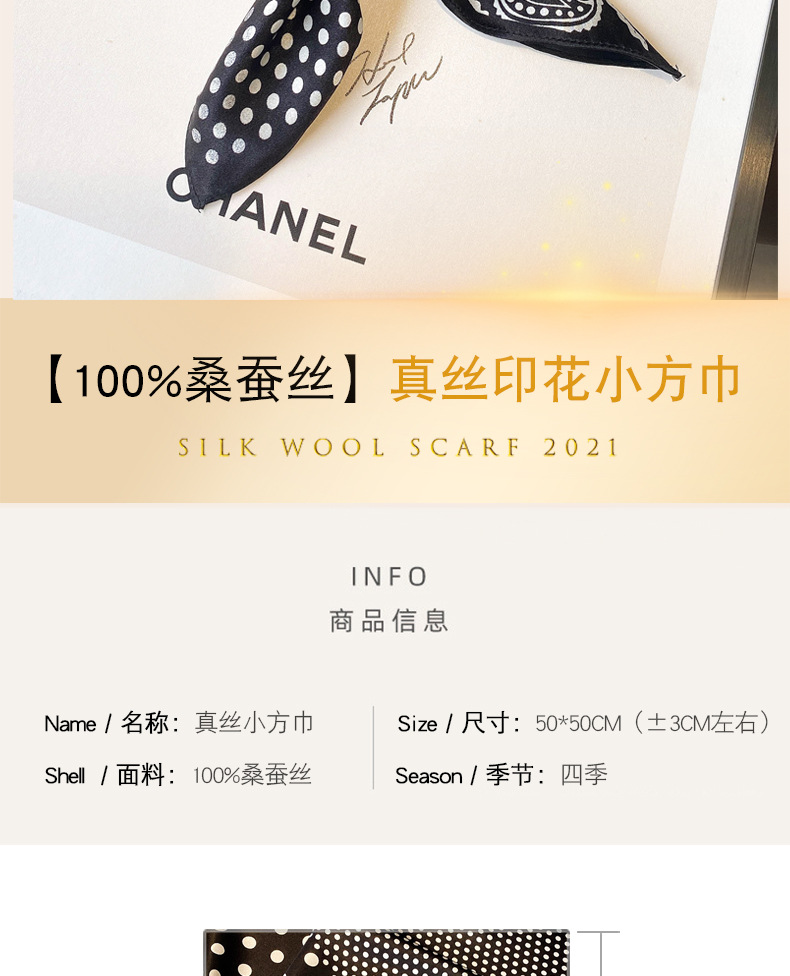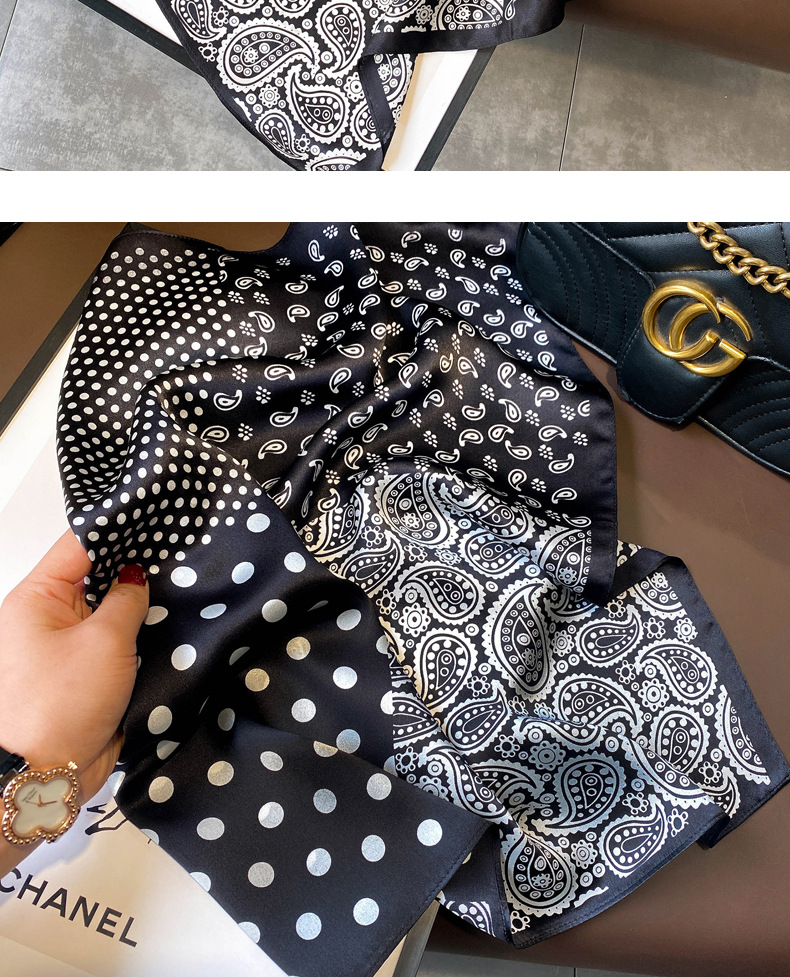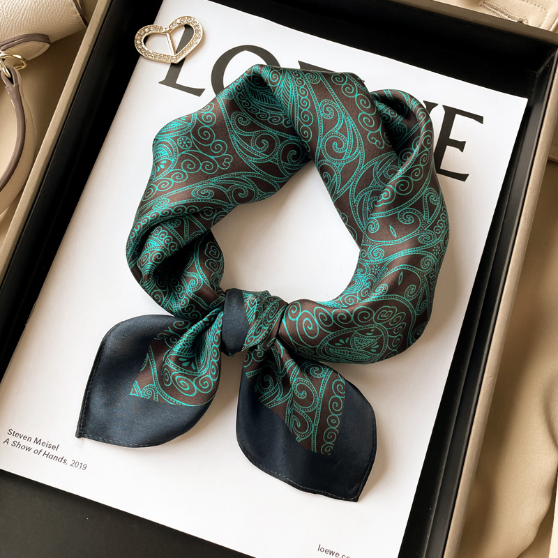 黑色腰果花真丝小方巾丝巾女春秋杭州丝绸小领巾桑蚕丝围巾搭衬衫