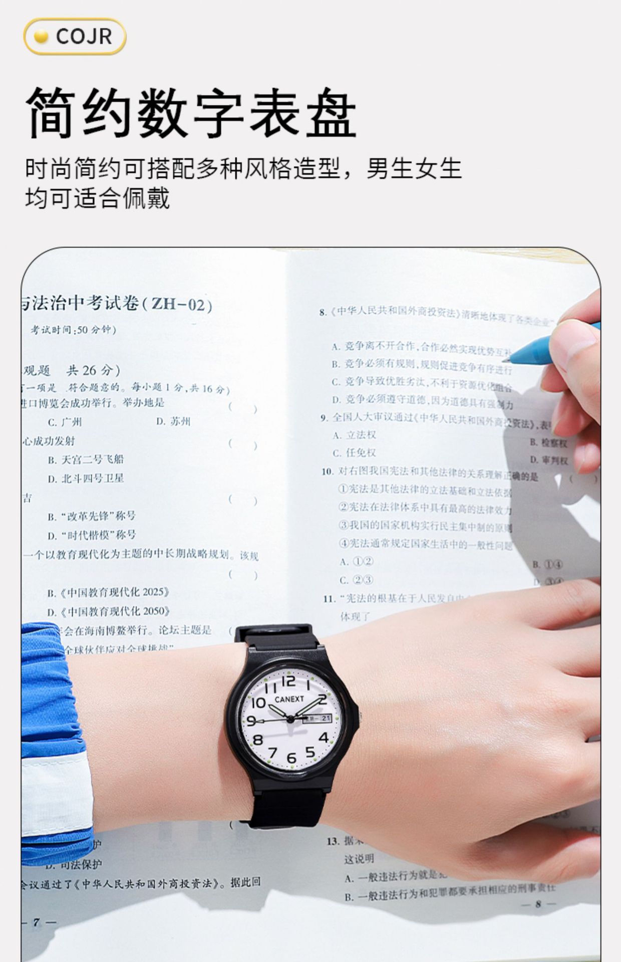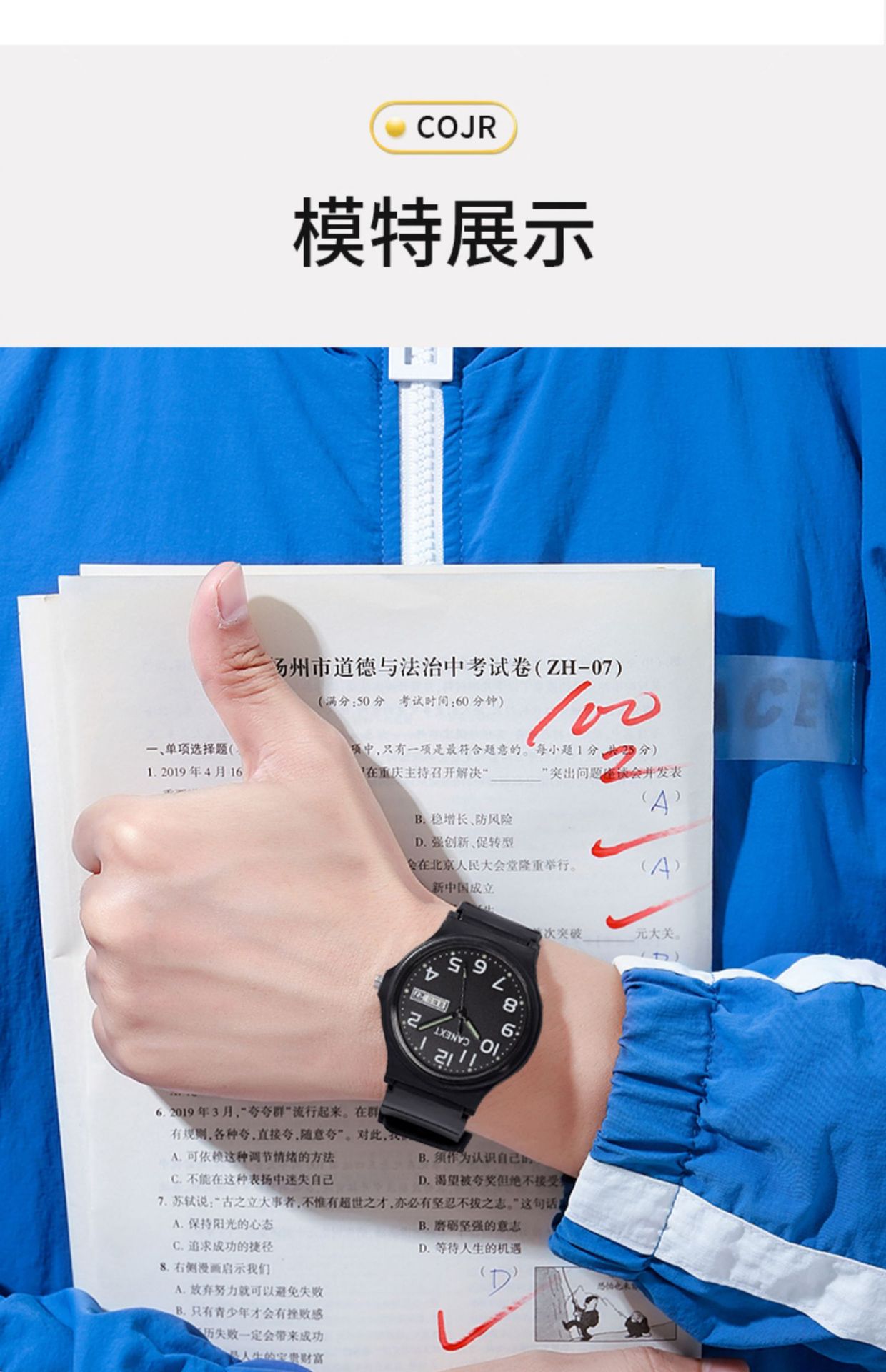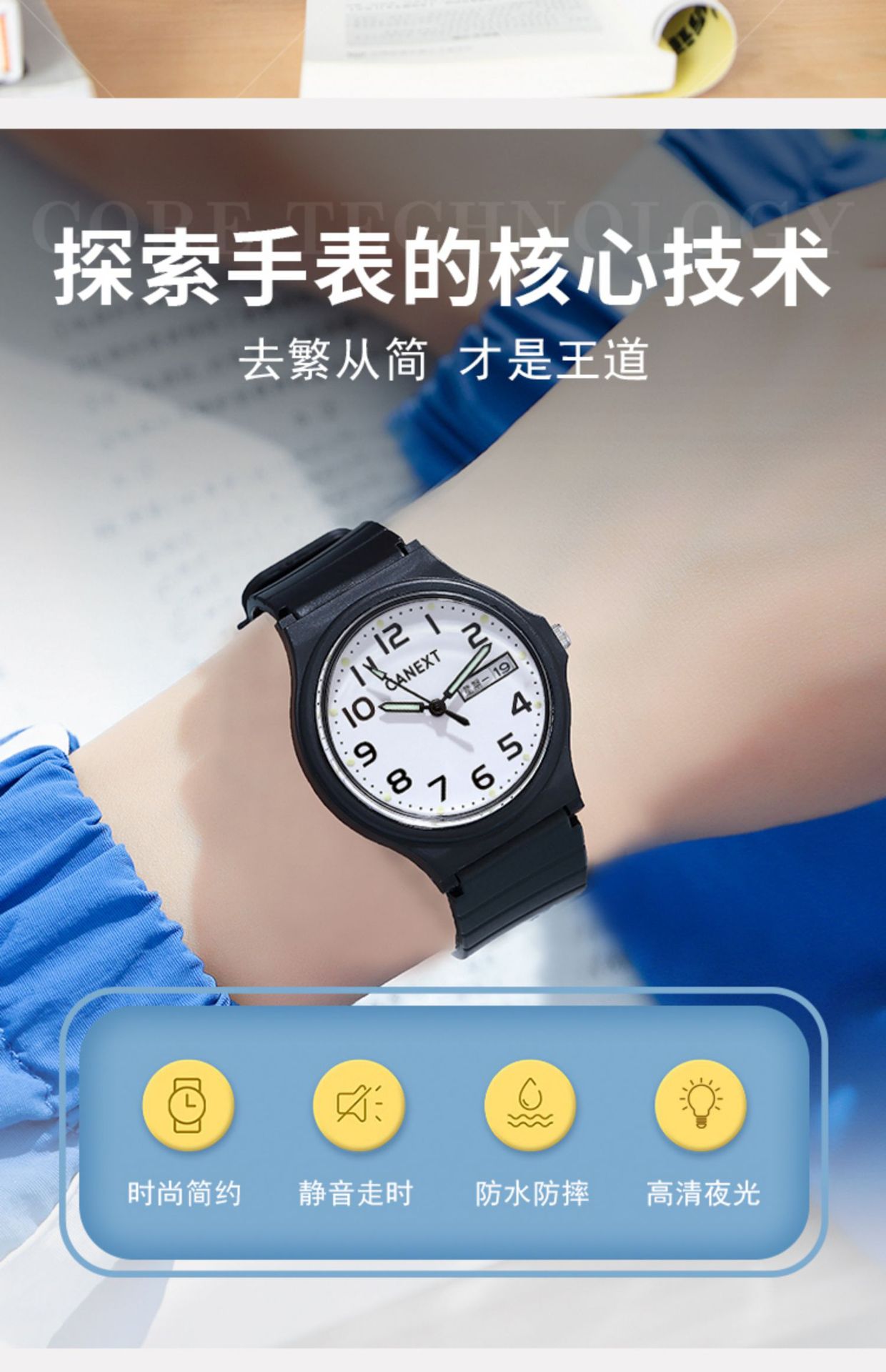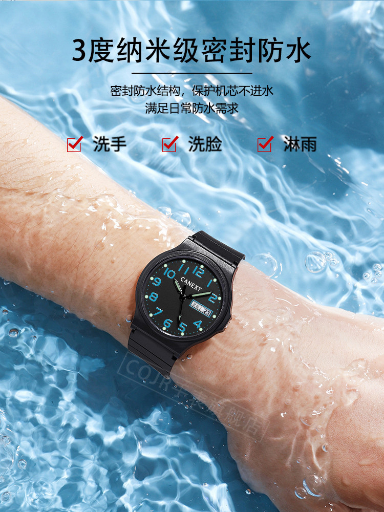 双日历手表韩版中学生夜光手表女男士休闲硅胶防水耐摔潮流长续航