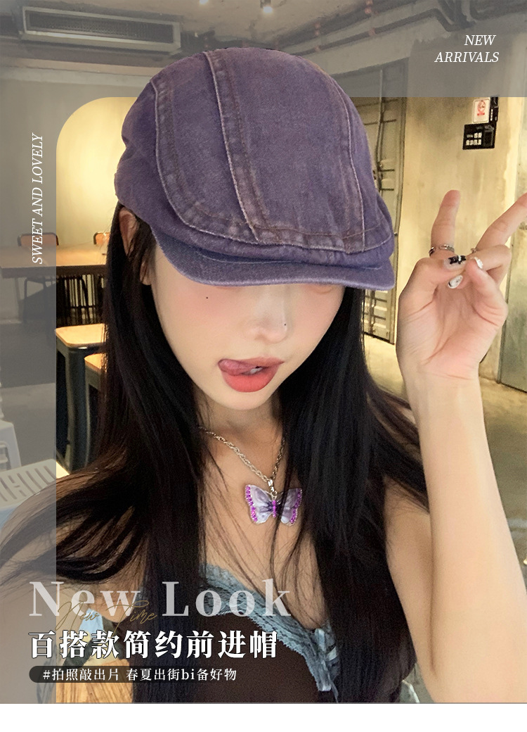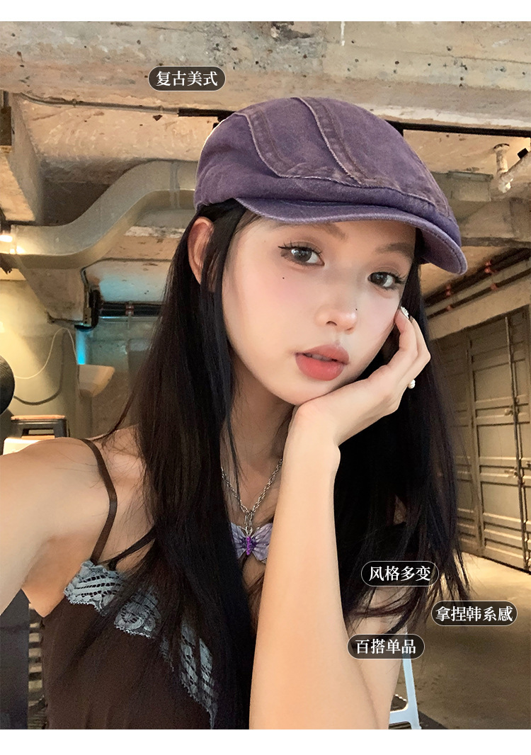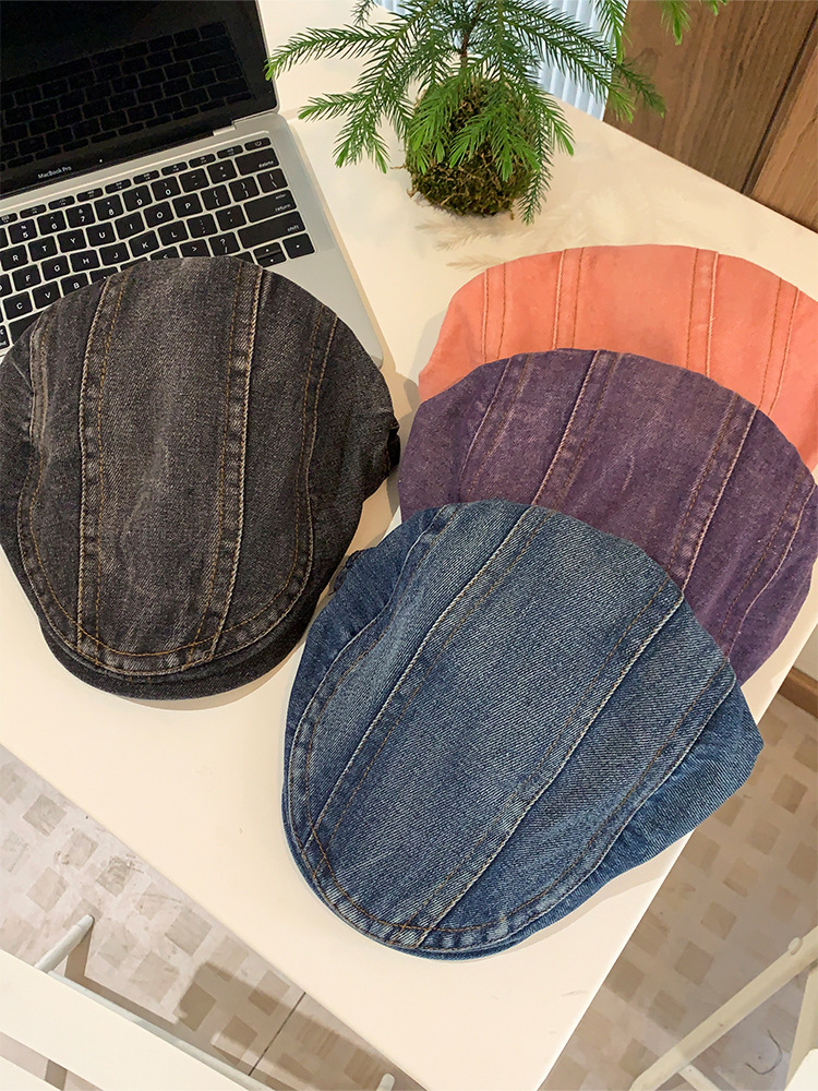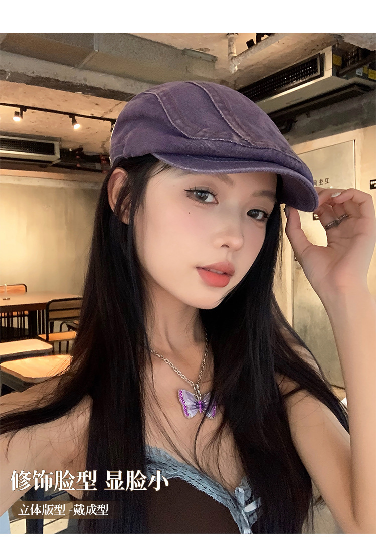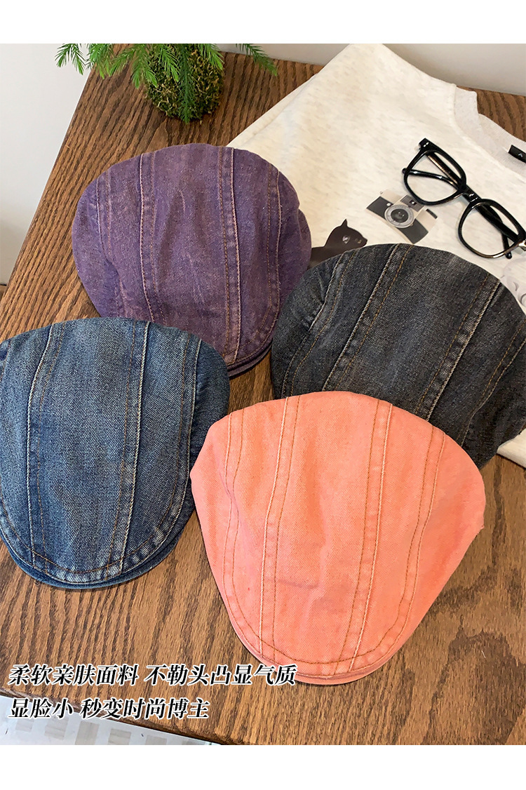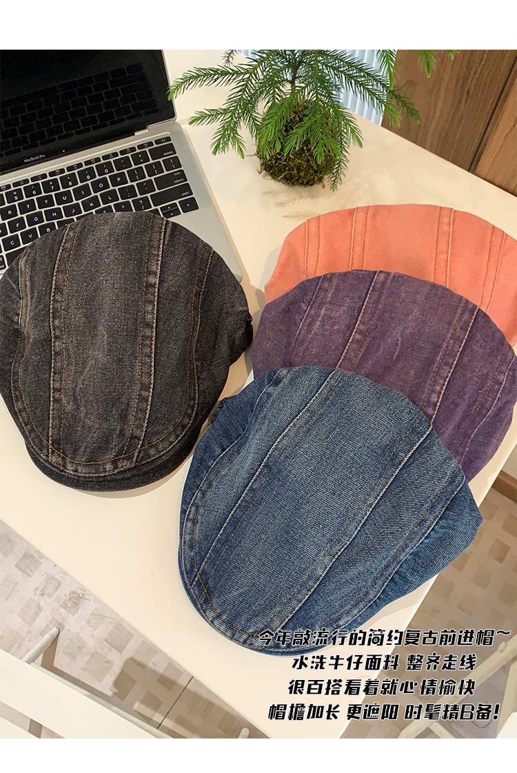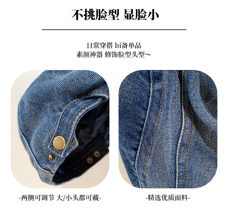 日系水洗牛仔前进帽女夏季百搭复古大头围显脸小画家帽反戴贝雷帽