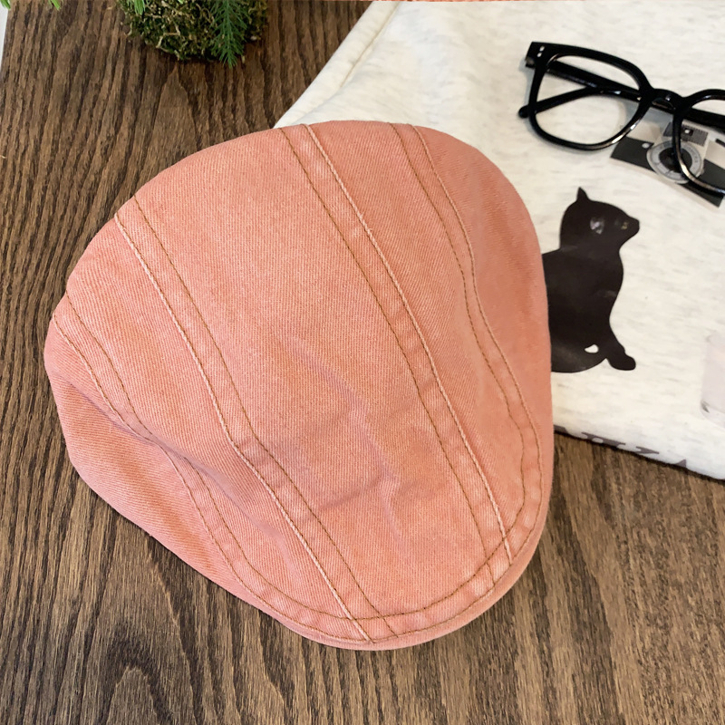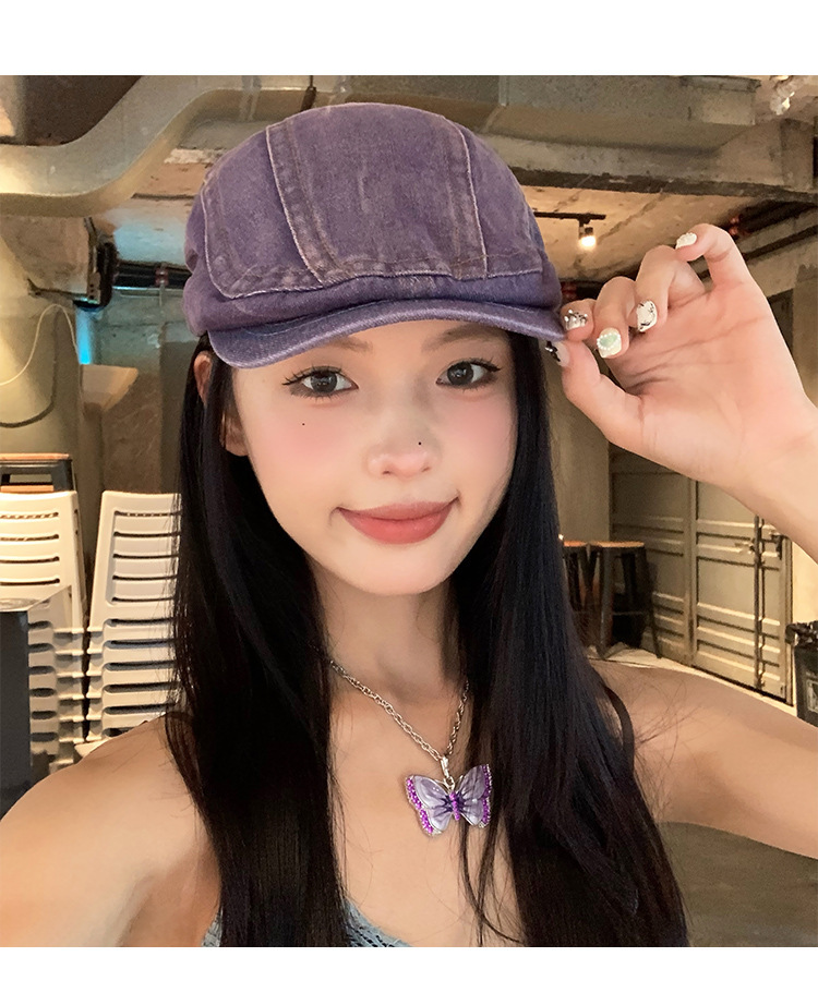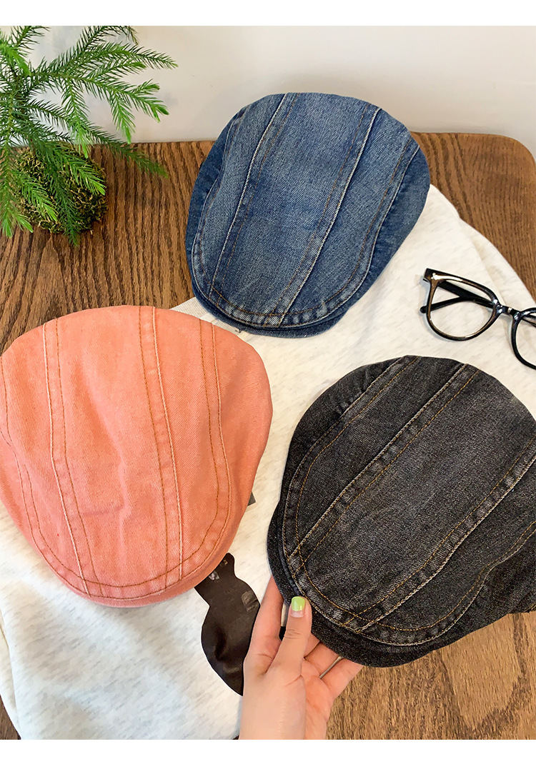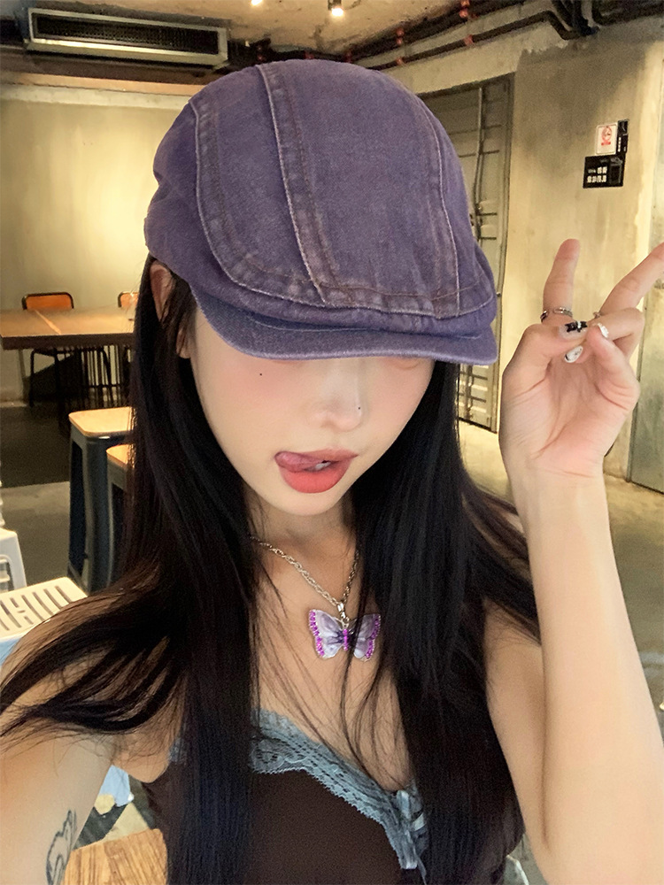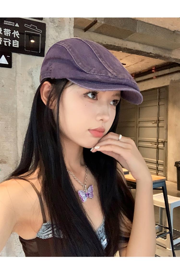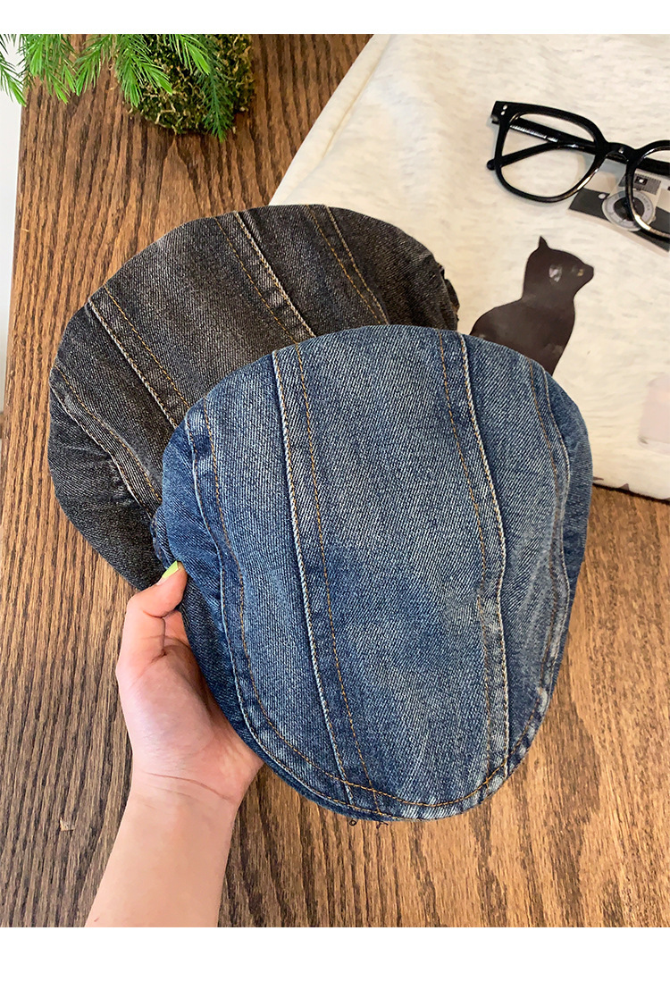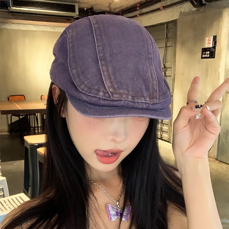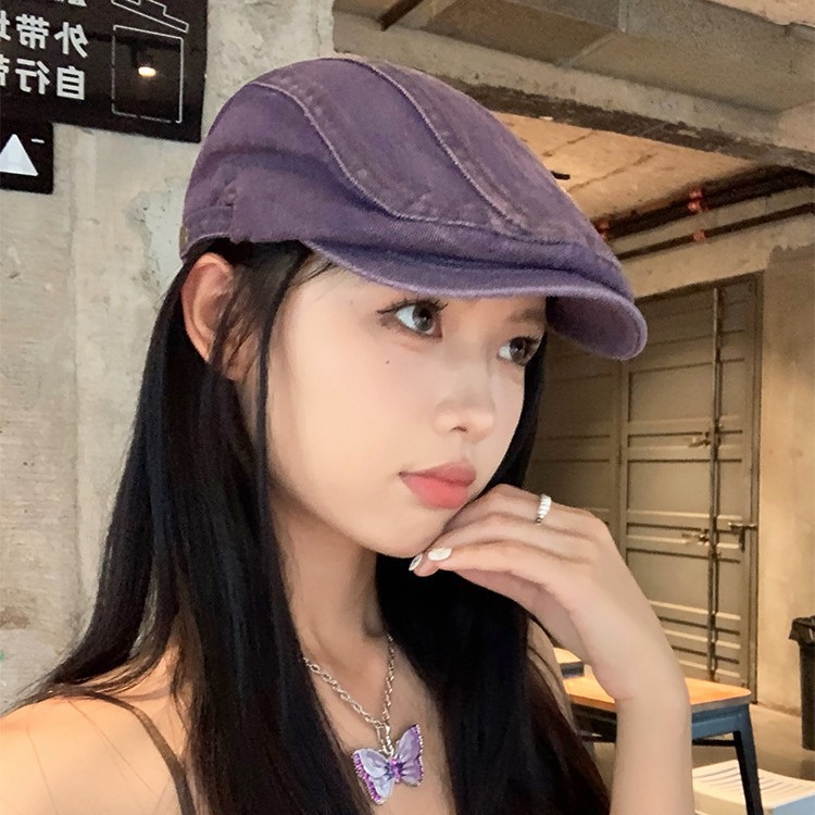 日系水洗牛仔前进帽女夏季百搭复古大头围显脸小画家帽反戴贝雷帽