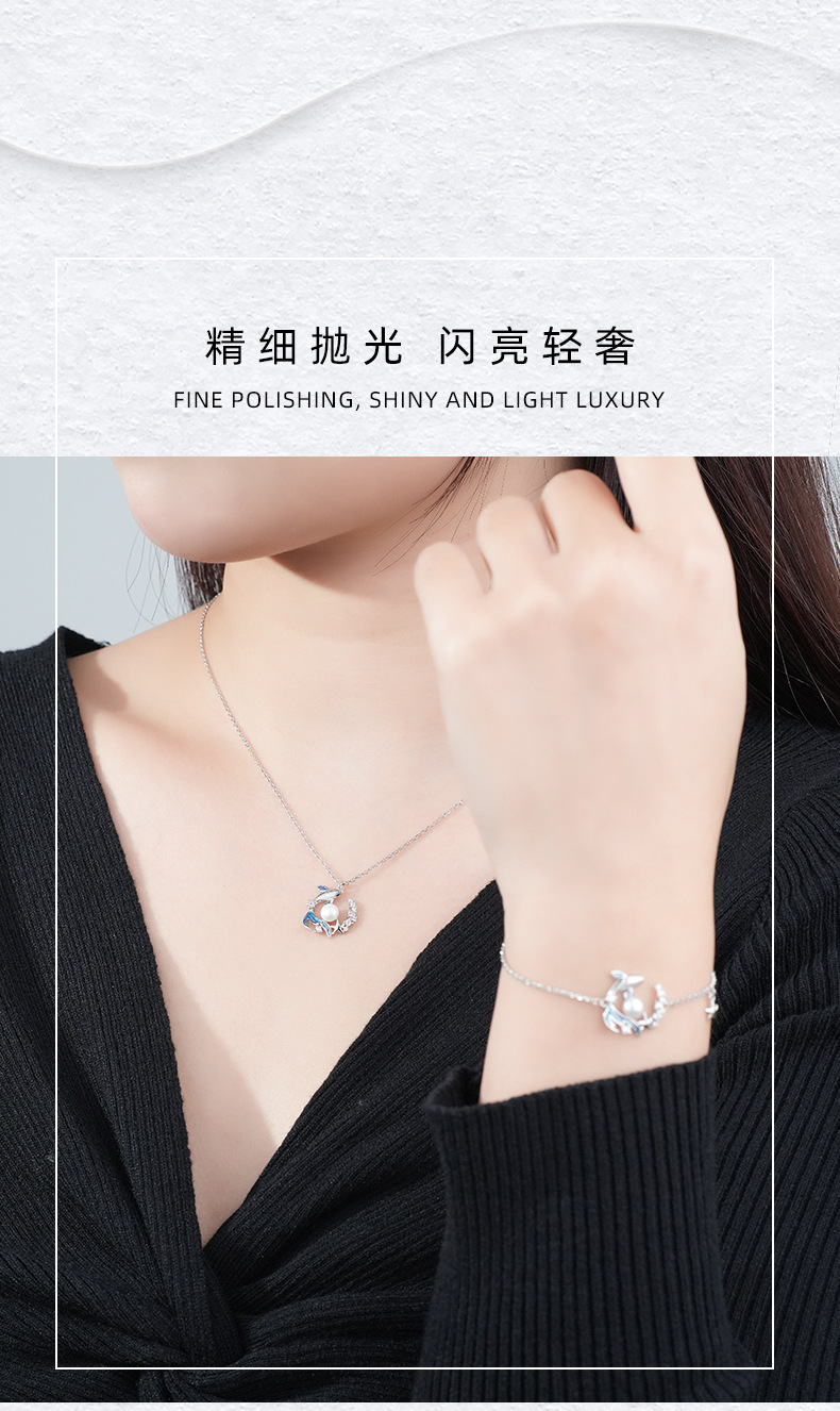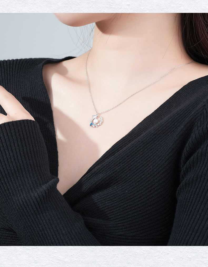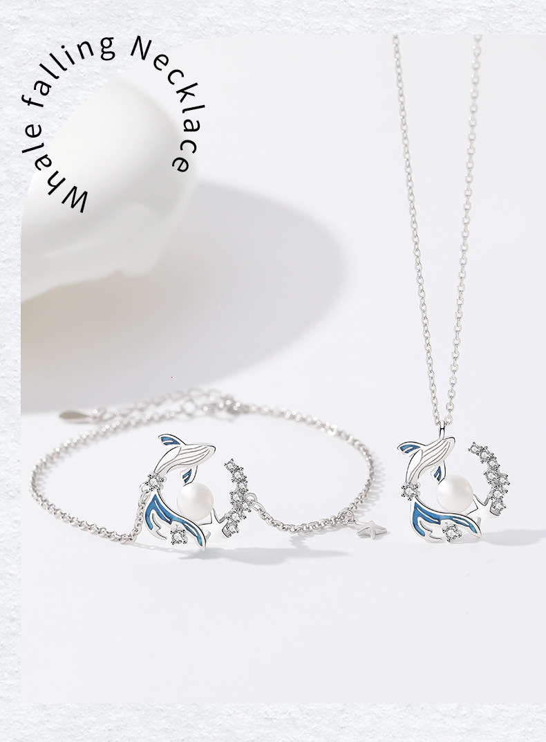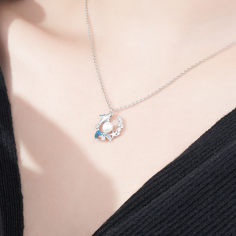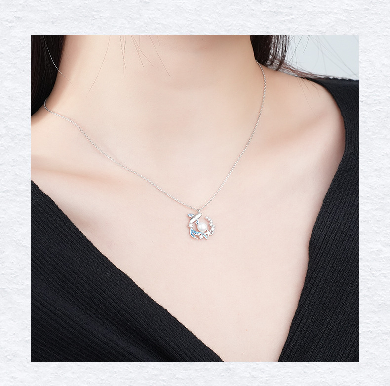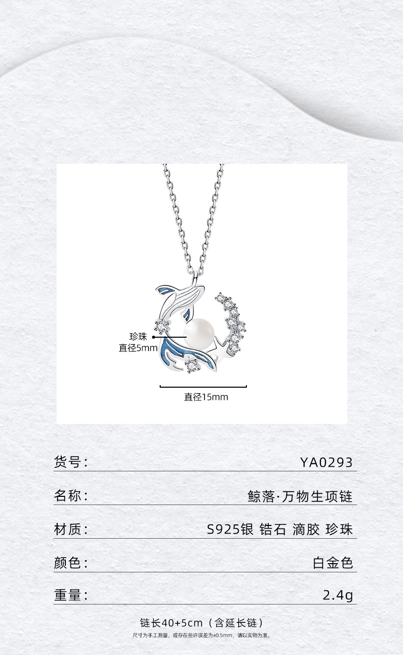 新款S925纯银鲸落项链女式国潮原创小众设计锆石贝珠吊坠现货直销