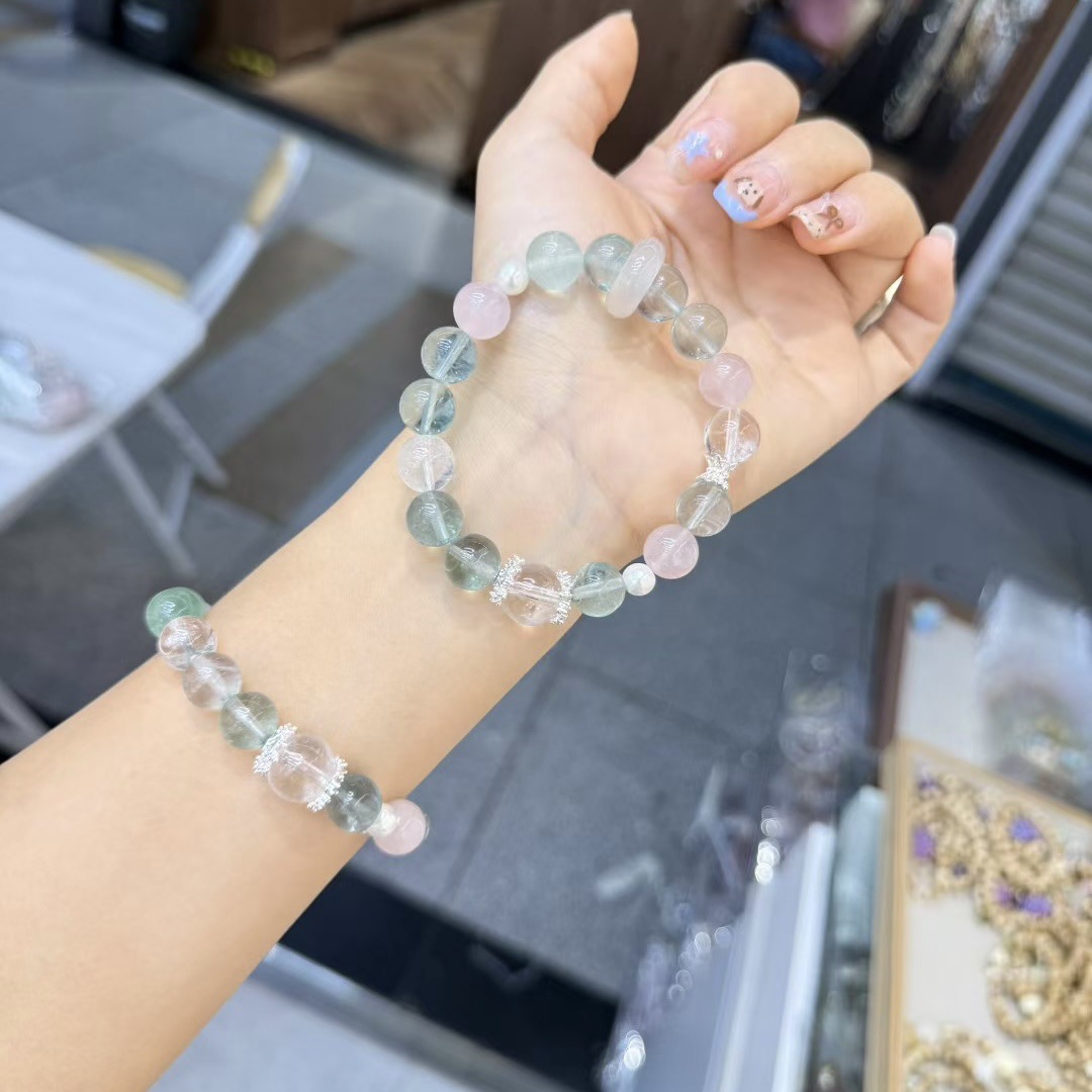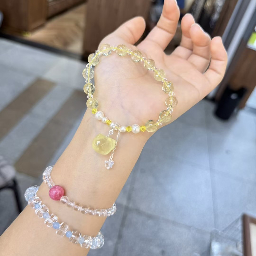 天然水晶财运暴富黄水晶手串手链女海蓝宝百搭设计款单圈夏季礼物