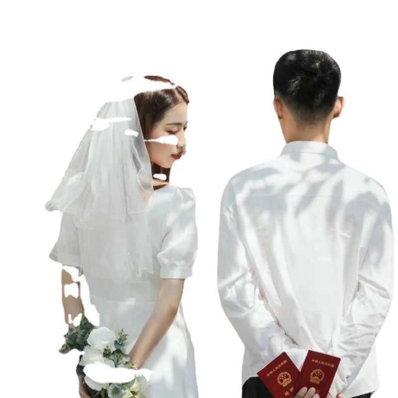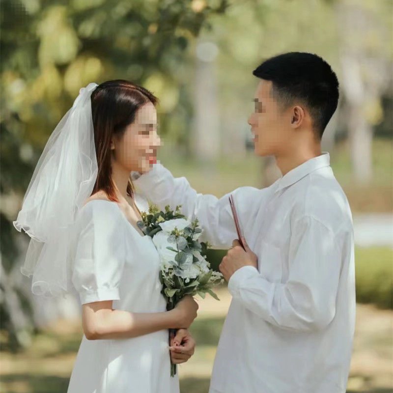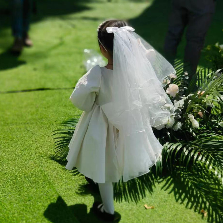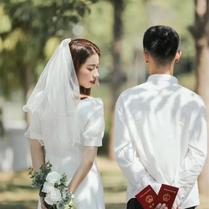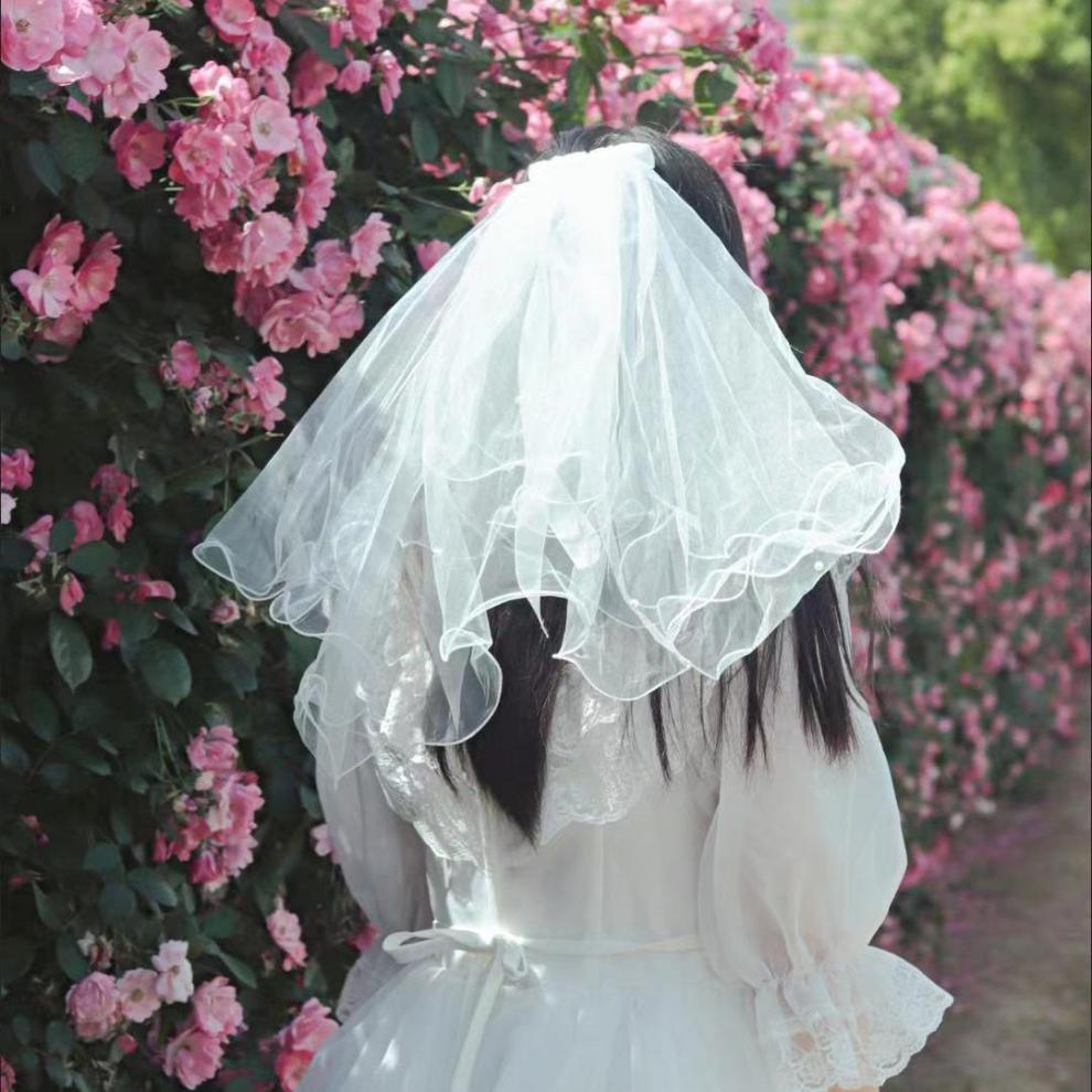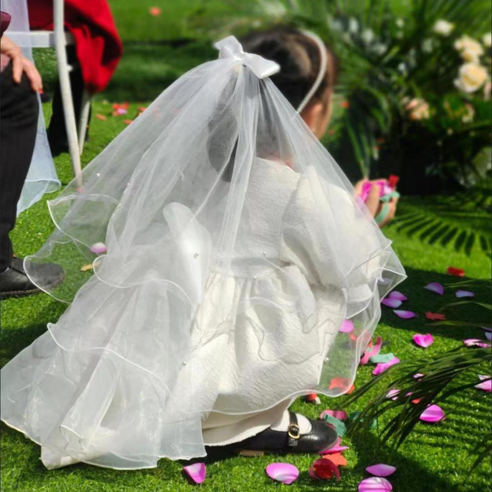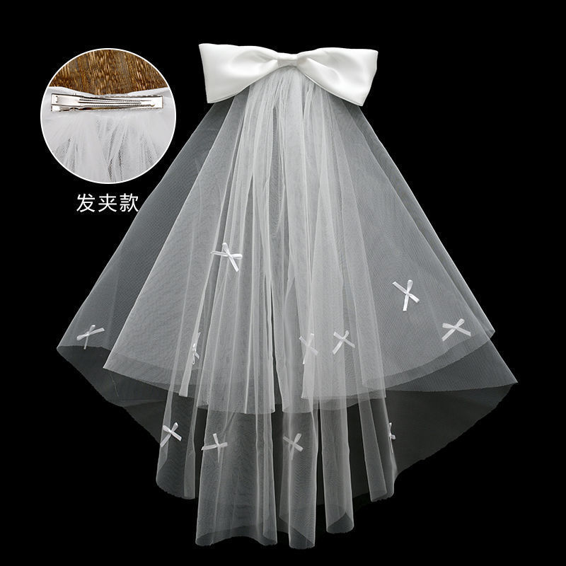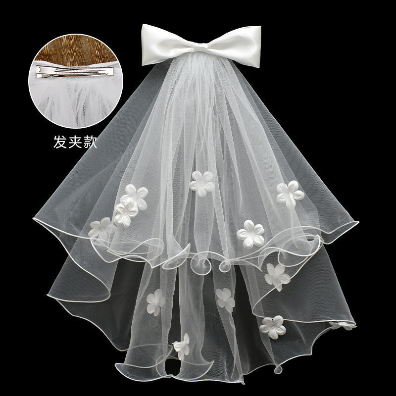 蝴蝶结头纱发光发饰结婚头饰带灯双层珍珠求婚旅拍照道具儿童新娘