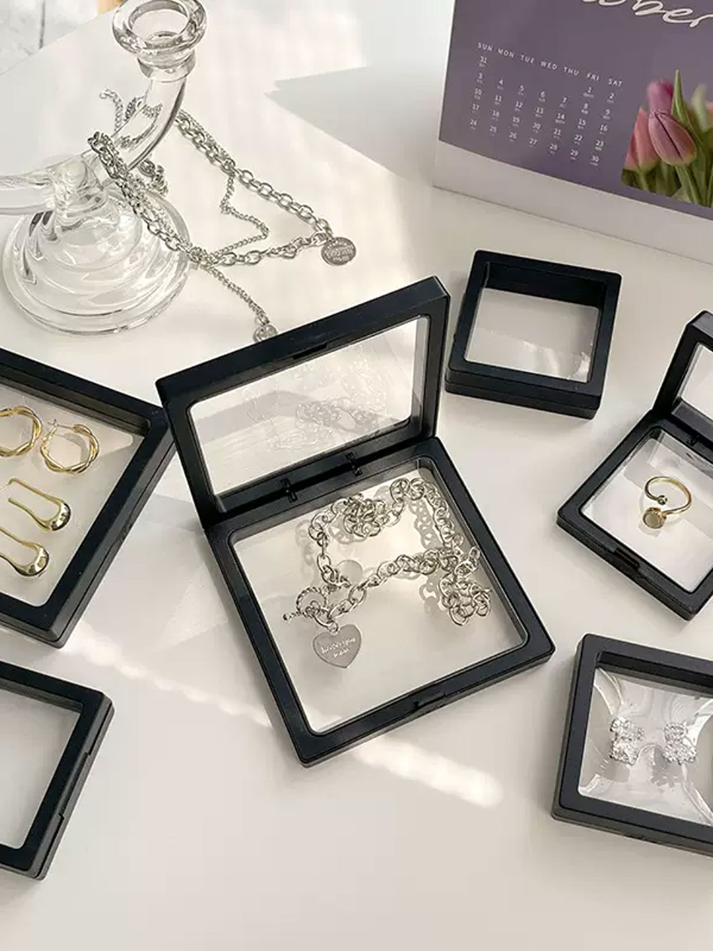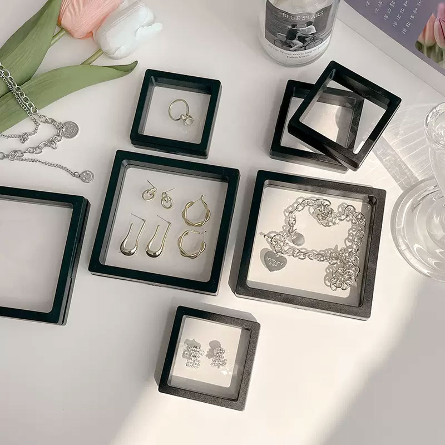 透明首饰珠宝项链收纳盒首饰盒防氧化悬浮盒PE薄膜文玩饰品展示盒