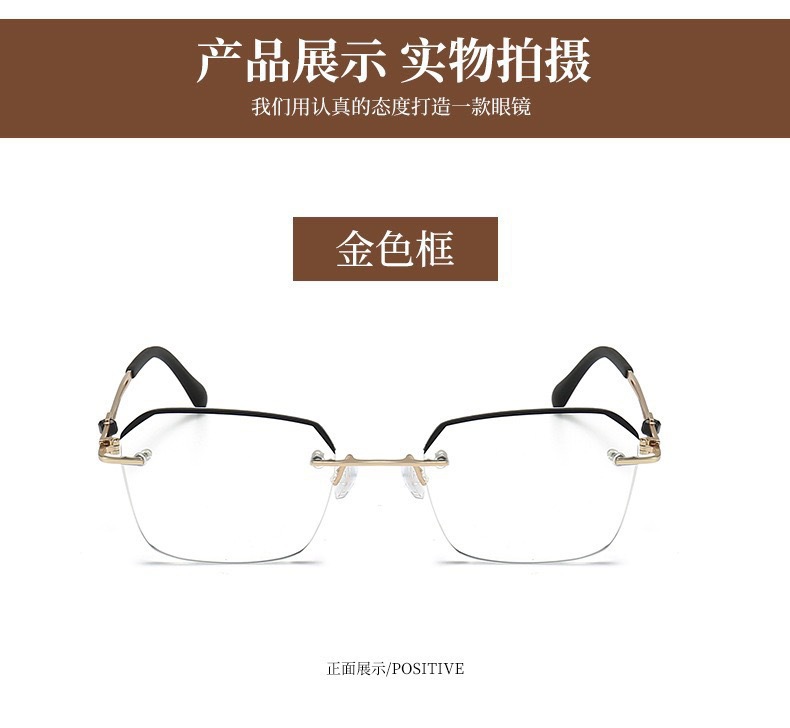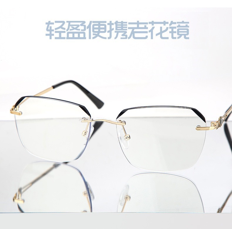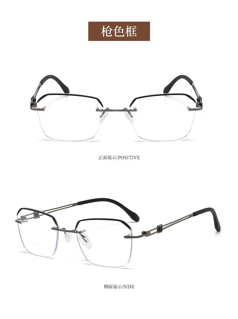 抖音爆款防蓝光老花镜时尚高清金属无边框商务高级感男款眼镜批发