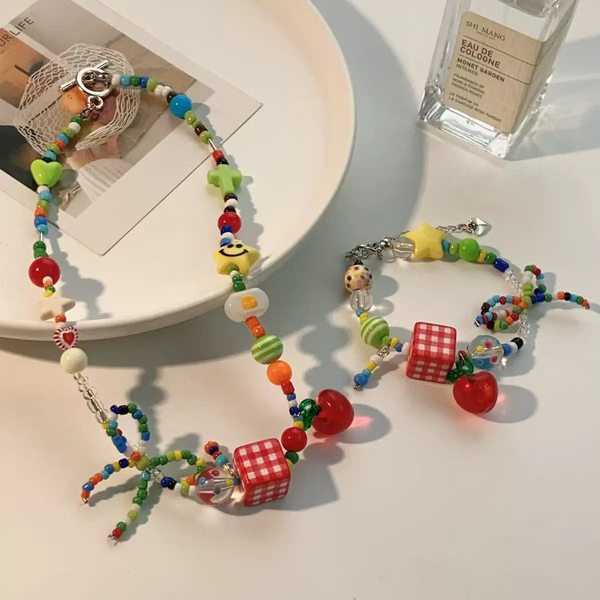 多巴胺彩色夏季小清新串珠项链女ins高级感小众设计感