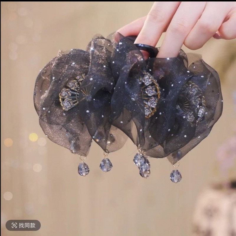 【国风裙摆】超仙扇子流苏抓夹蓬松高颅顶显发量鲨鱼夹发夹2584