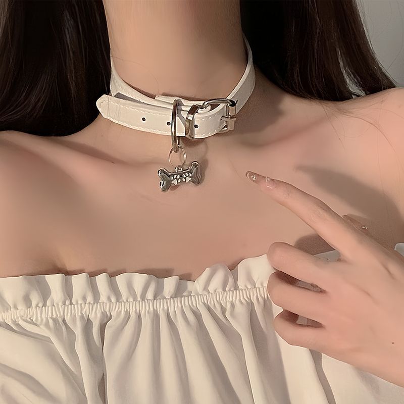 黑色白色狗骨头y2k辣妹甜酷脖颈环choker颈链项圈锁骨链项链女酷