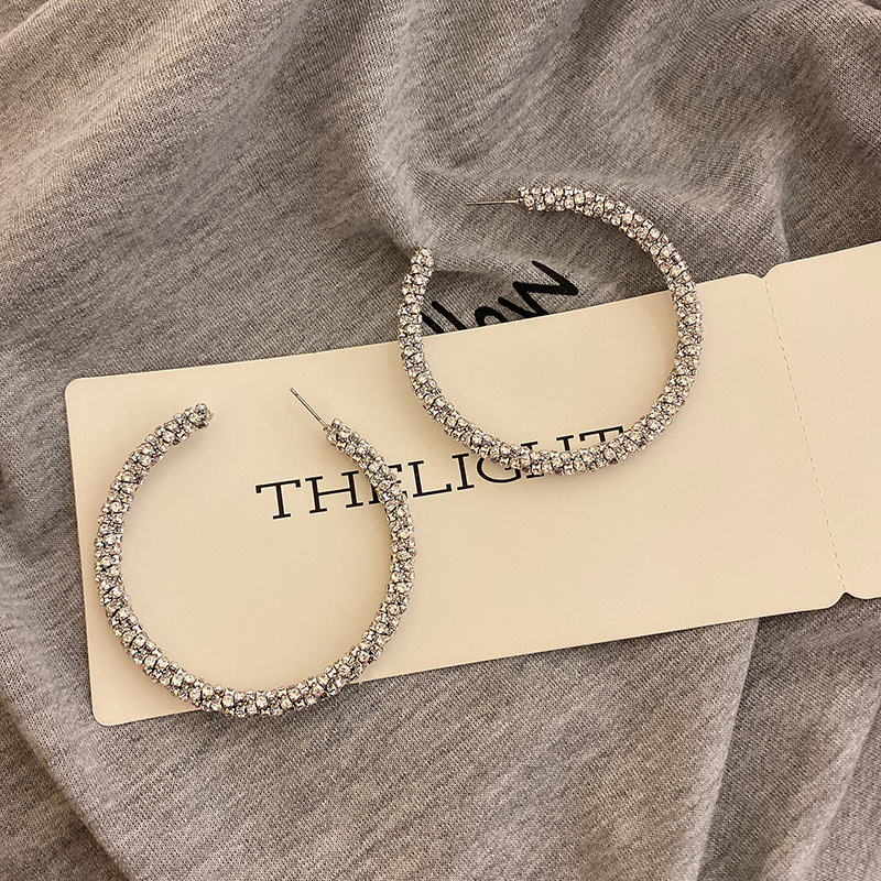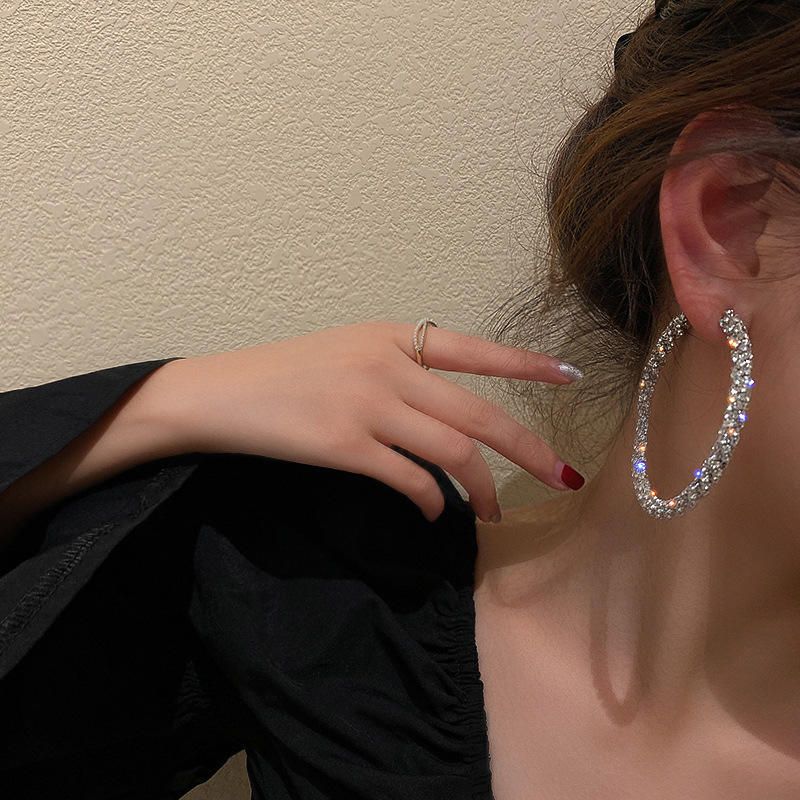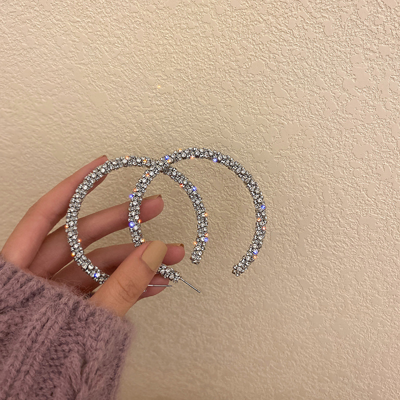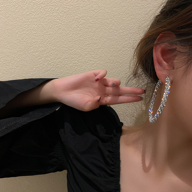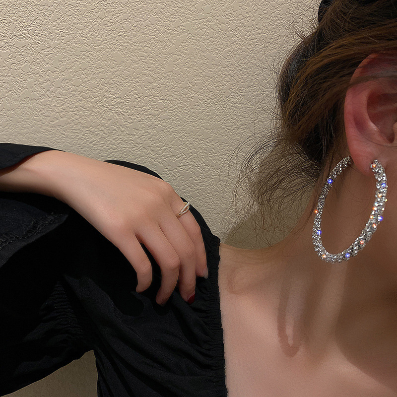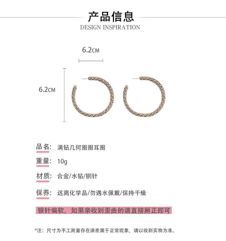 镶钻几何圆圈耳环欧美跨境时尚夸张气质耳圈简约新款轻奢耳饰批发