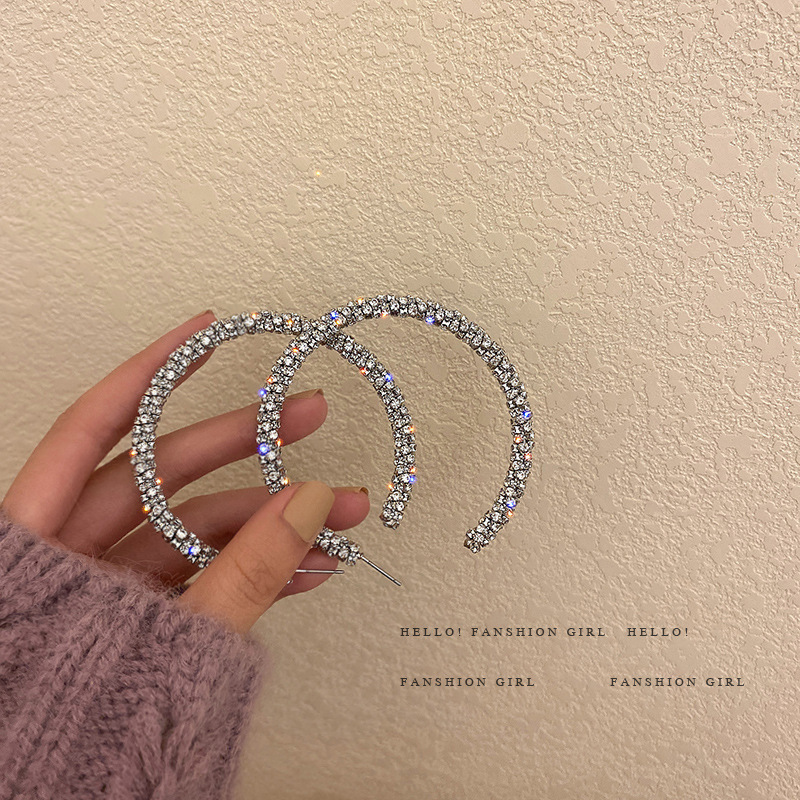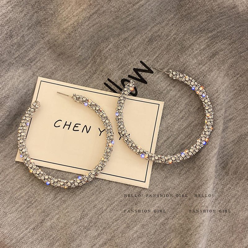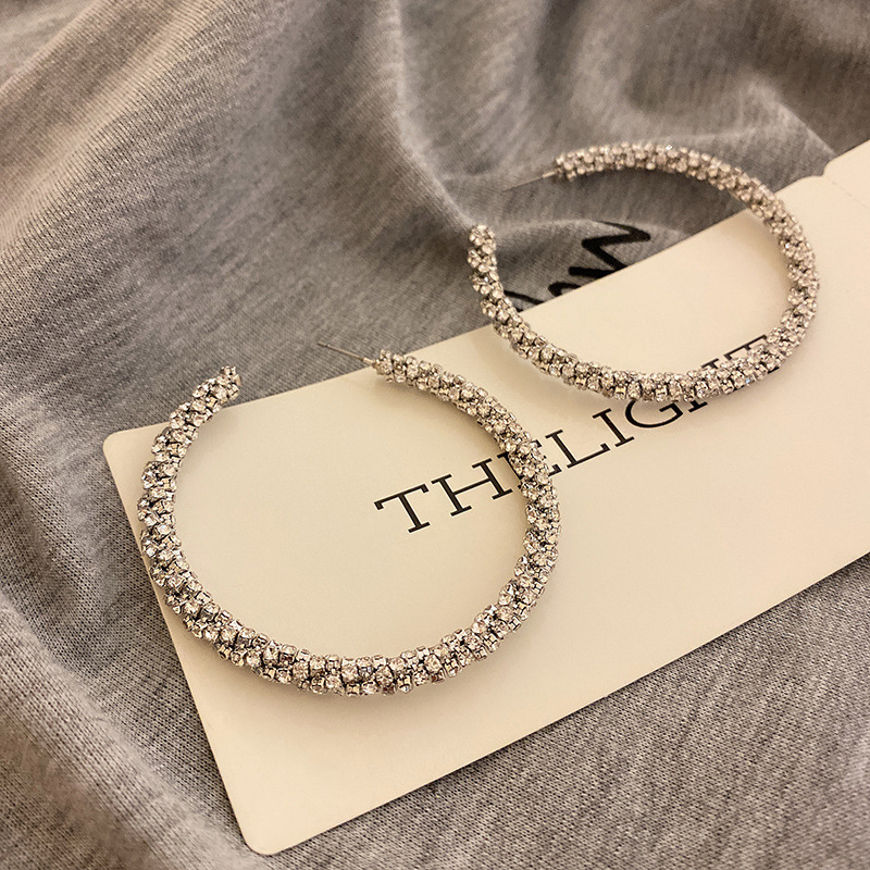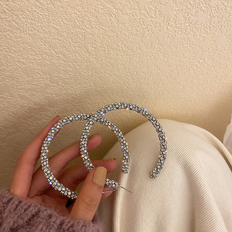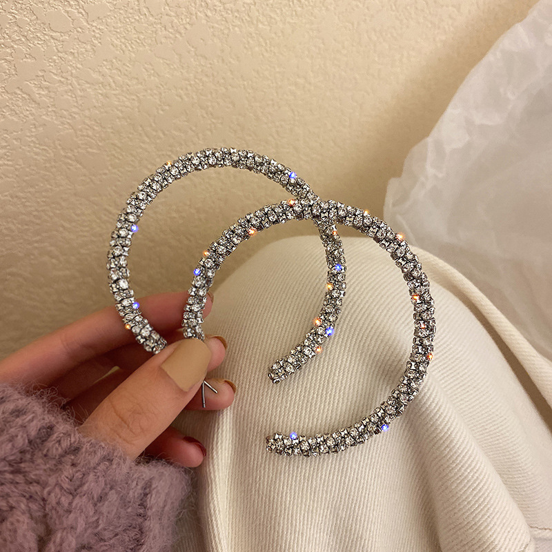 镶钻几何圆圈耳环欧美跨境时尚夸张气质耳圈简约新款轻奢耳饰批发