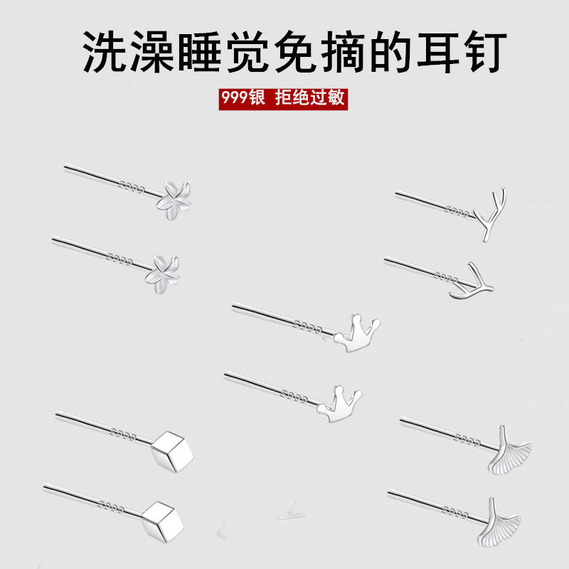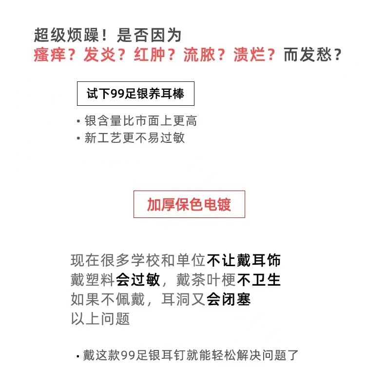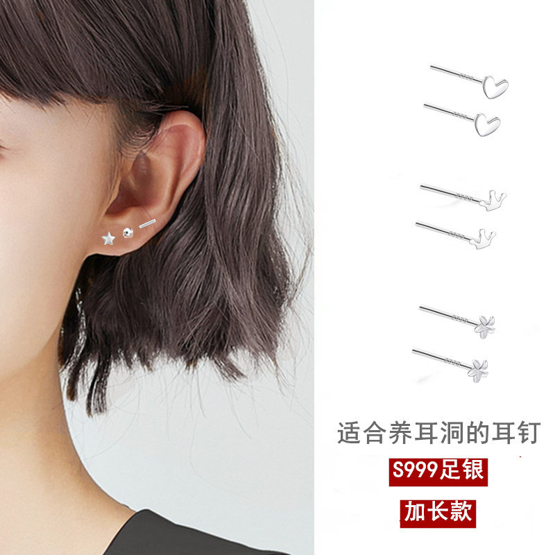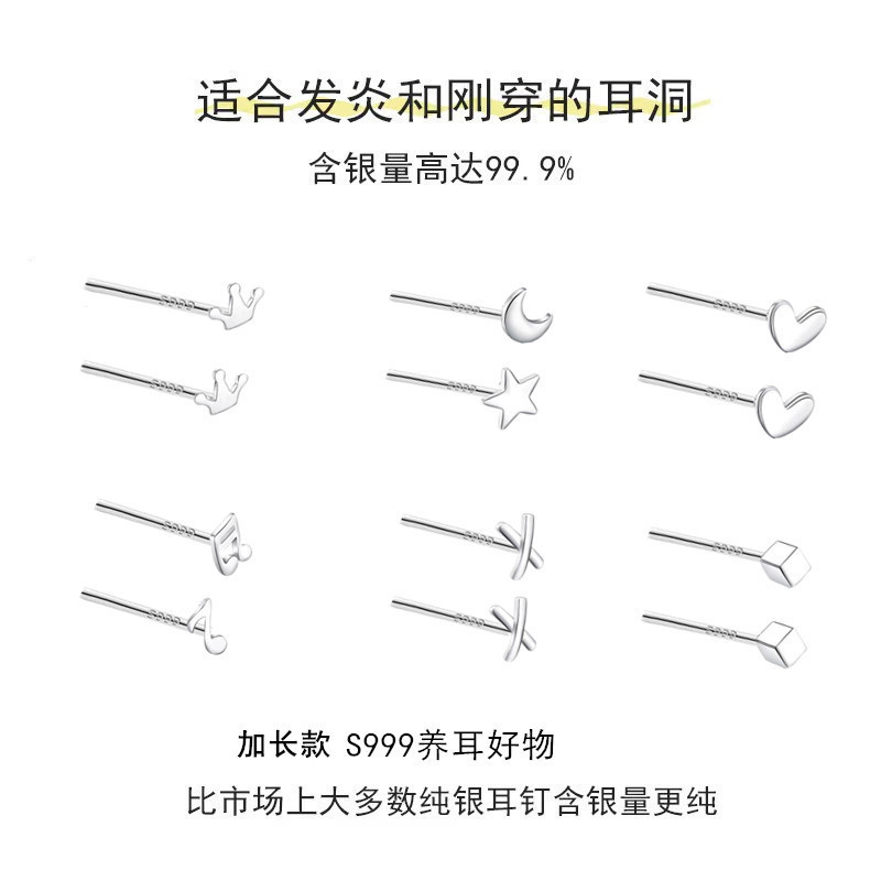 喜饰银匠 999纯银适合厚耳垂的养耳洞耳钉防堵针耳针银针小众耳骨