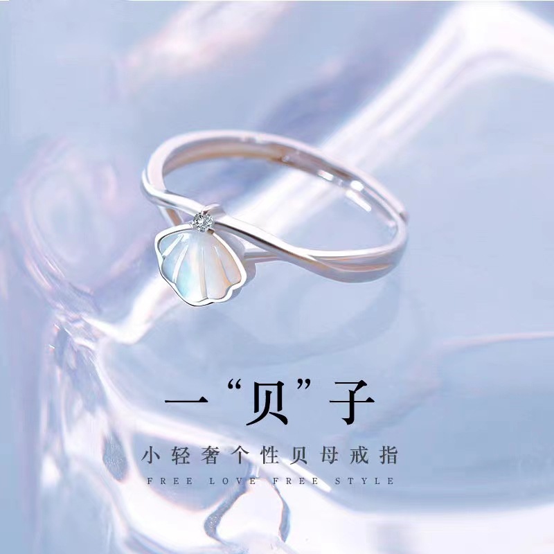 戒指女不掉色贝壳指环小众设计ins高级感冷淡风开口饰品个性批发