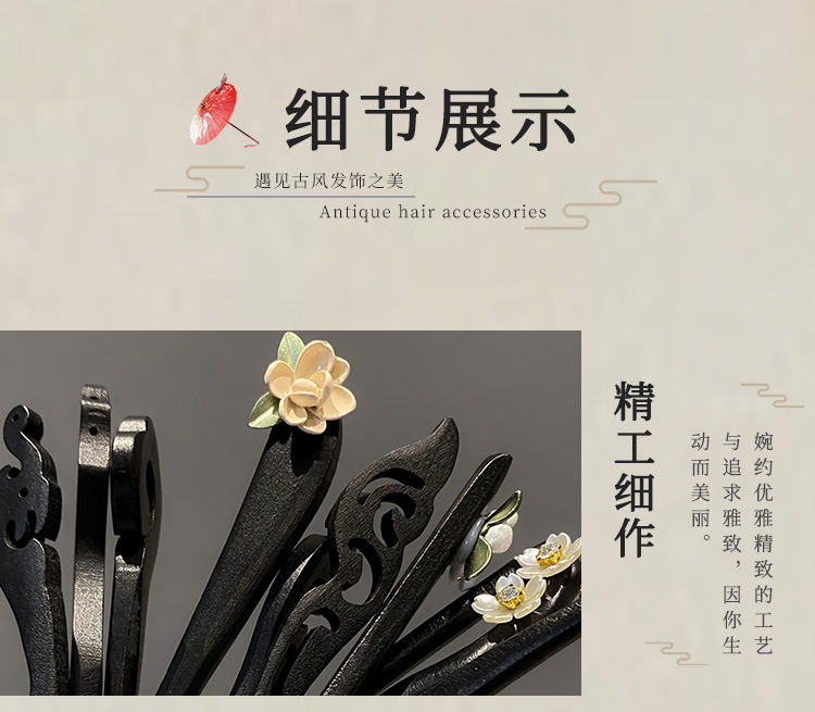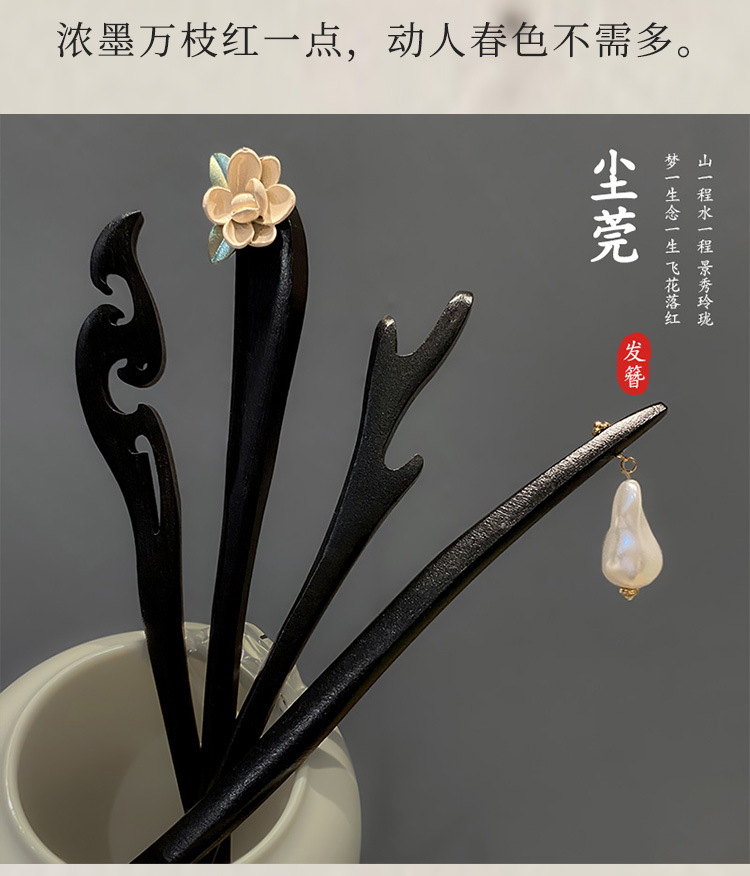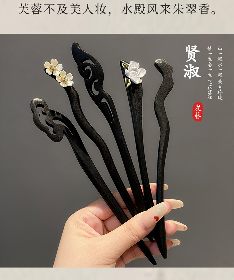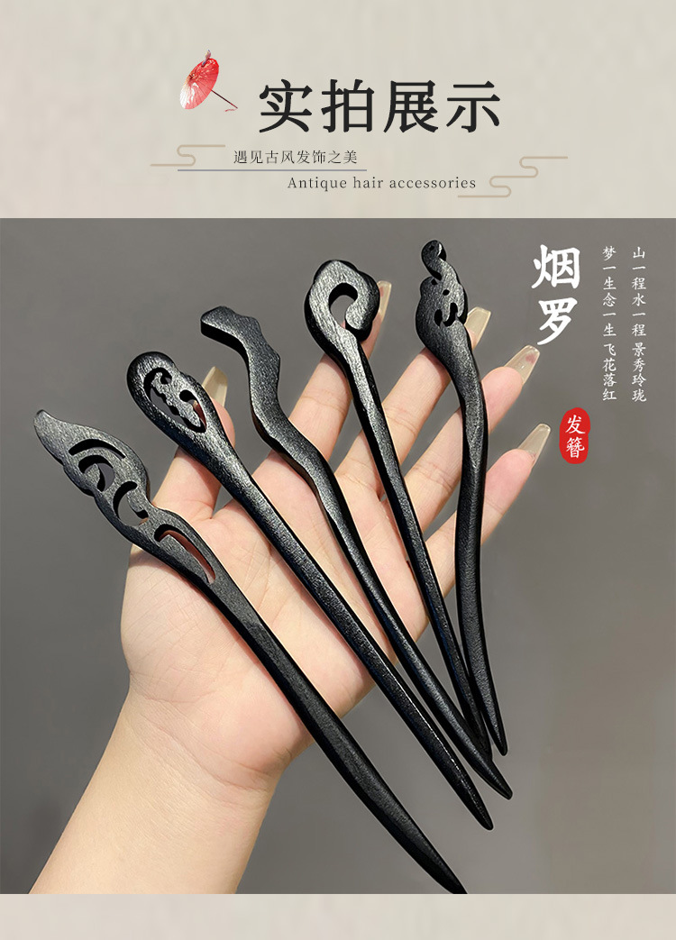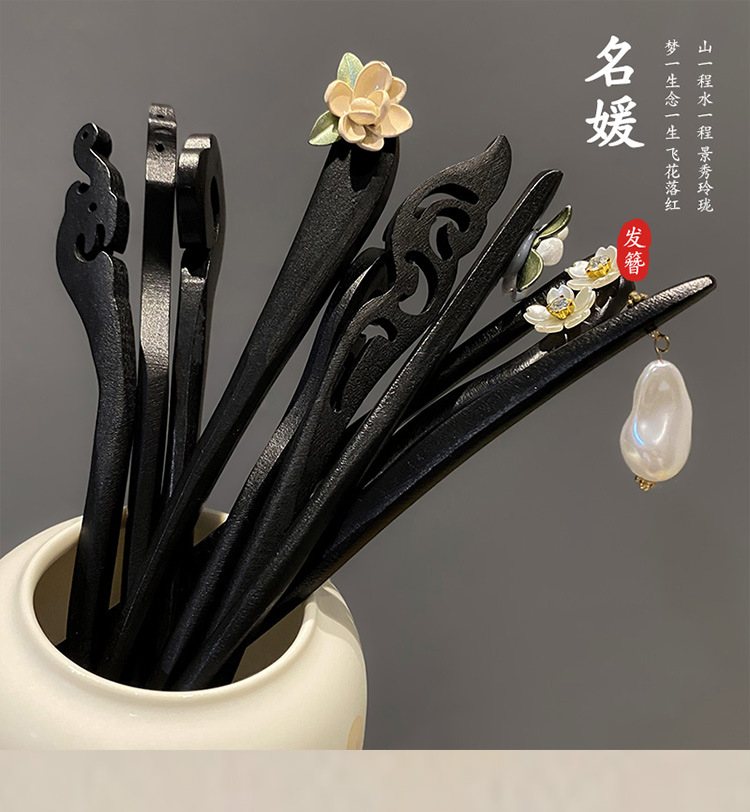 仿黑檀木发簪古风盘发簪女简约现代木簪汉服旗袍新中式发钗发饰