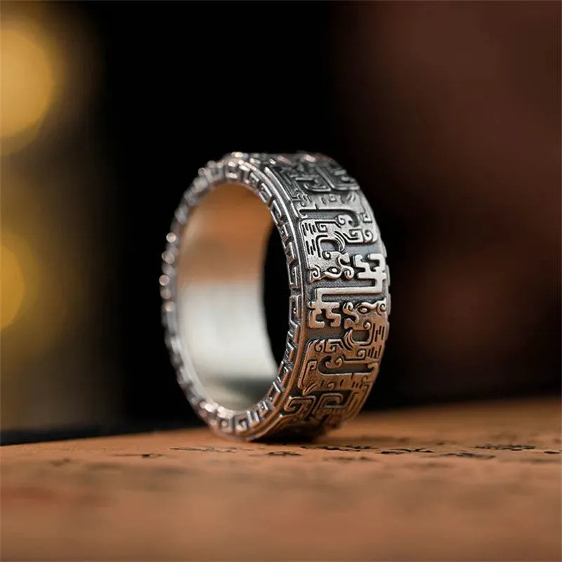 烟雨复古夔龙纹祥戒指国潮云螭元素精致指环复古高级感厂家直销