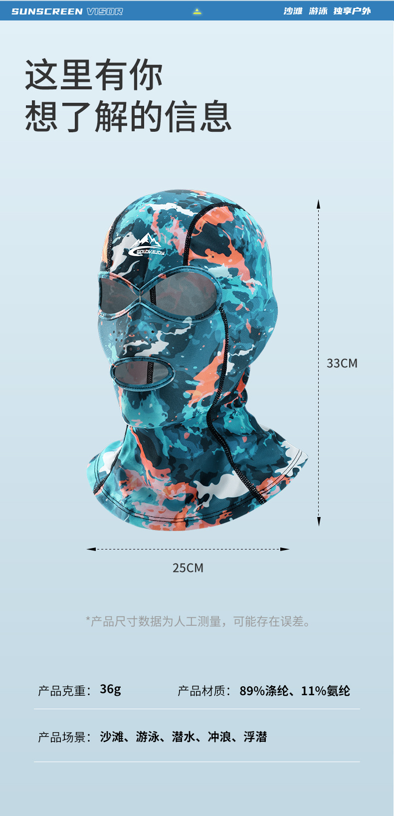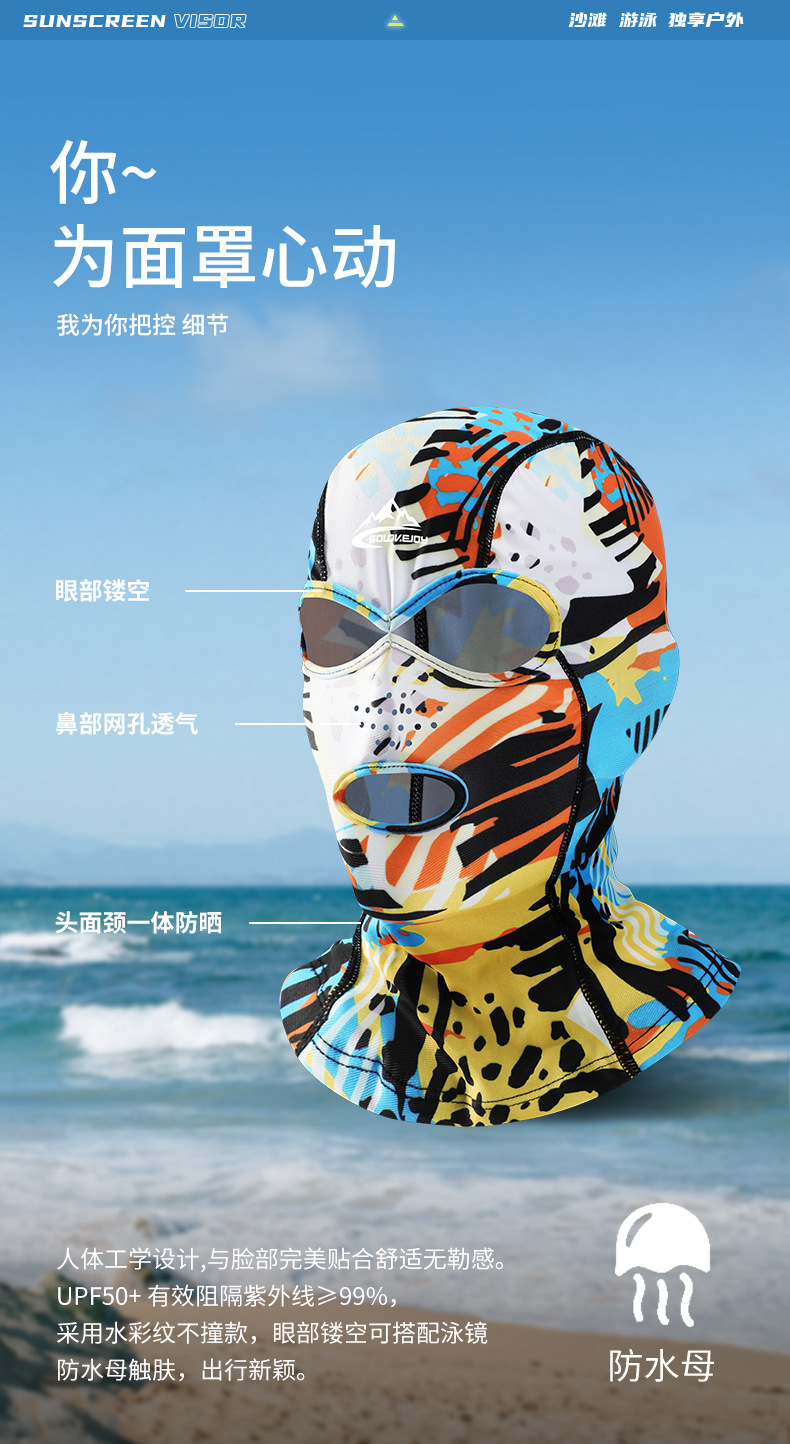 夏季防晒头套男女户外玩水沙滩游泳面罩透气防紫外线脸基尼XTJ126
