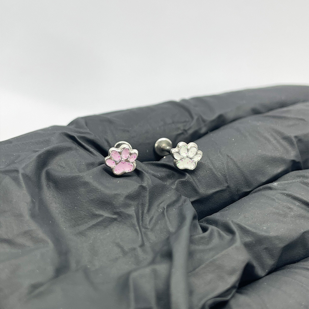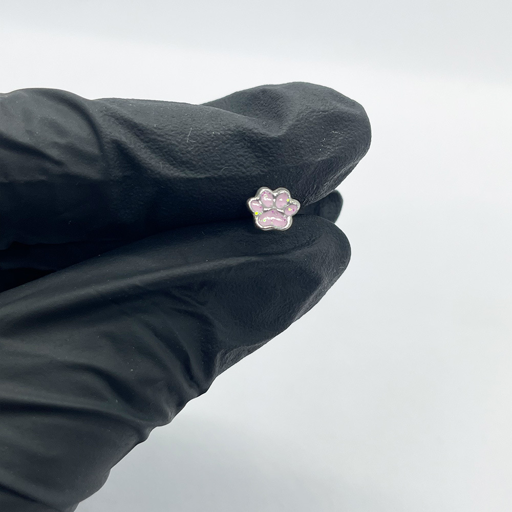 猫爪熊爪唇钉滴油闪粉内螺纹钛钢唇钉耳骨钉可爱迷你小众穿刺饰品