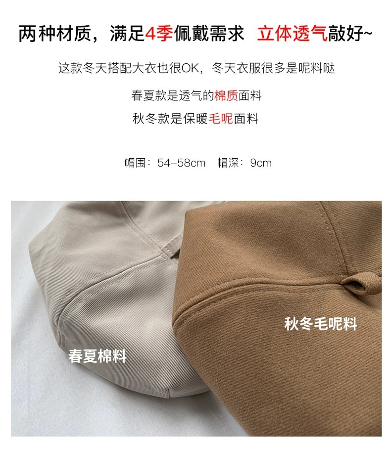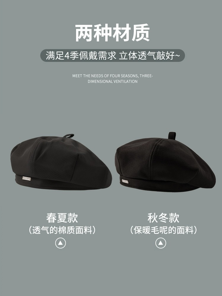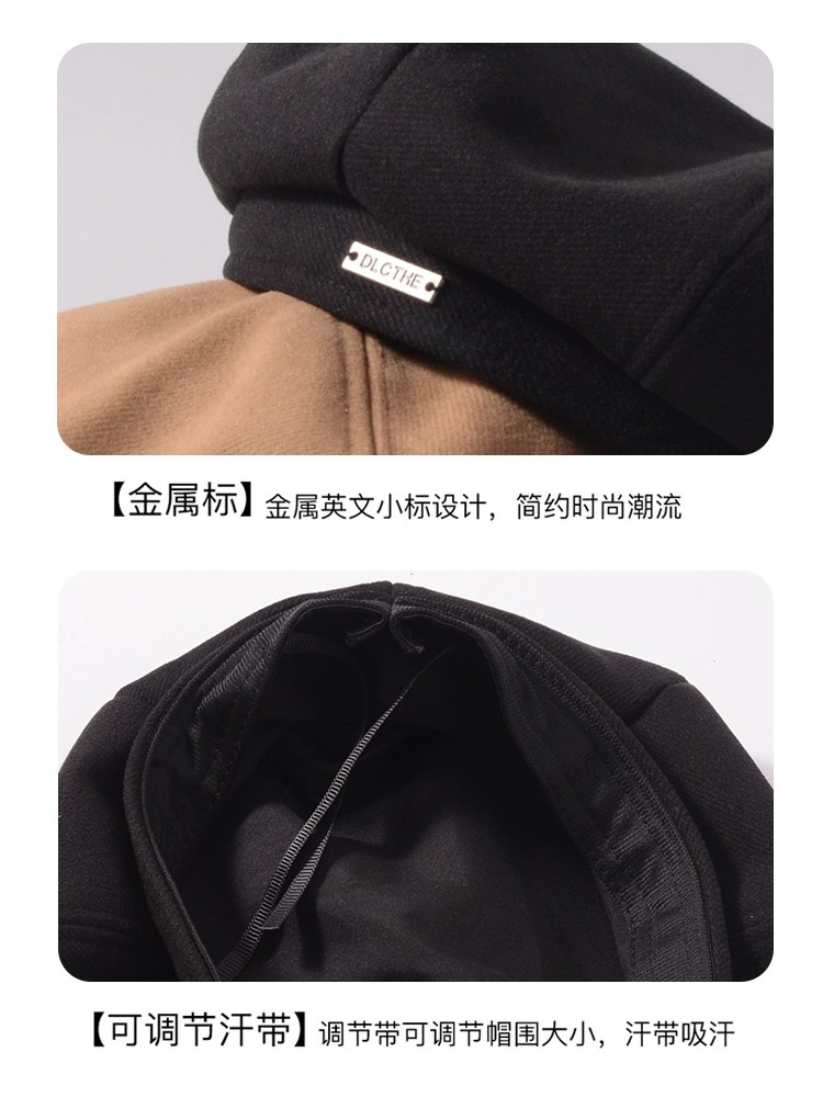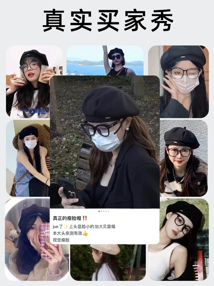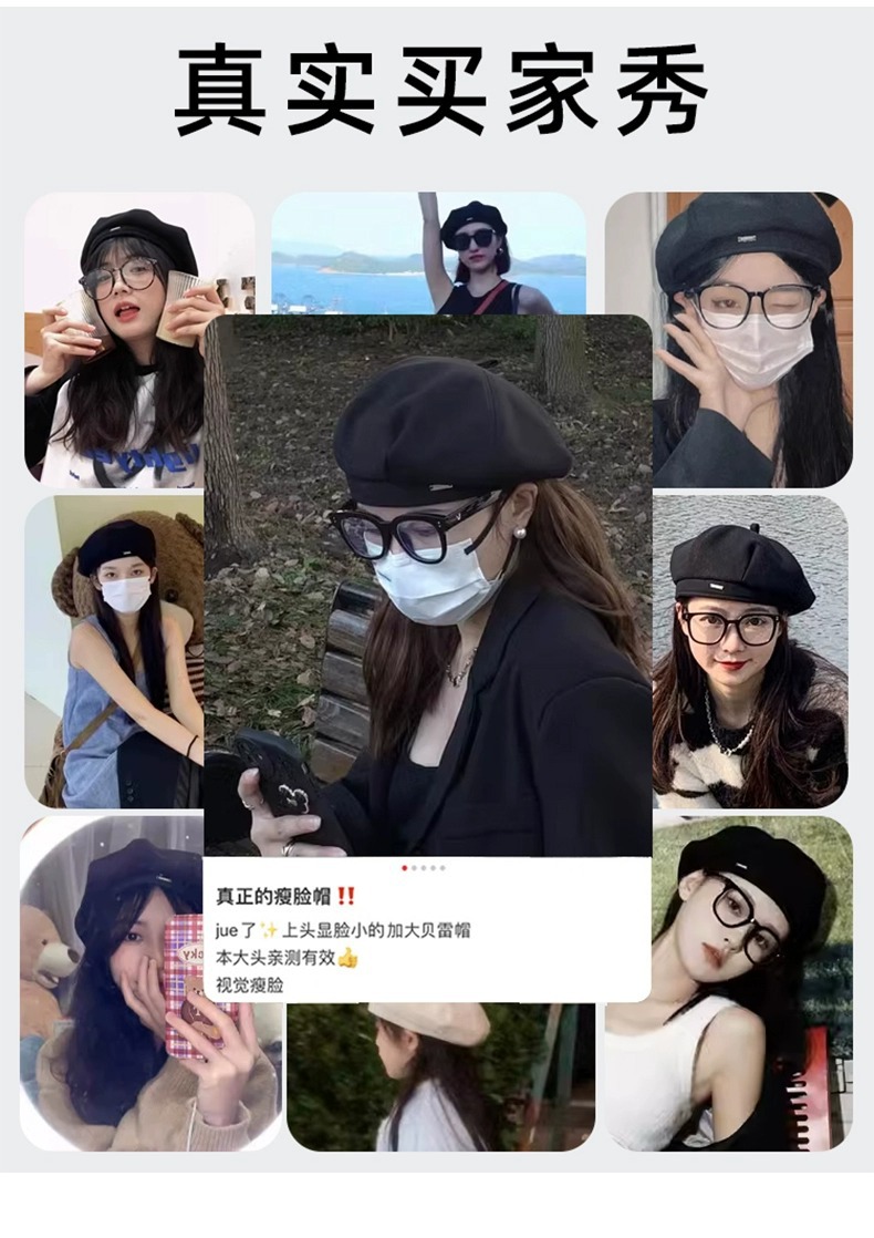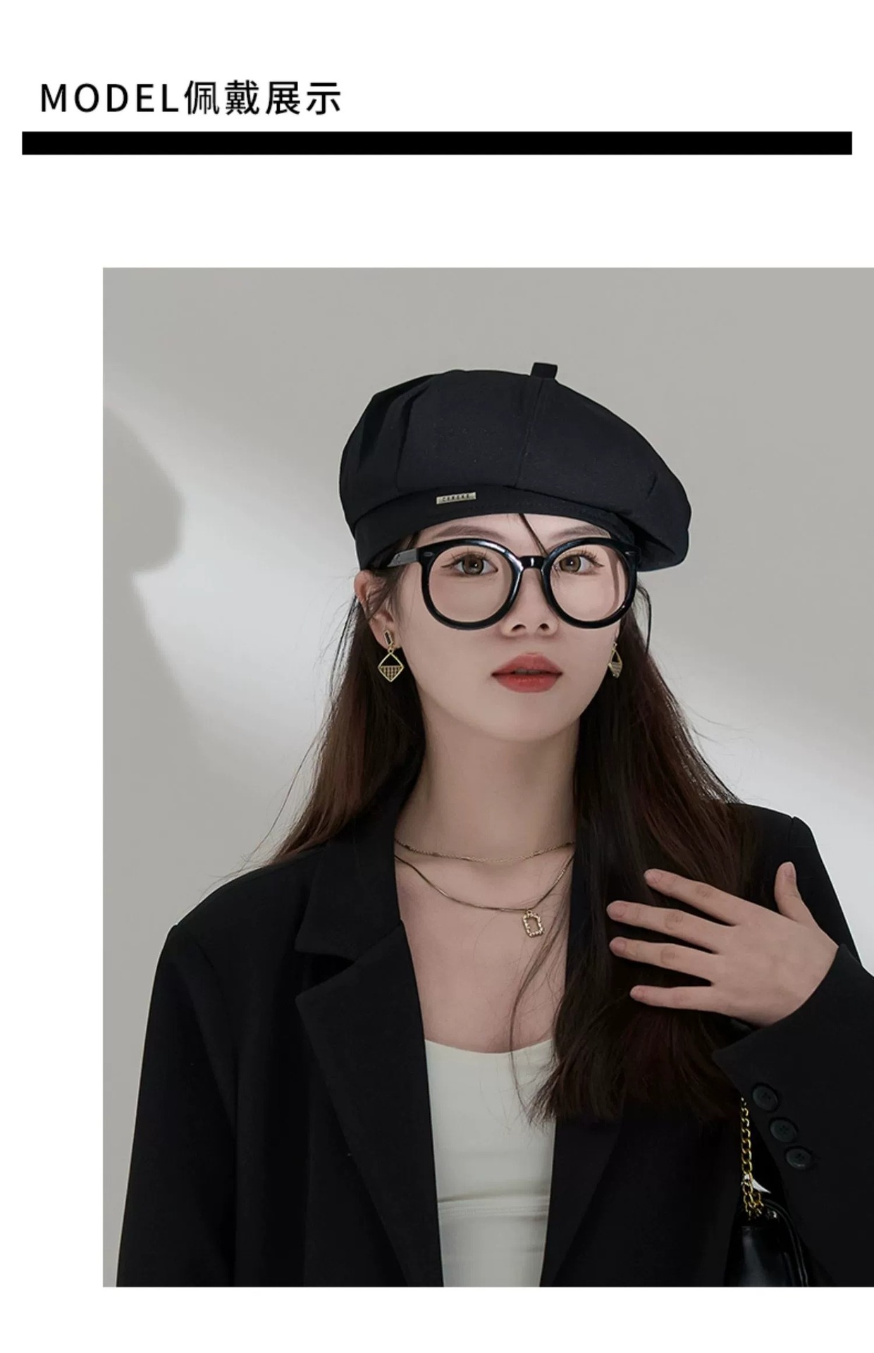 黑色贝雷帽女 ins画家帽女生日系显脸小秋冬薄款厚款八角大头围帽
