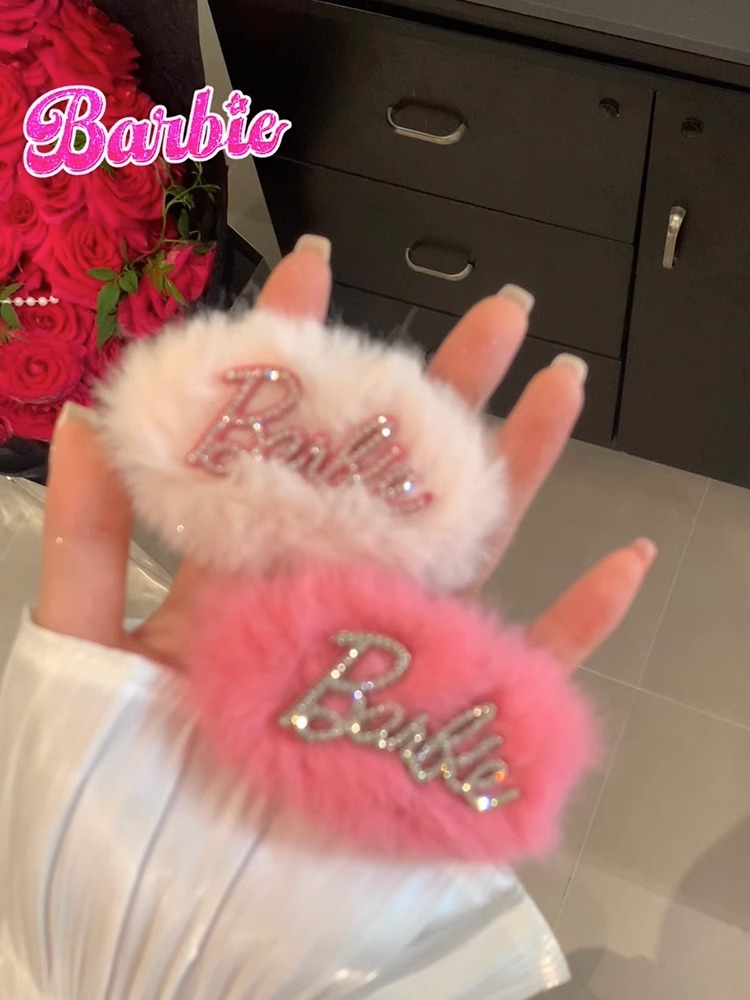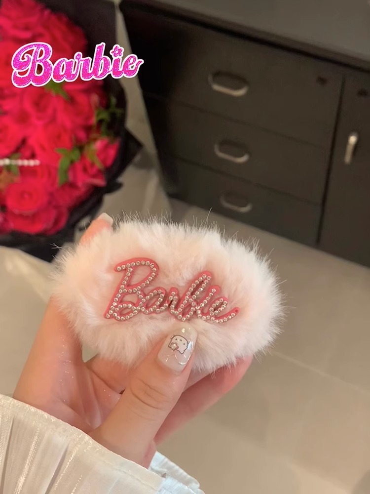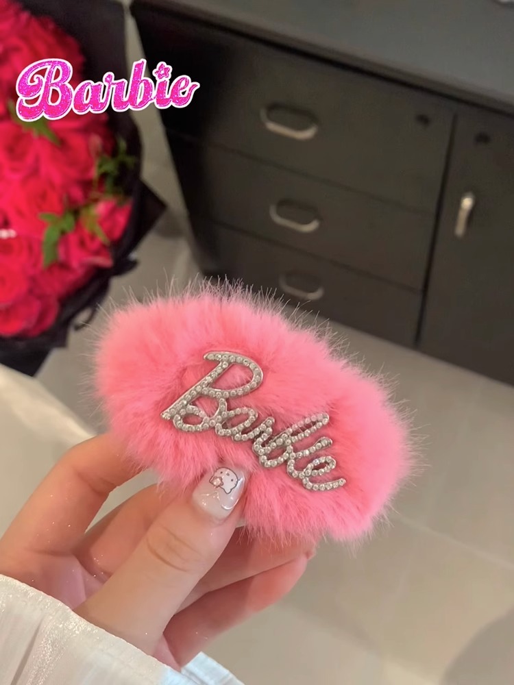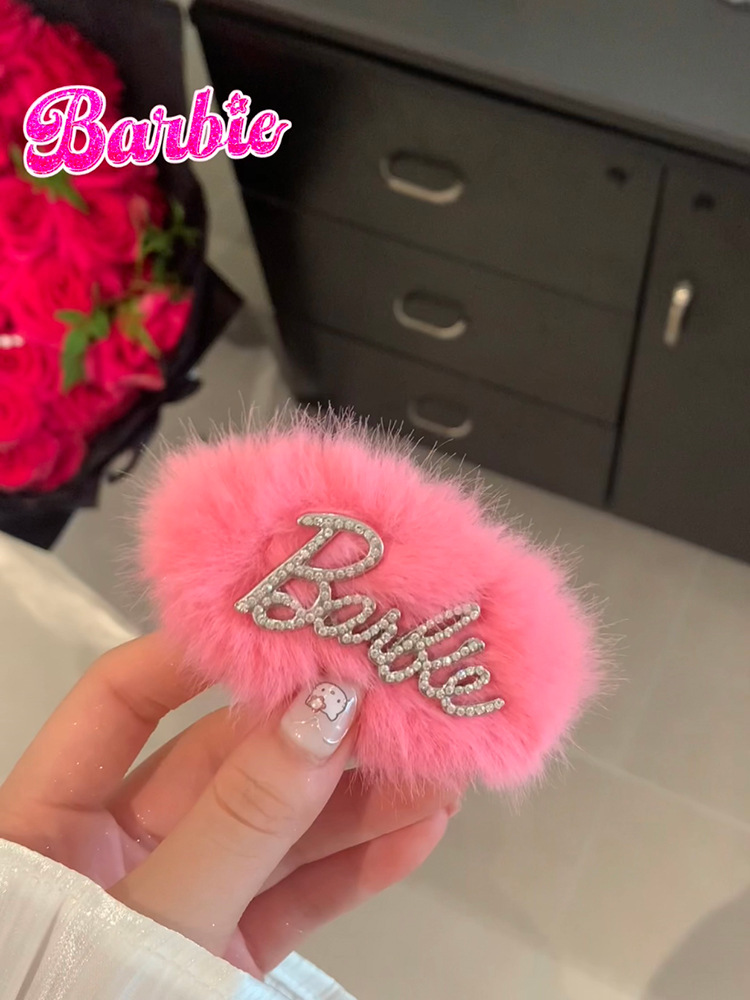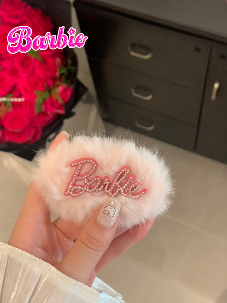 网红新款字母毛茸茸BB夹粉色Barbie可爱甜美少女侧边夹高级感头饰
