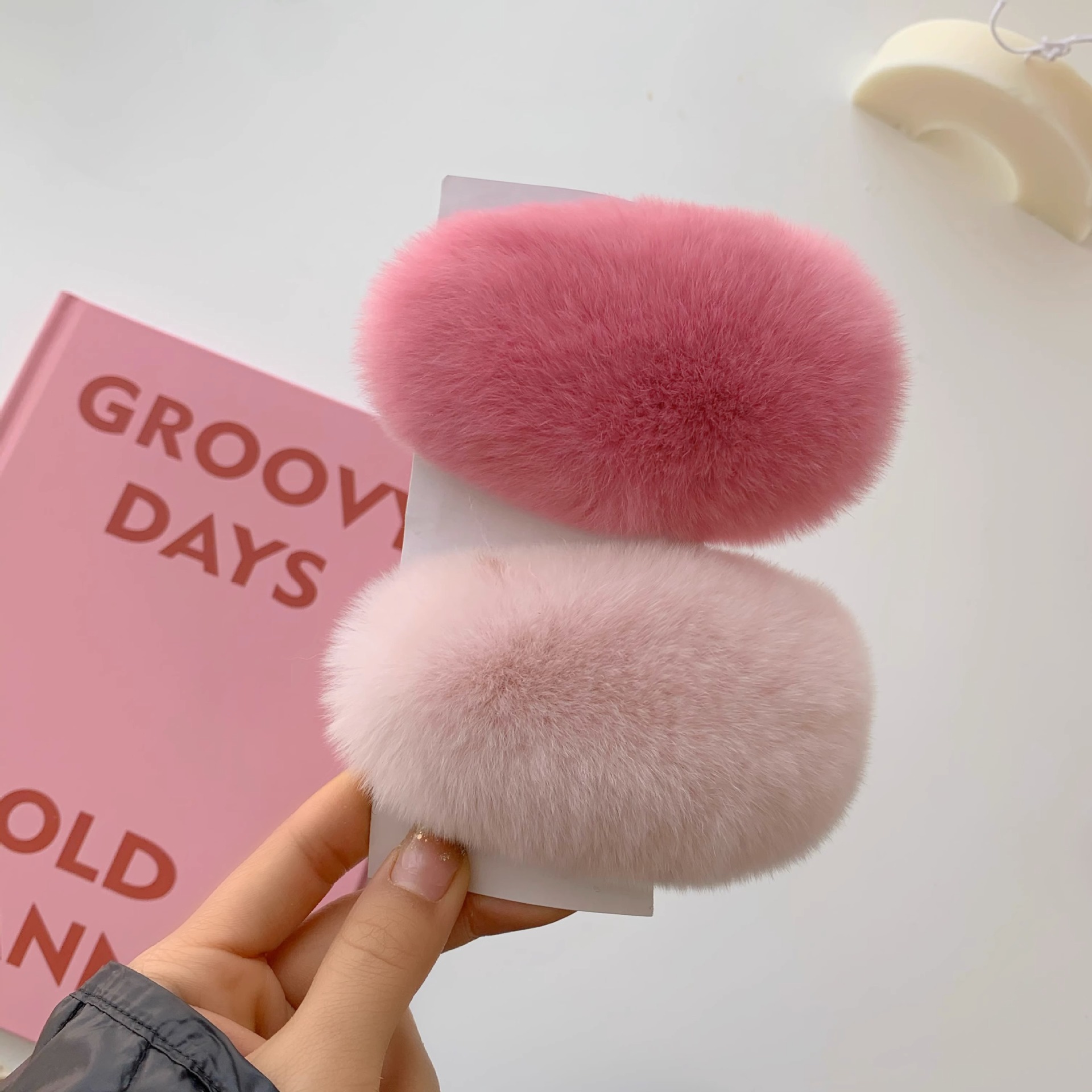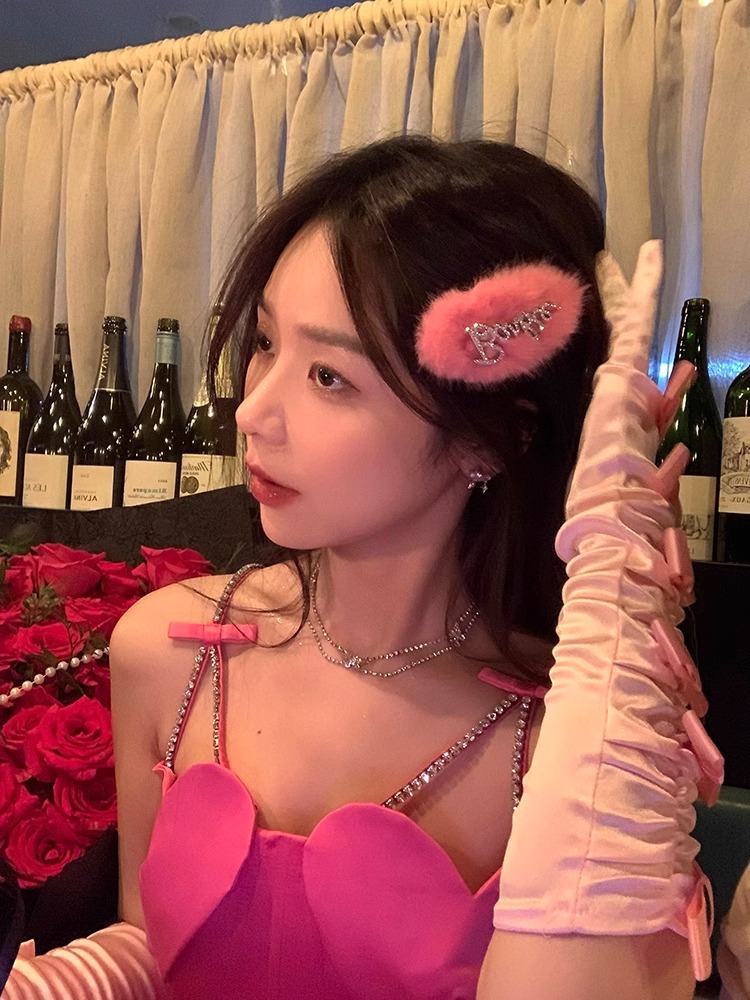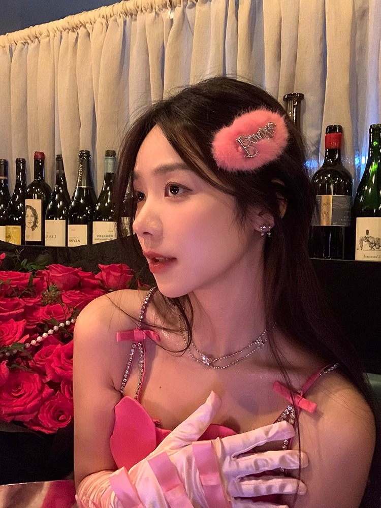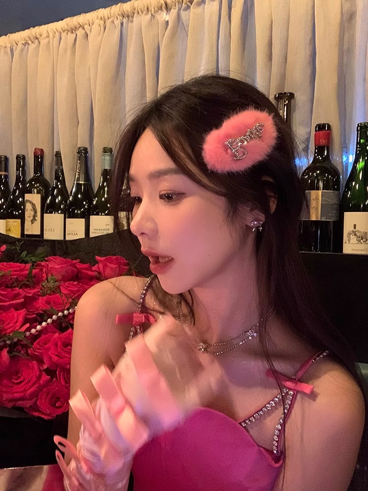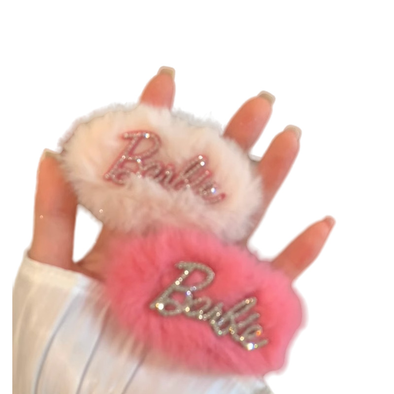 网红新款字母毛茸茸BB夹粉色Barbie可爱甜美少女侧边夹高级感头饰