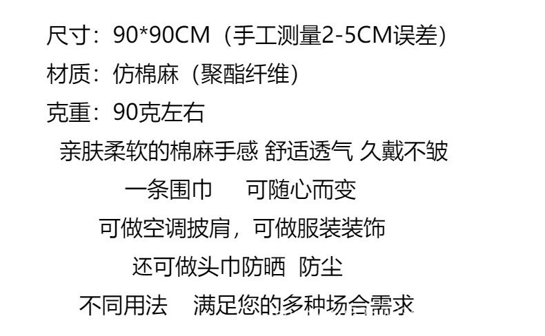 明星网红同款春季90棉麻方巾韩版围巾披肩薄款纱巾直播丝巾批发女