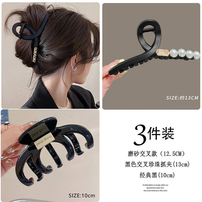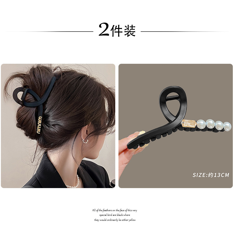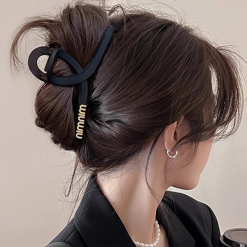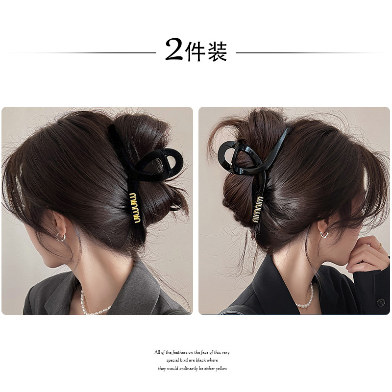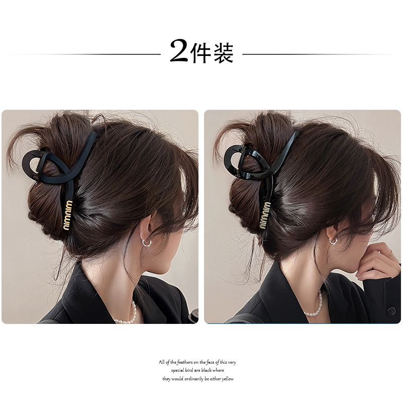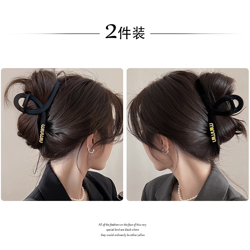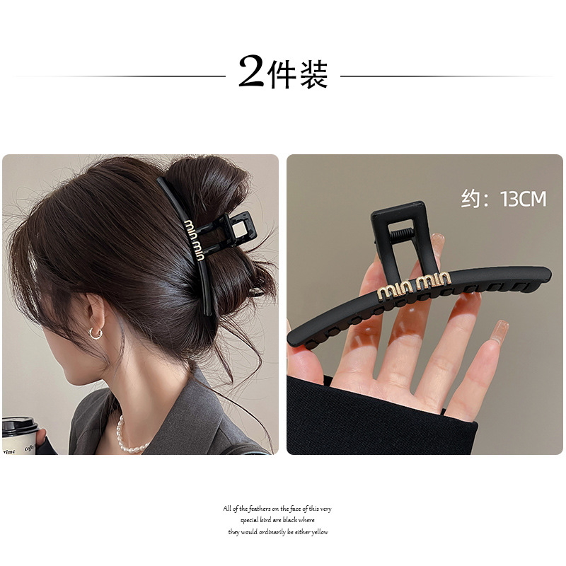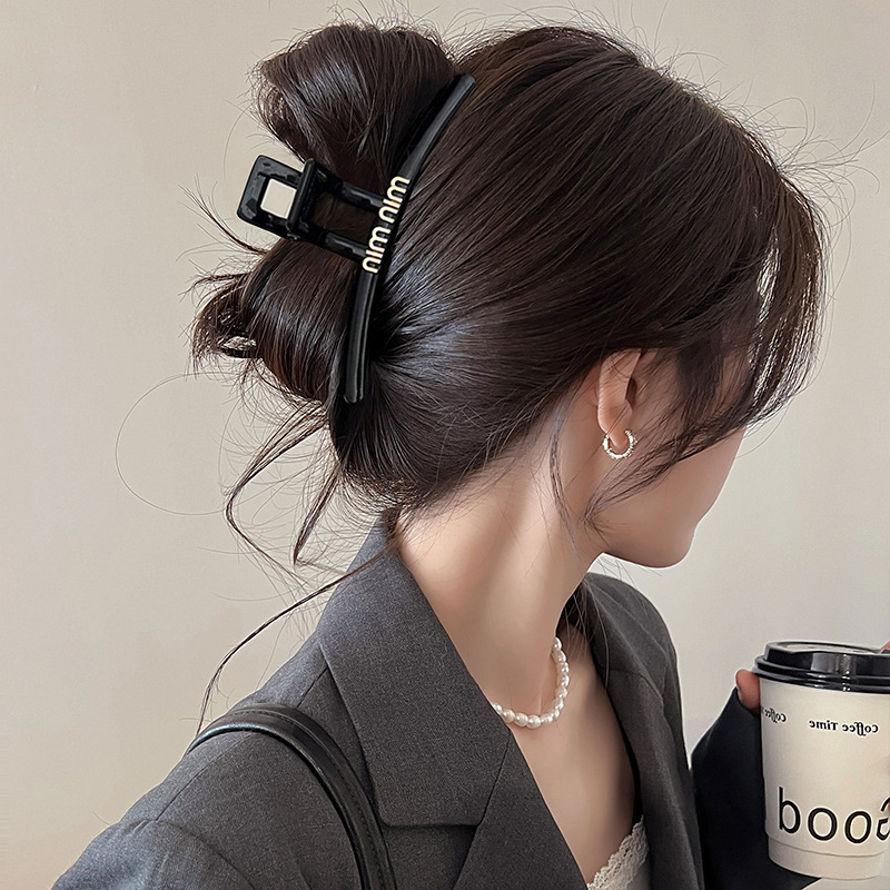 黑色盘发抓夹大号简约字母min发夹女高级感后脑勺盘发鲨鱼夹头饰1