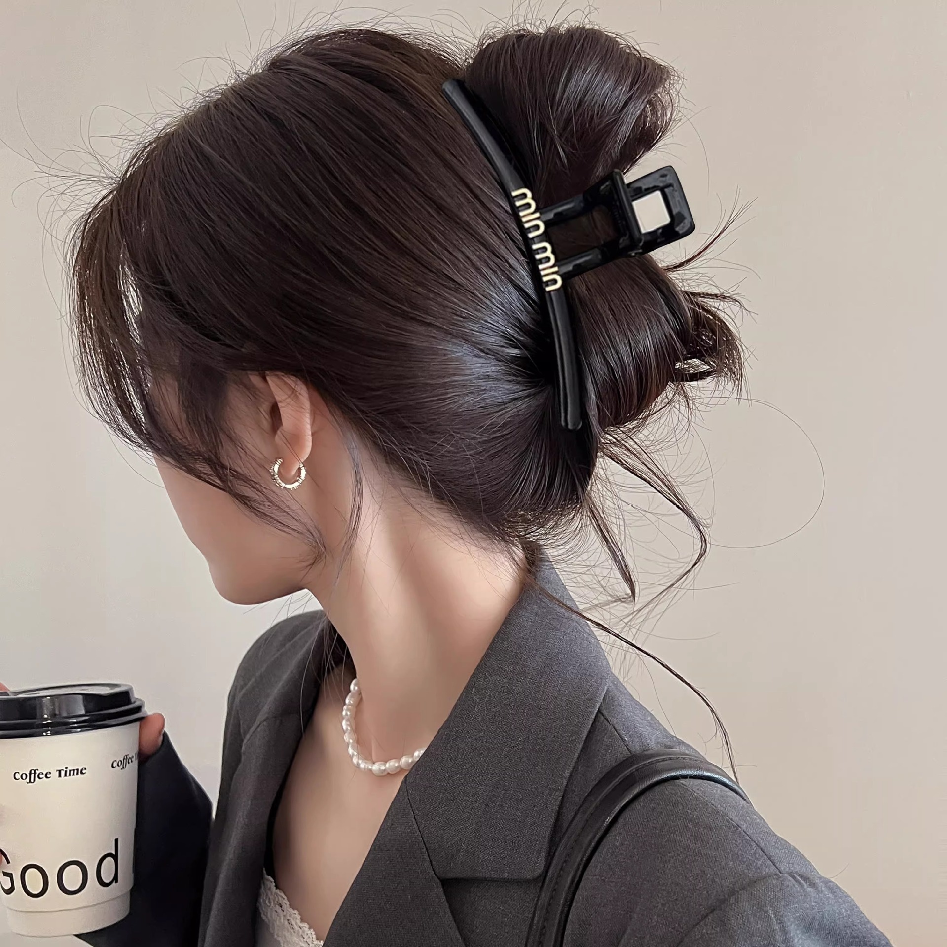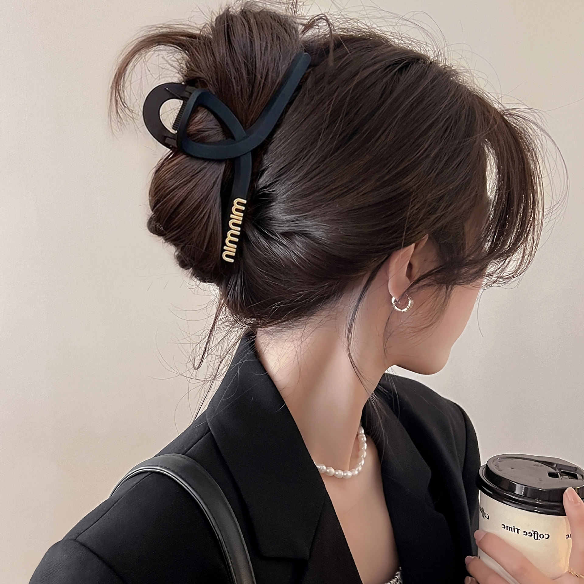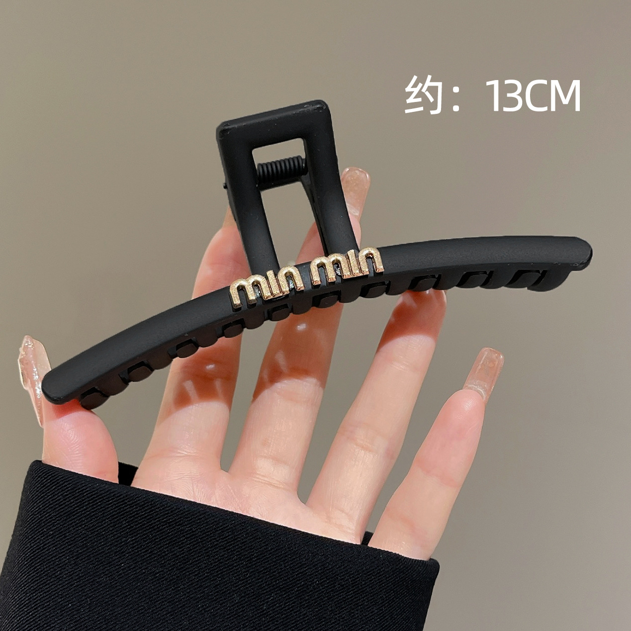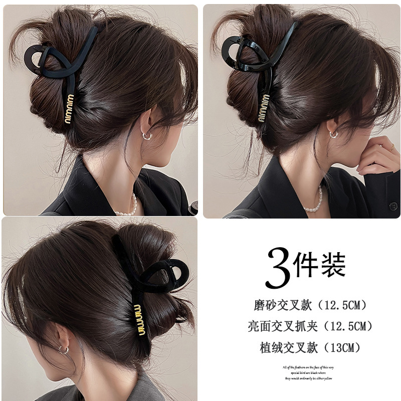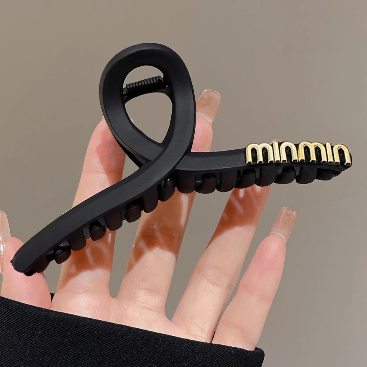 黑色盘发抓夹大号简约字母min发夹女高级感后脑勺盘发鲨鱼夹头饰1