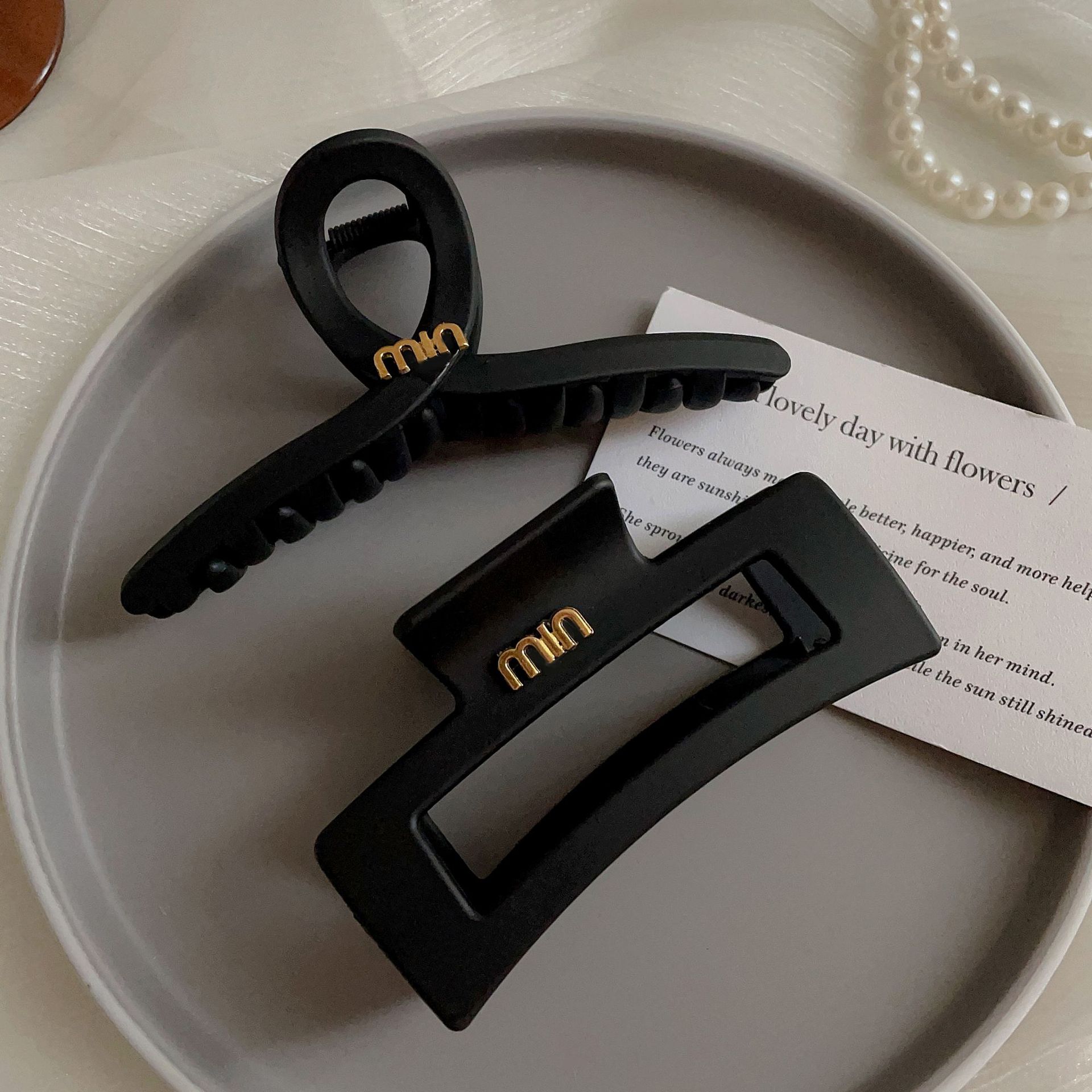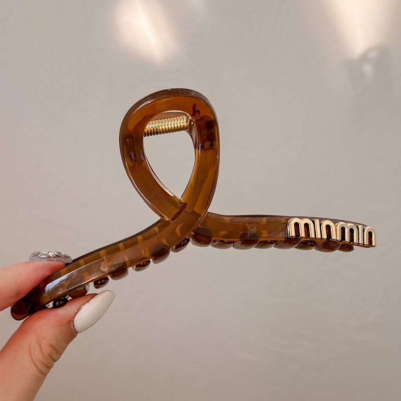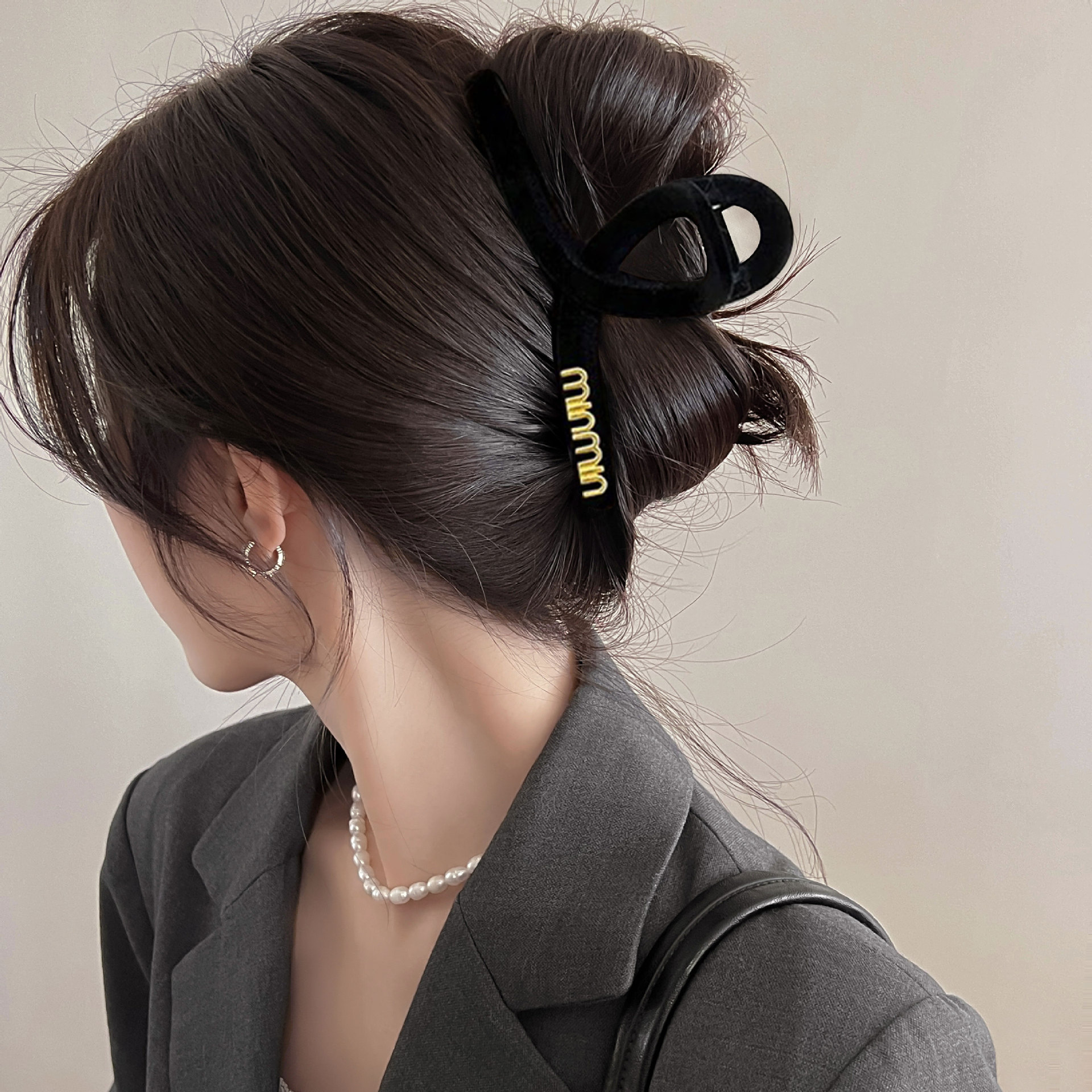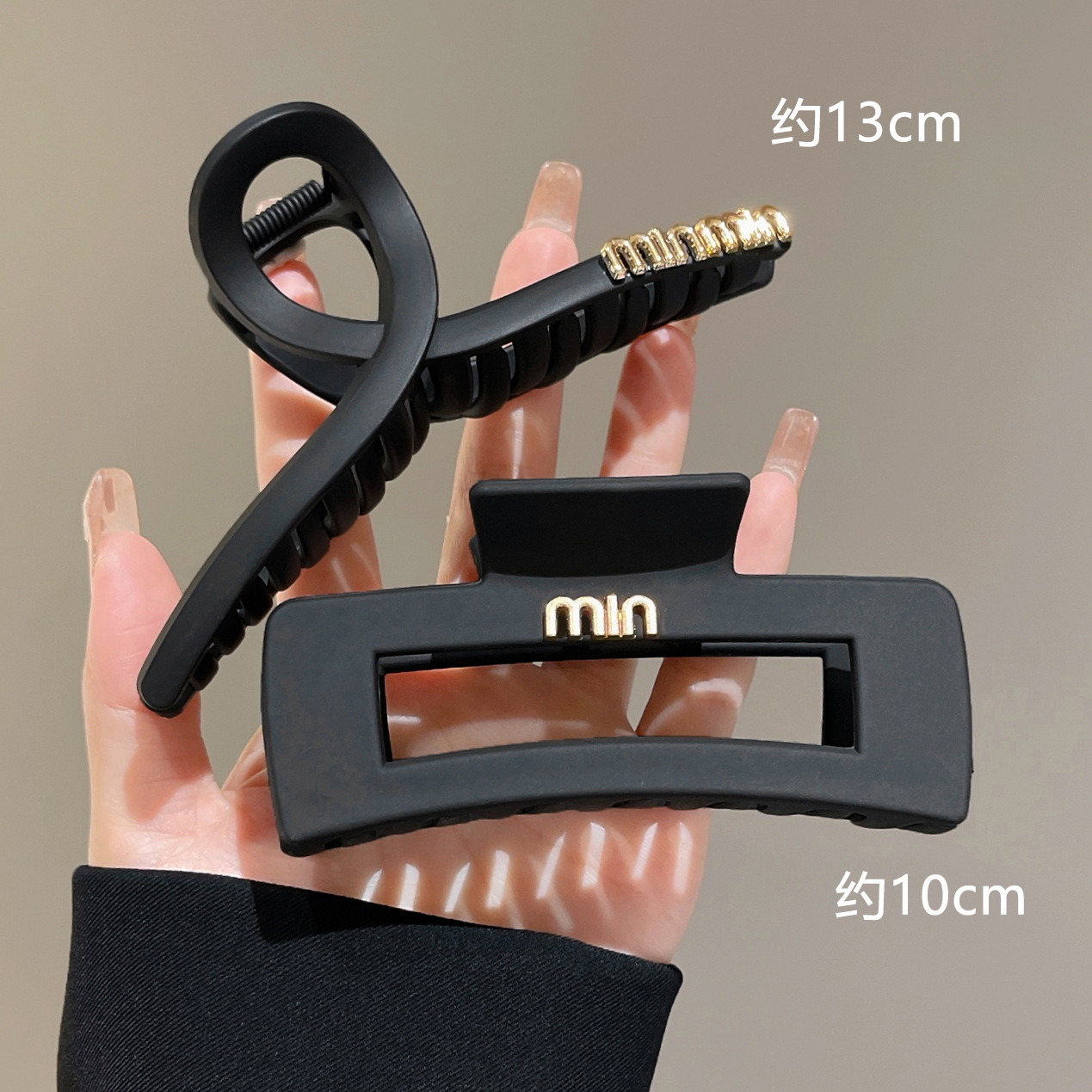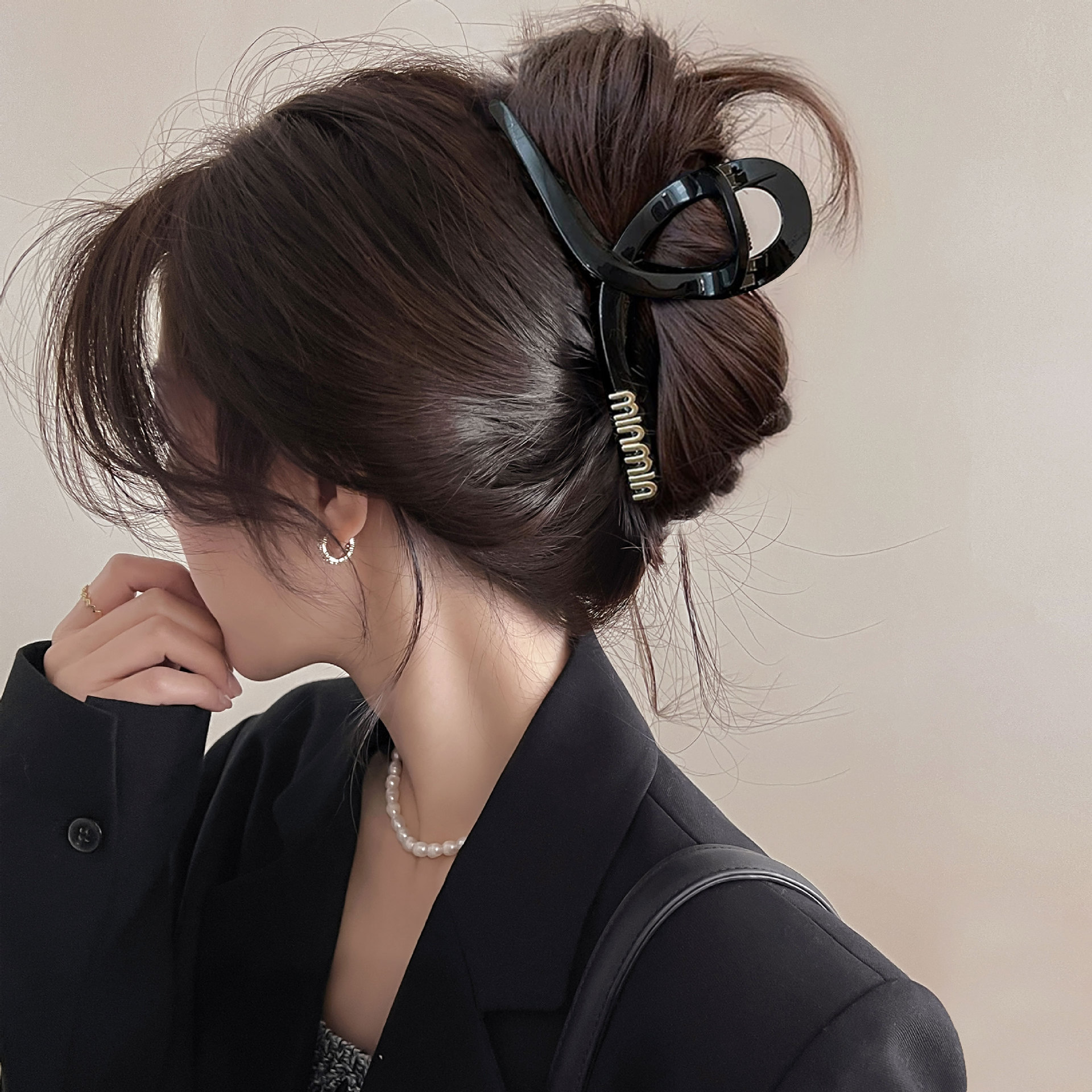 黑色盘发抓夹大号简约字母min发夹女高级感后脑勺盘发鲨鱼夹头饰1