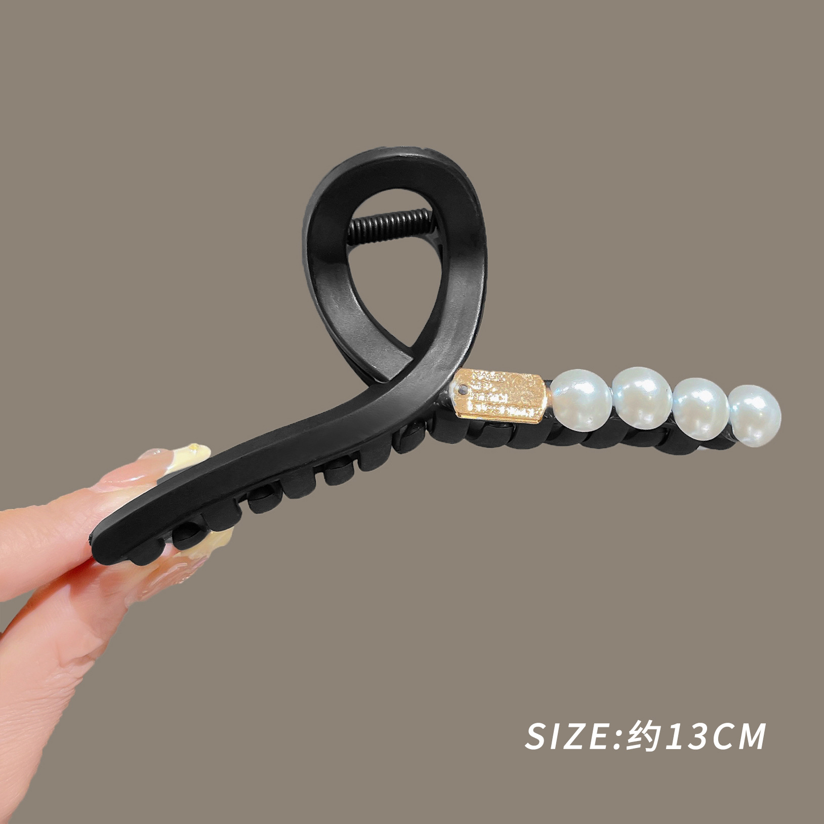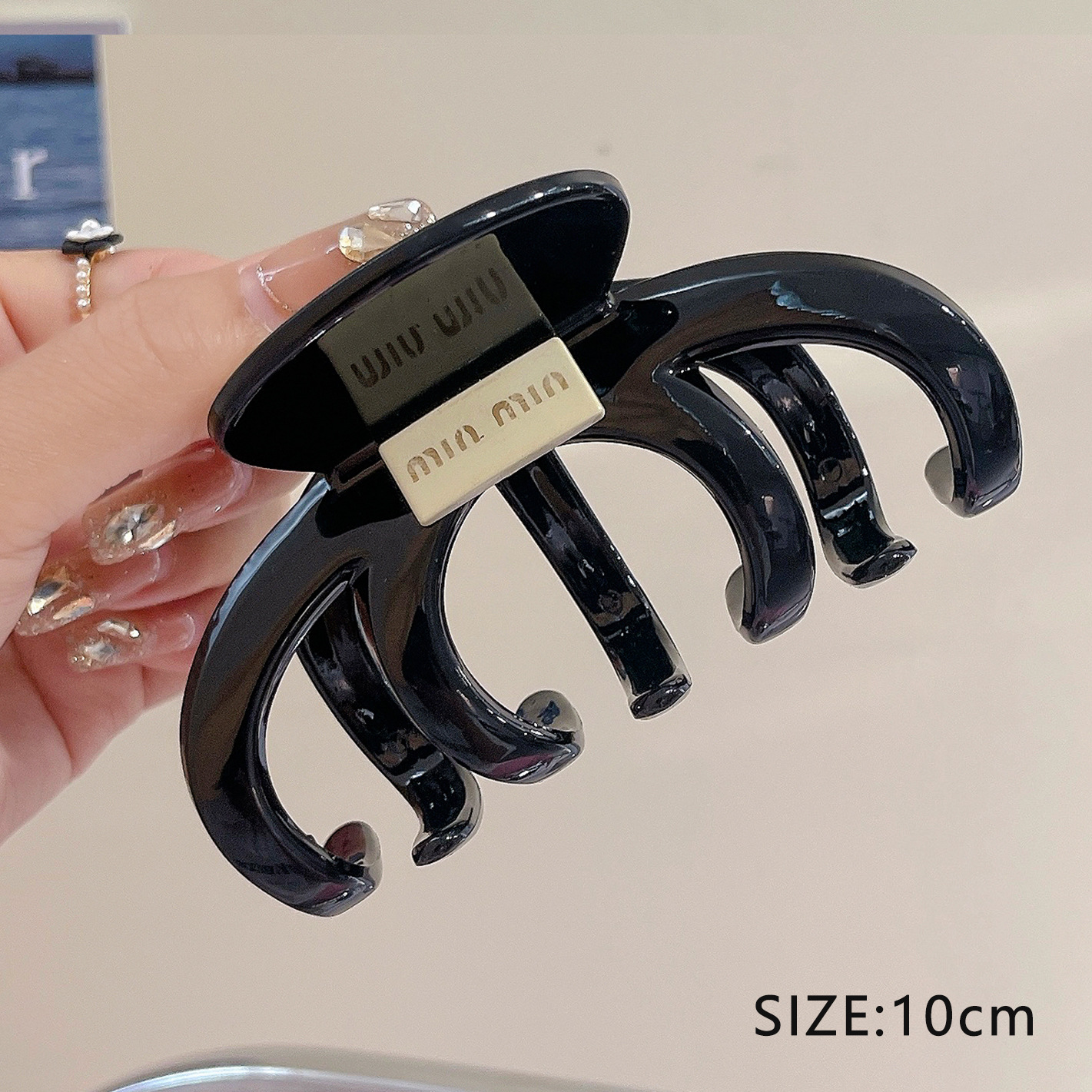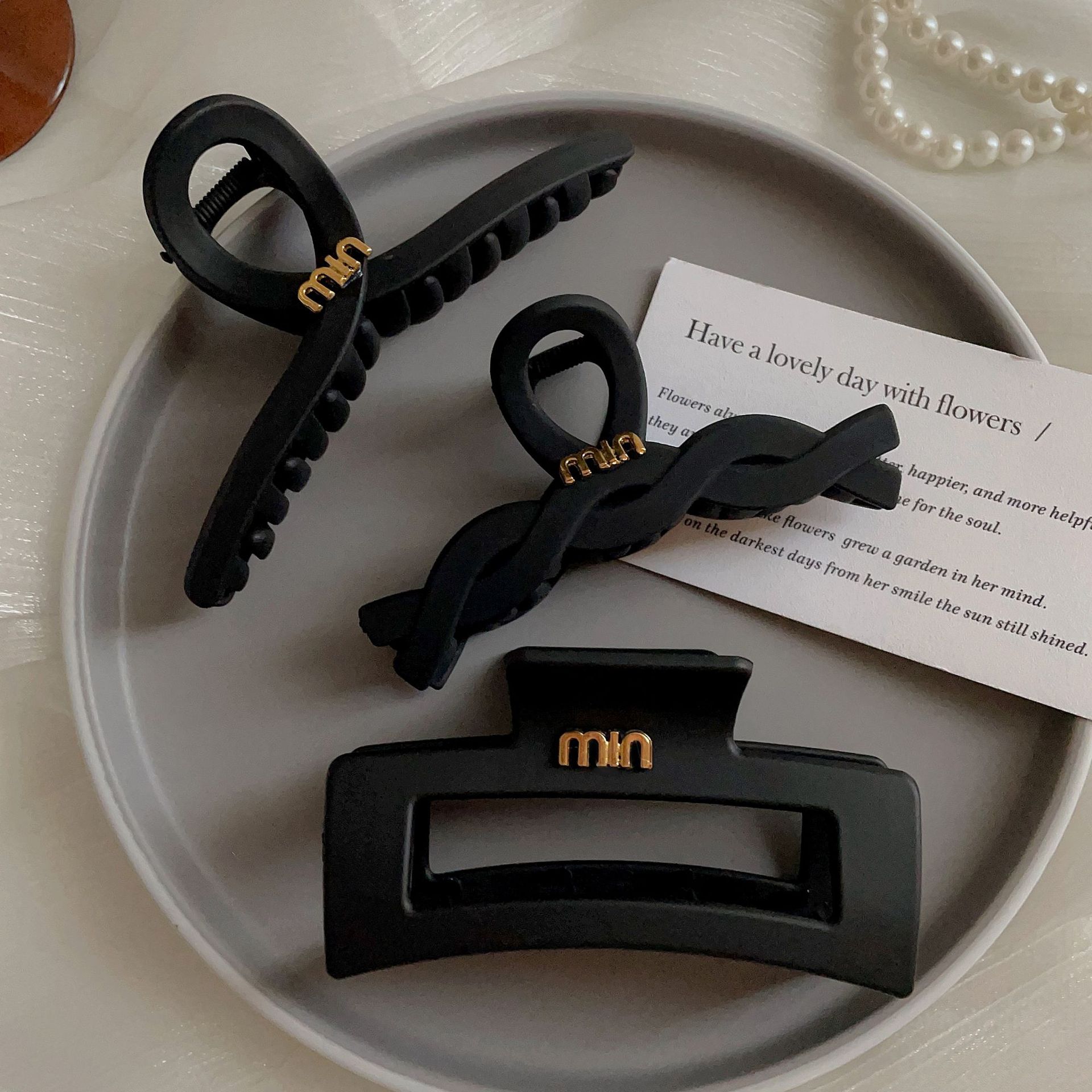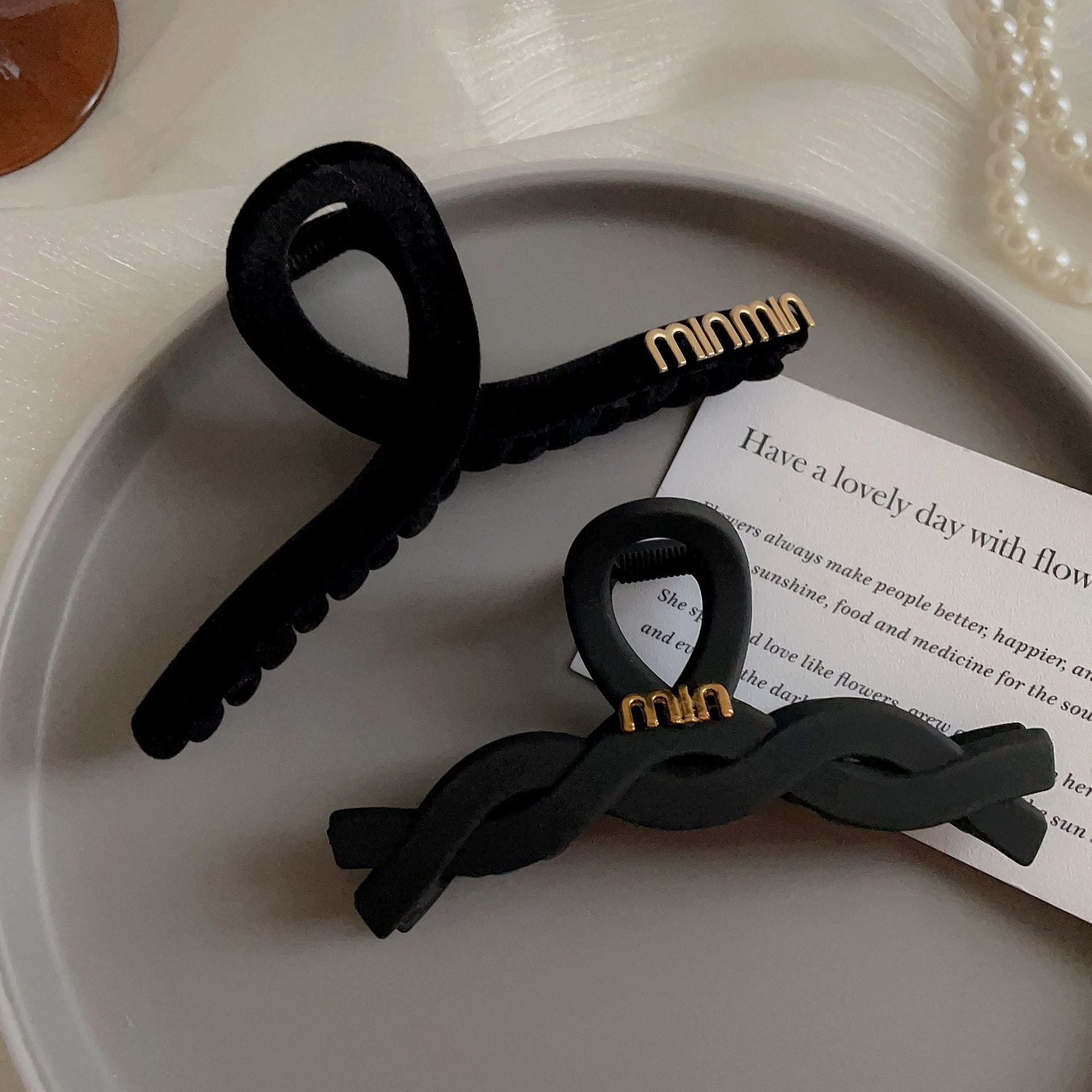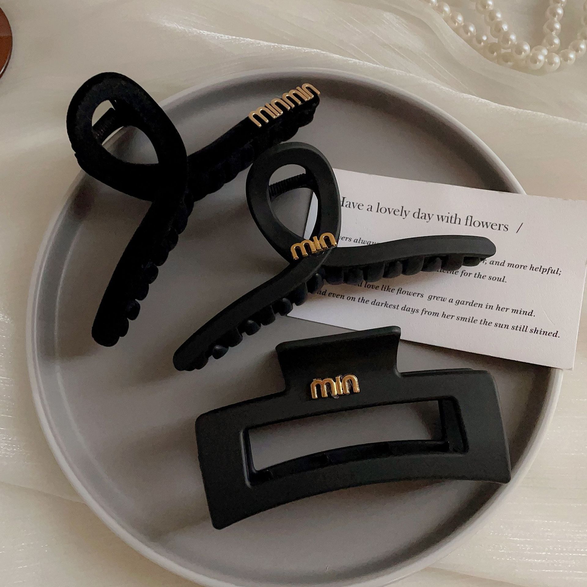 黑色盘发抓夹大号简约字母min发夹女高级感后脑勺盘发鲨鱼夹头饰1