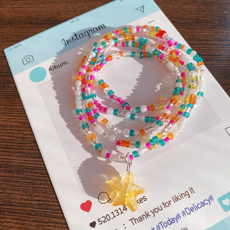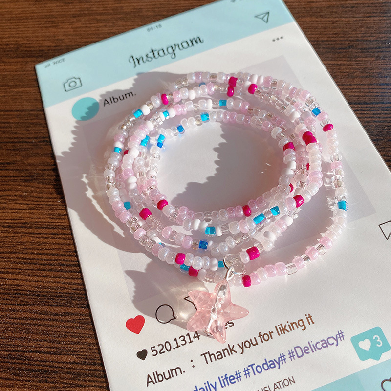 HD7252A03海盐薄荷民族风小米珠手串撞色小众时尚少女叠戴手链项