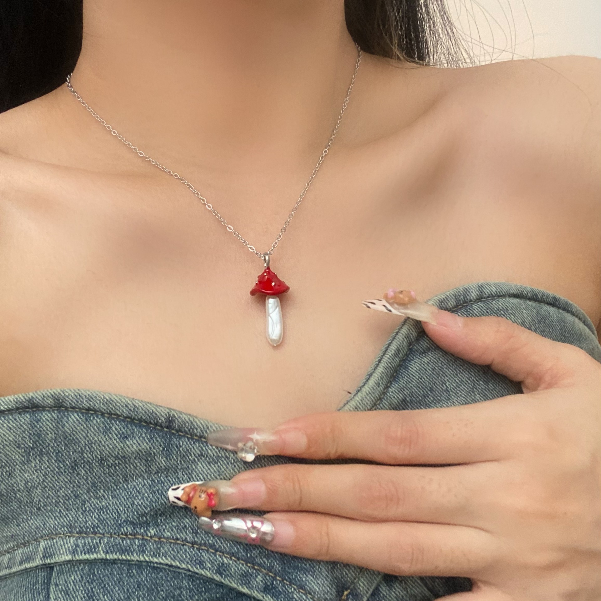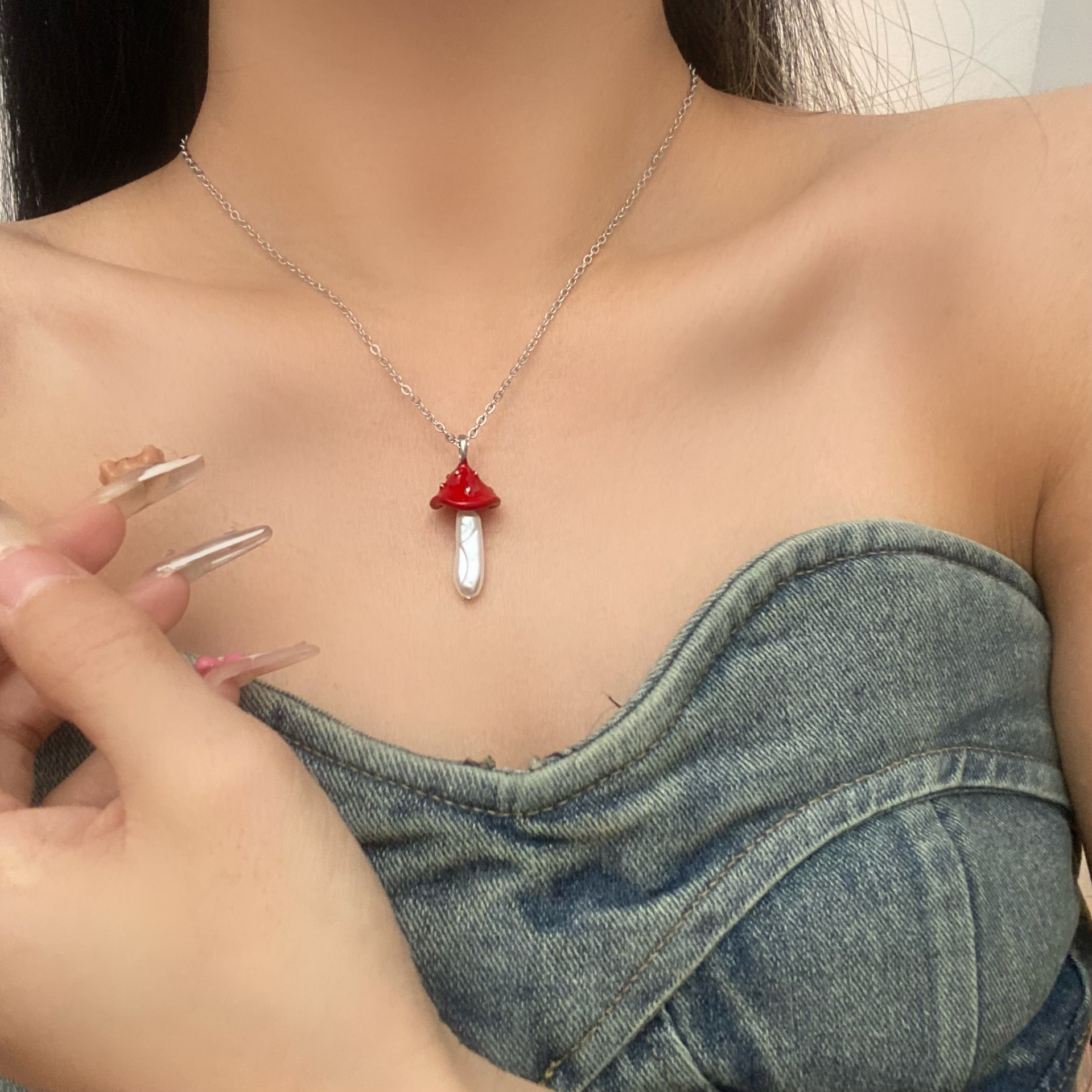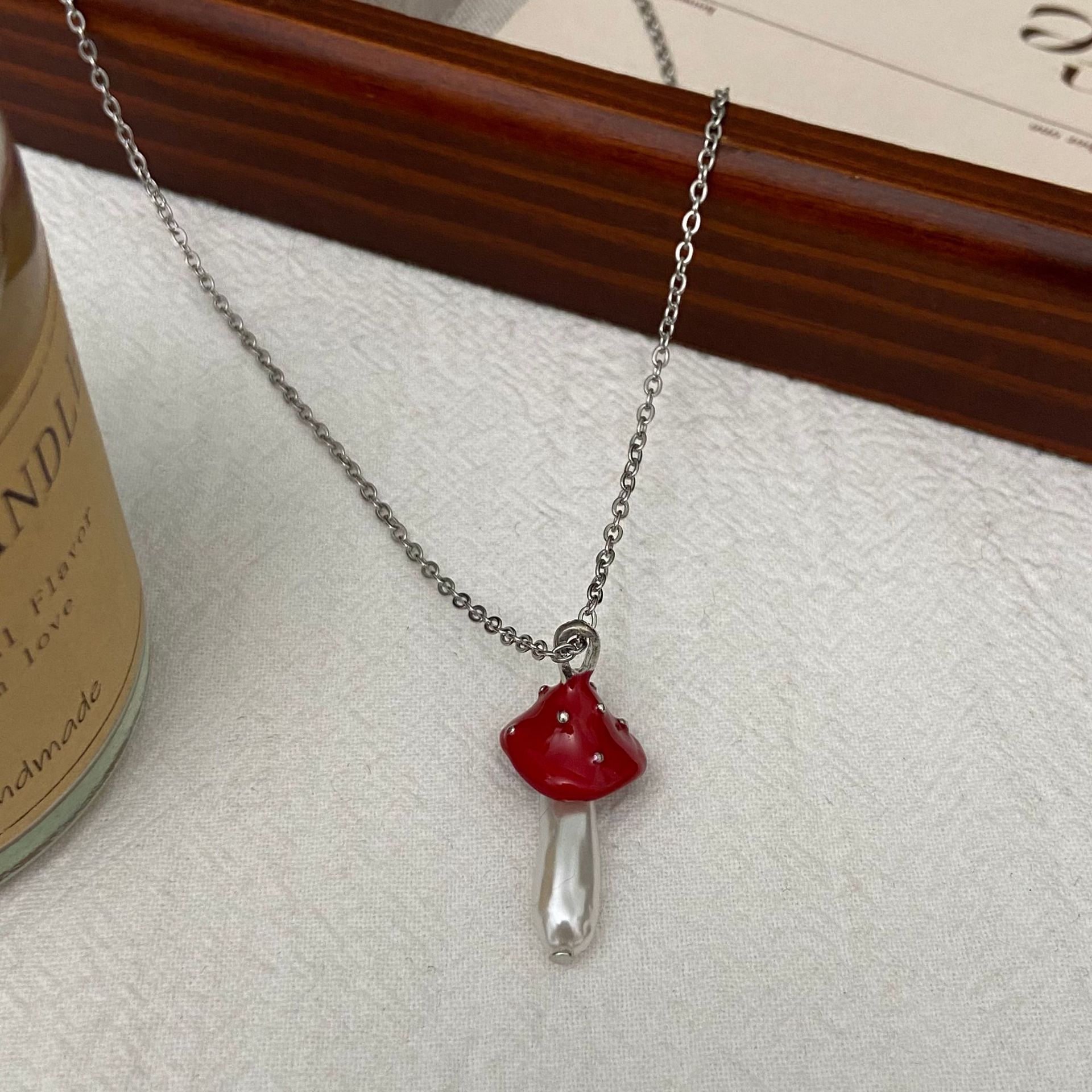 新品危险花园小蘑菇吊坠项链女童趣可爱小众设计感时尚百搭锁骨链
