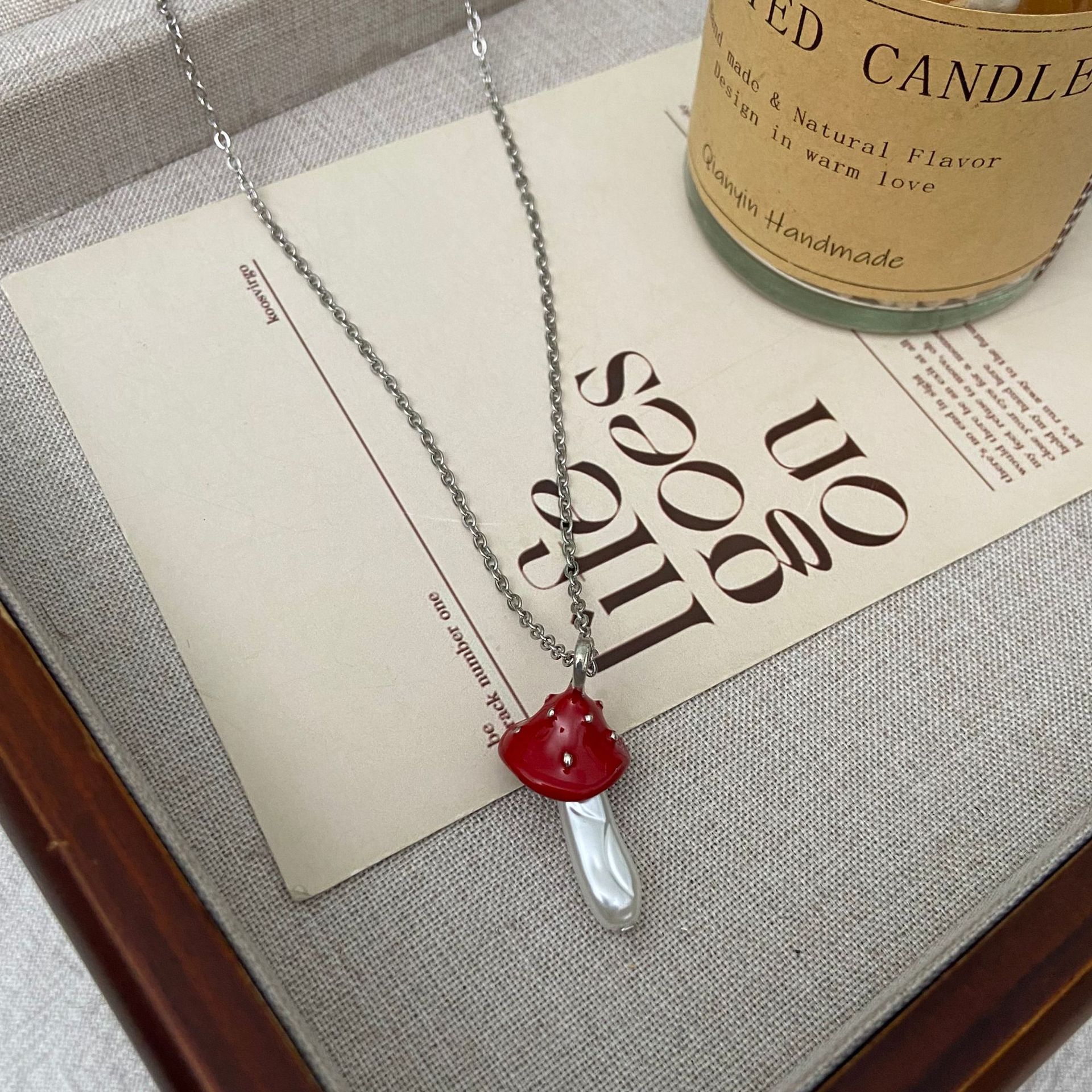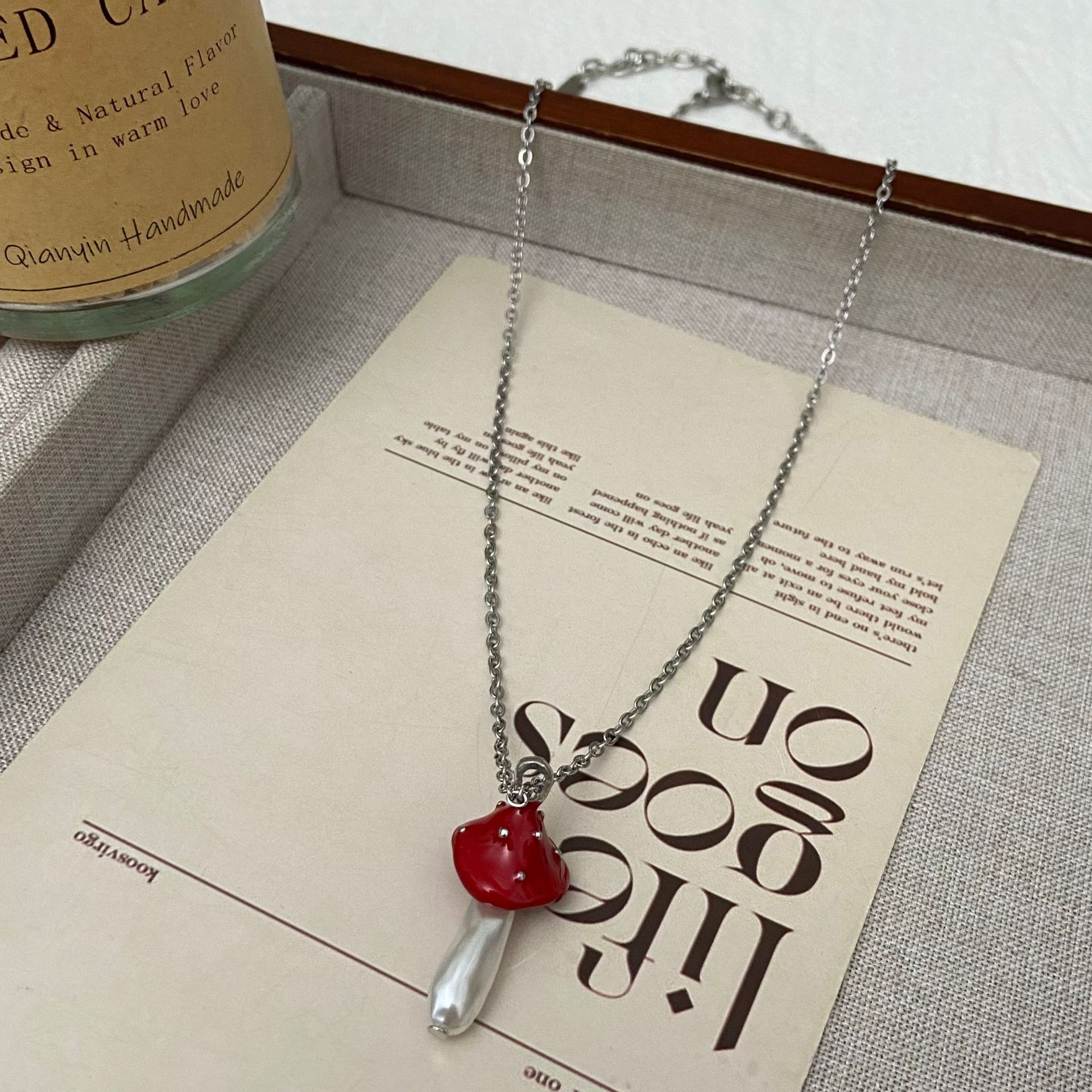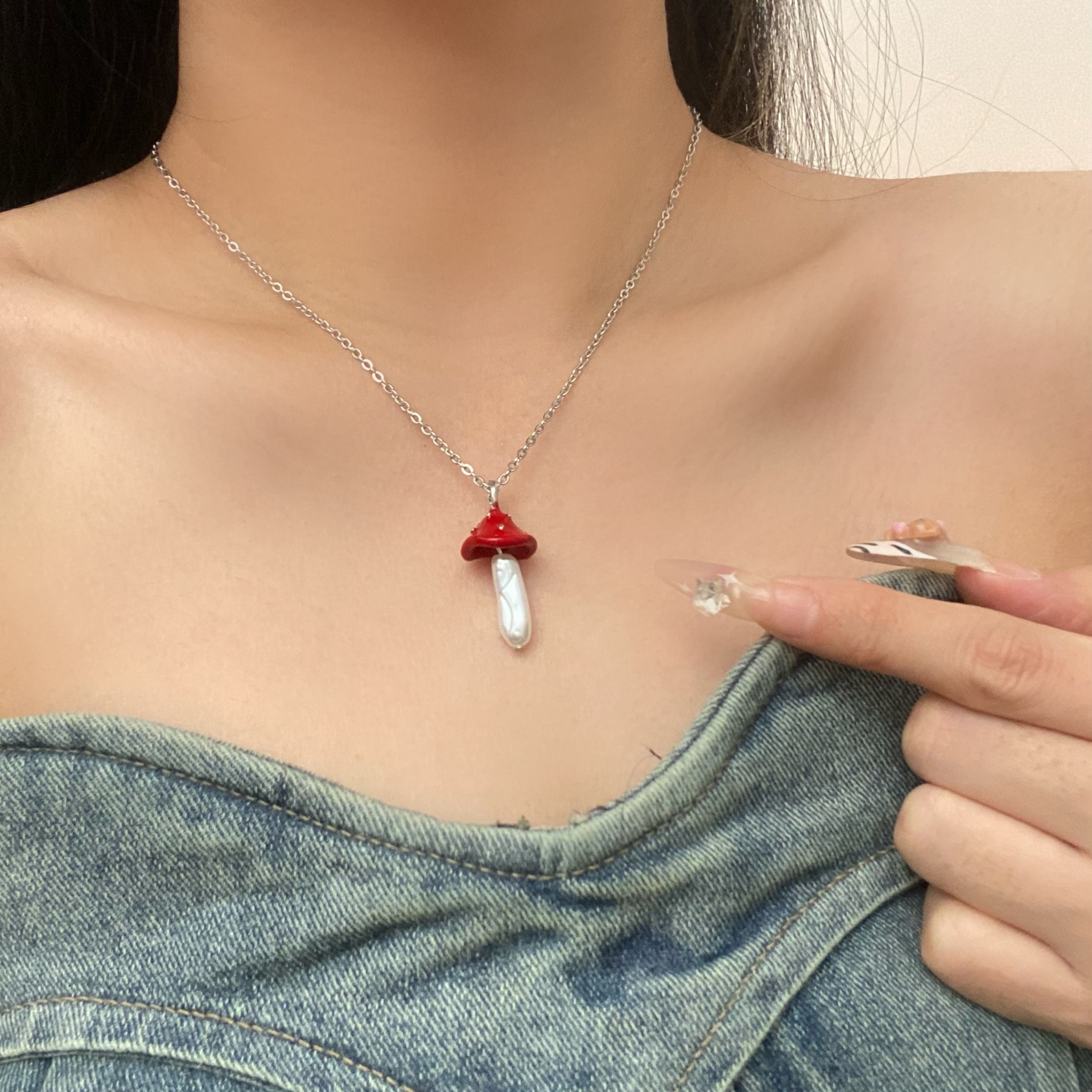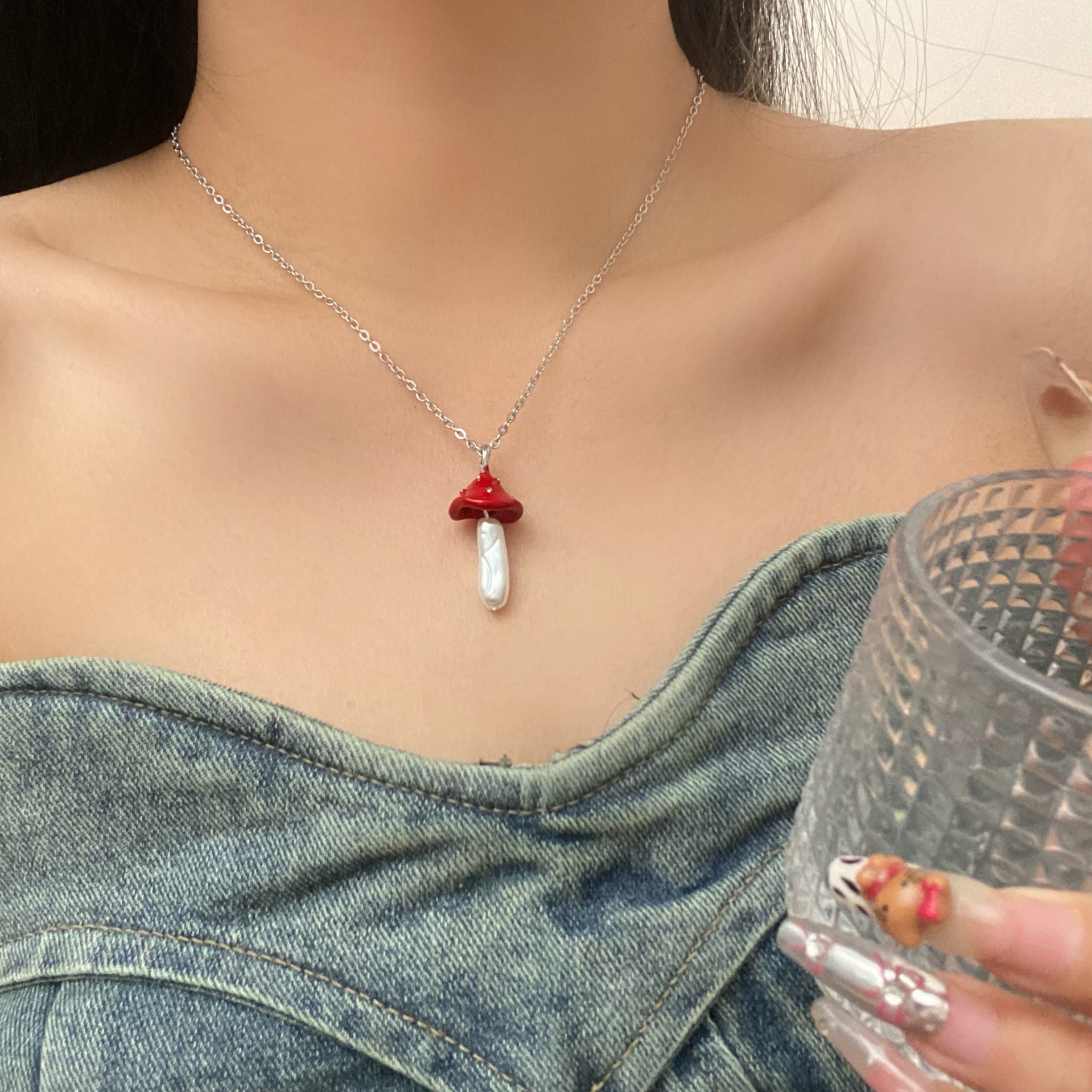 新品危险花园小蘑菇吊坠项链女童趣可爱小众设计感时尚百搭锁骨链