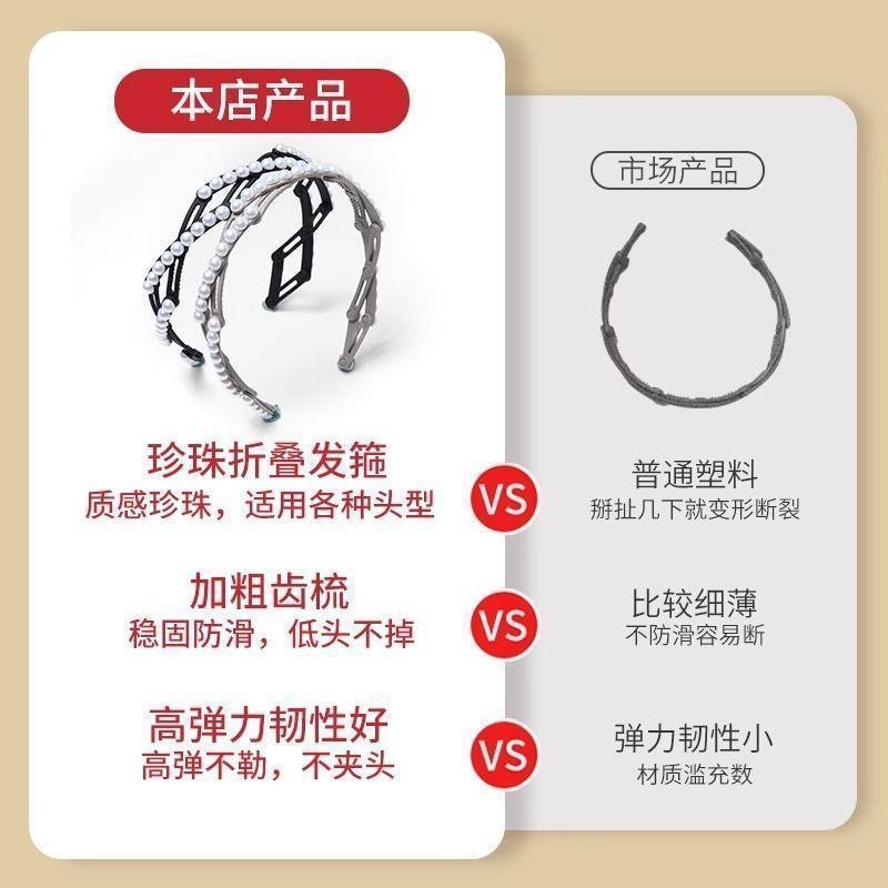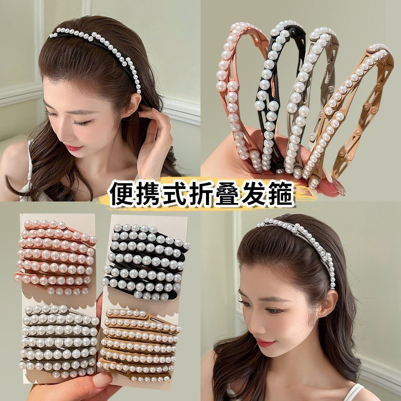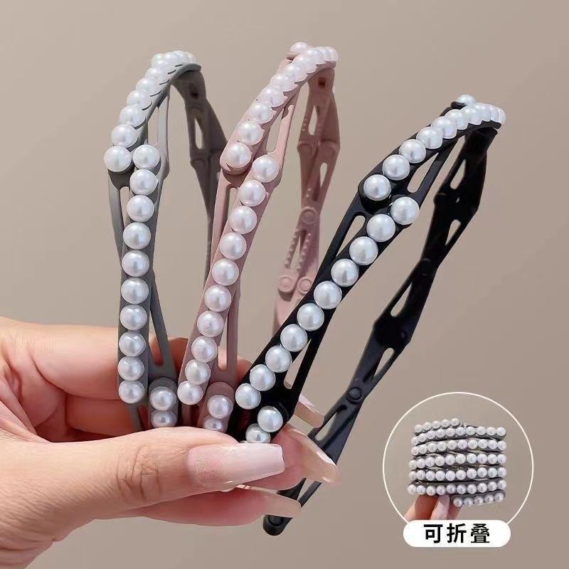 珠珠折叠发箍女2025新款洗脸头箍刘海前额碎发固定夏天头饰箍珍珠