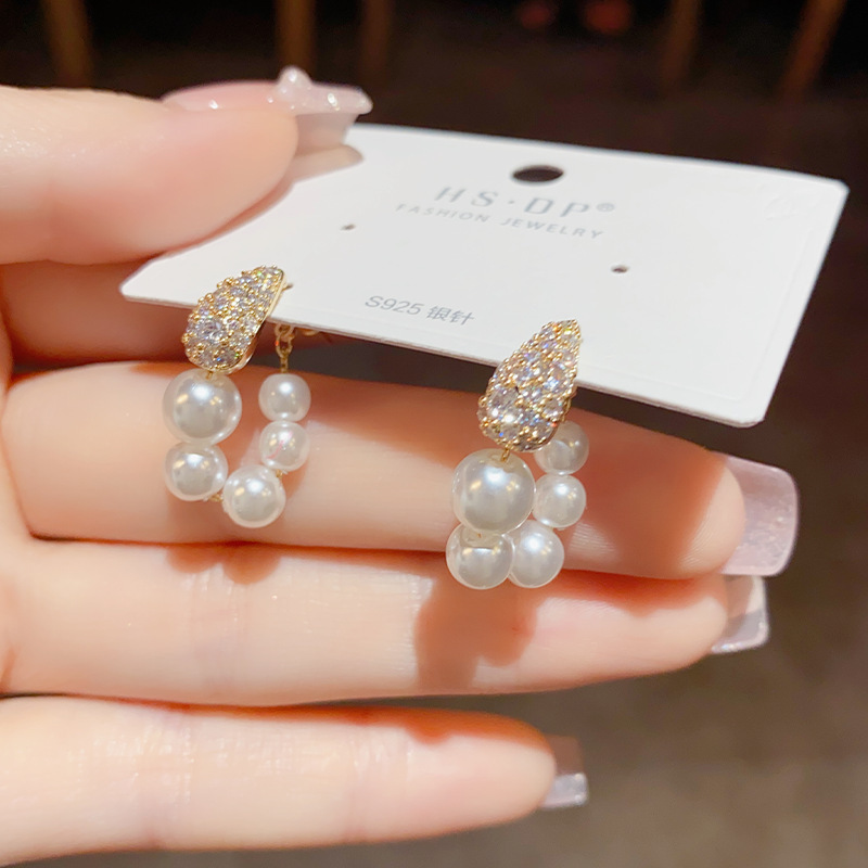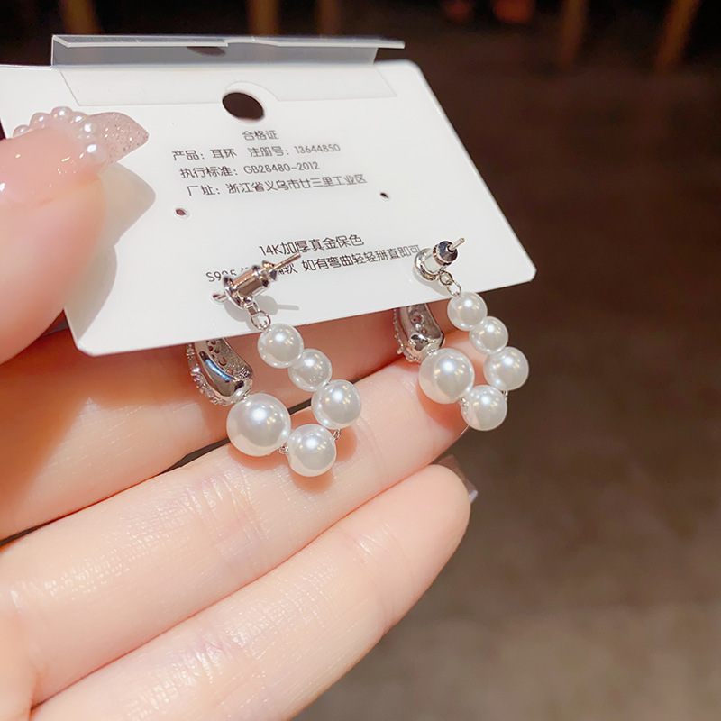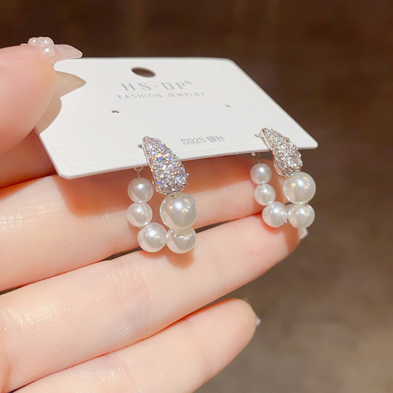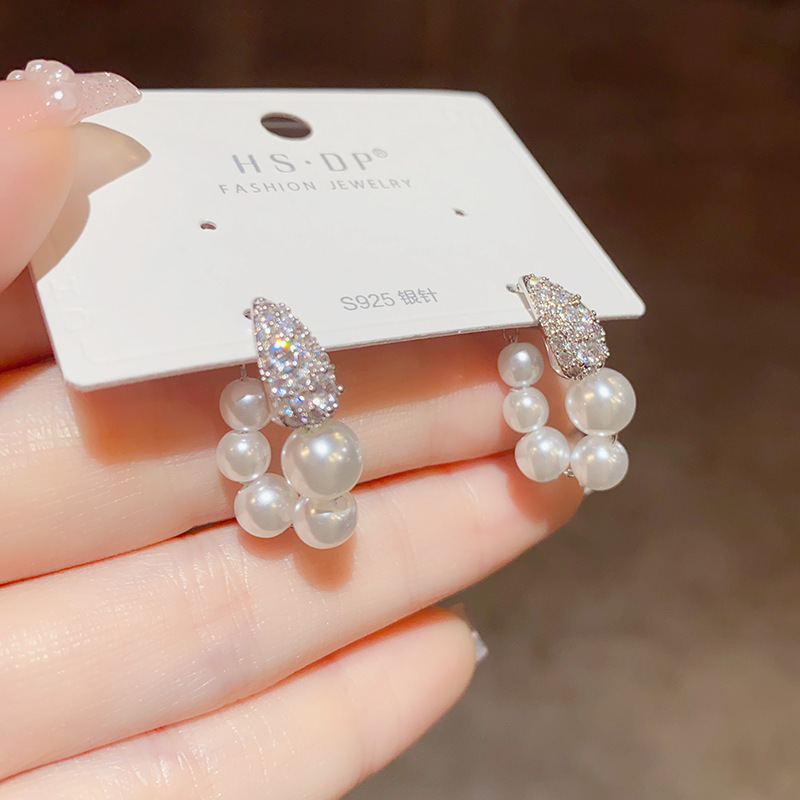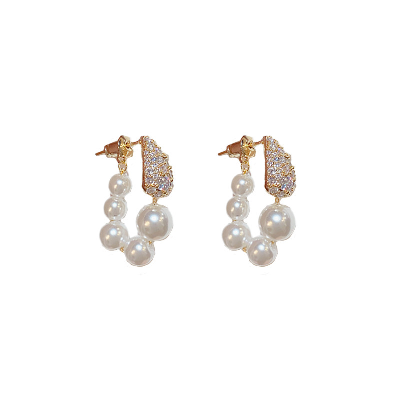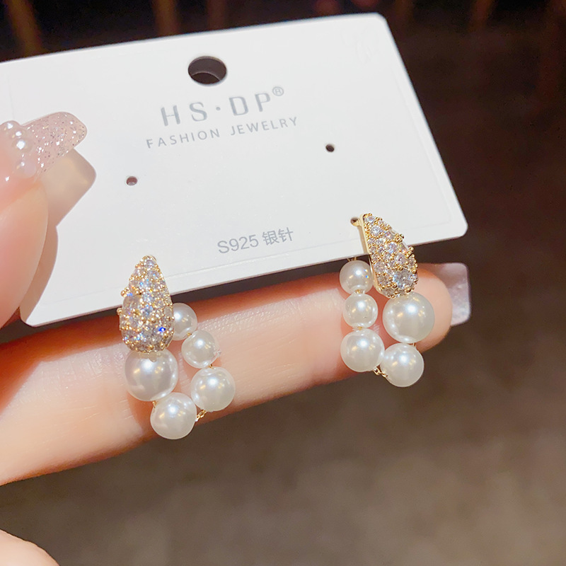 法式复古微镶锆石珍珠圈圈耳环女气质时尚优雅百搭电镀真金耳坠