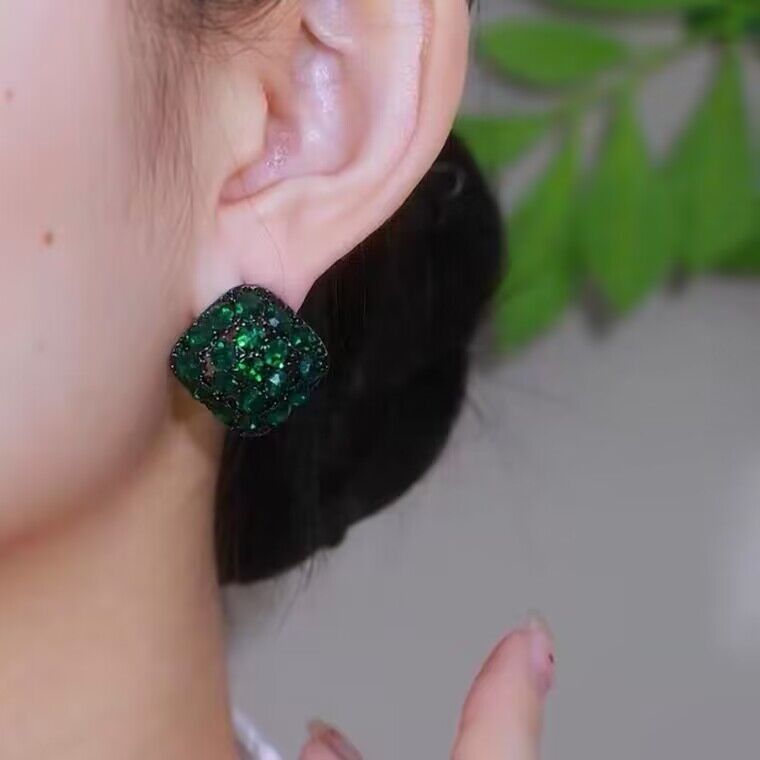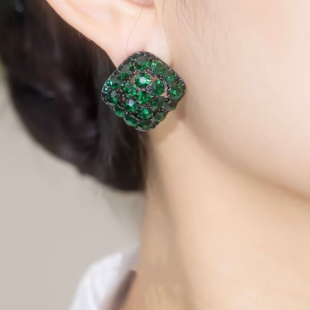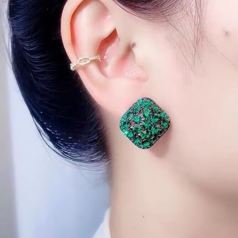 2023年新款潮气质水钻方形耳钉时尚女小众设计感耳环轻奢银针耳饰