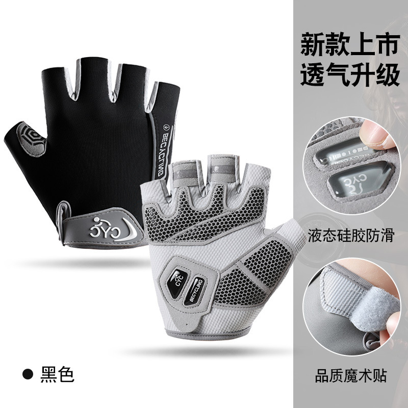 骑行手套女款健身液态硅胶透气防滑减震耐磨户外运动半指男自行车