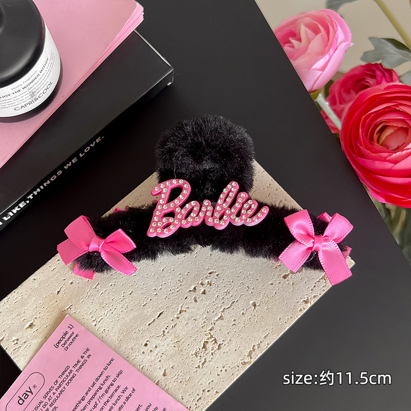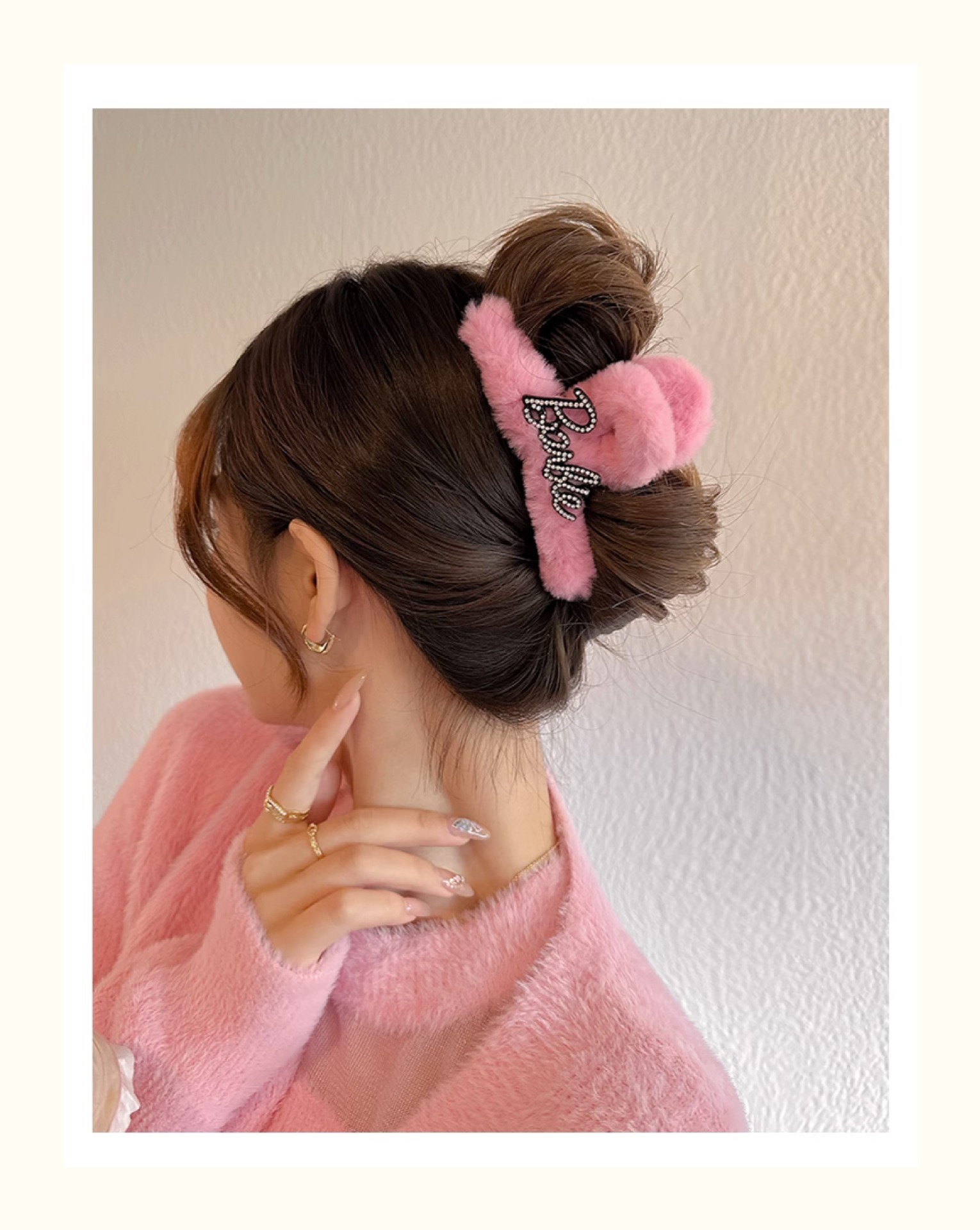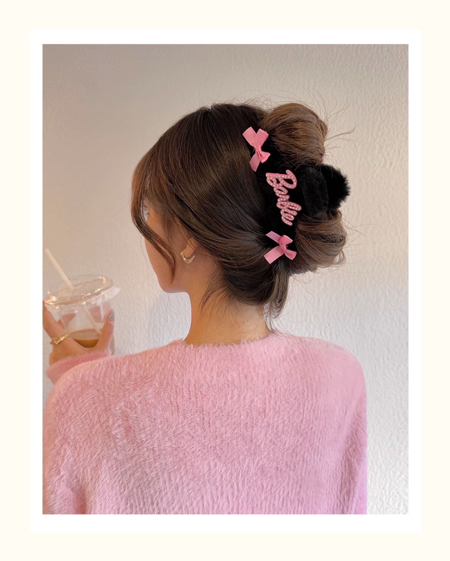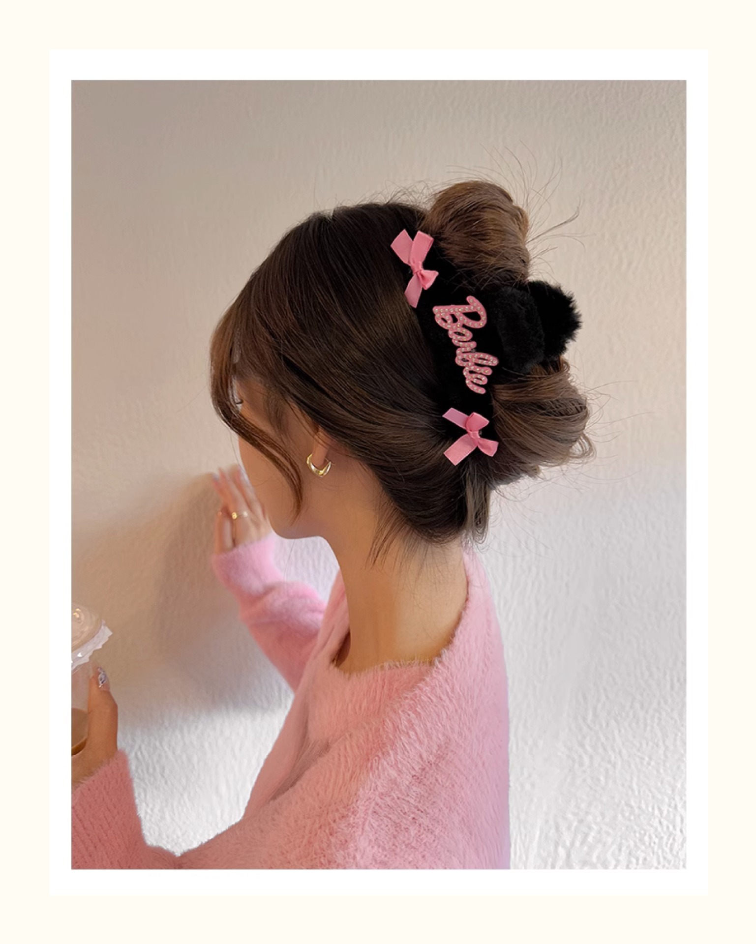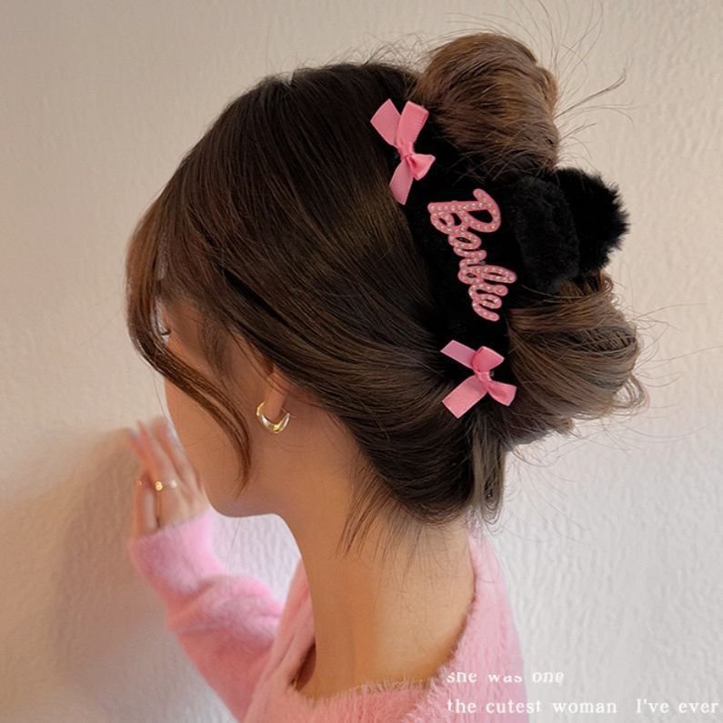芭比风毛绒蝴蝶结抓夹女后脑勺盘发鲨鱼夹子甜美少女可爱发卡头饰