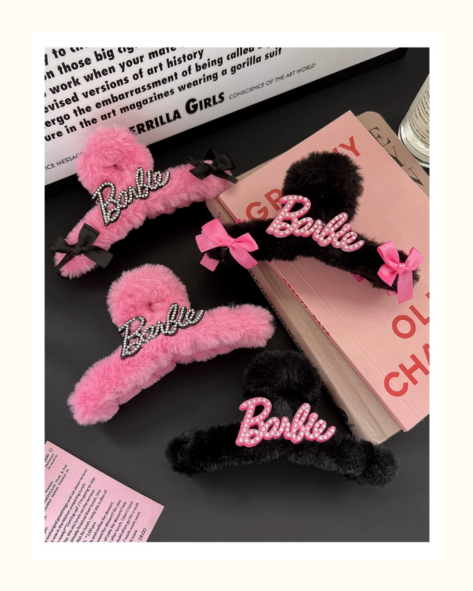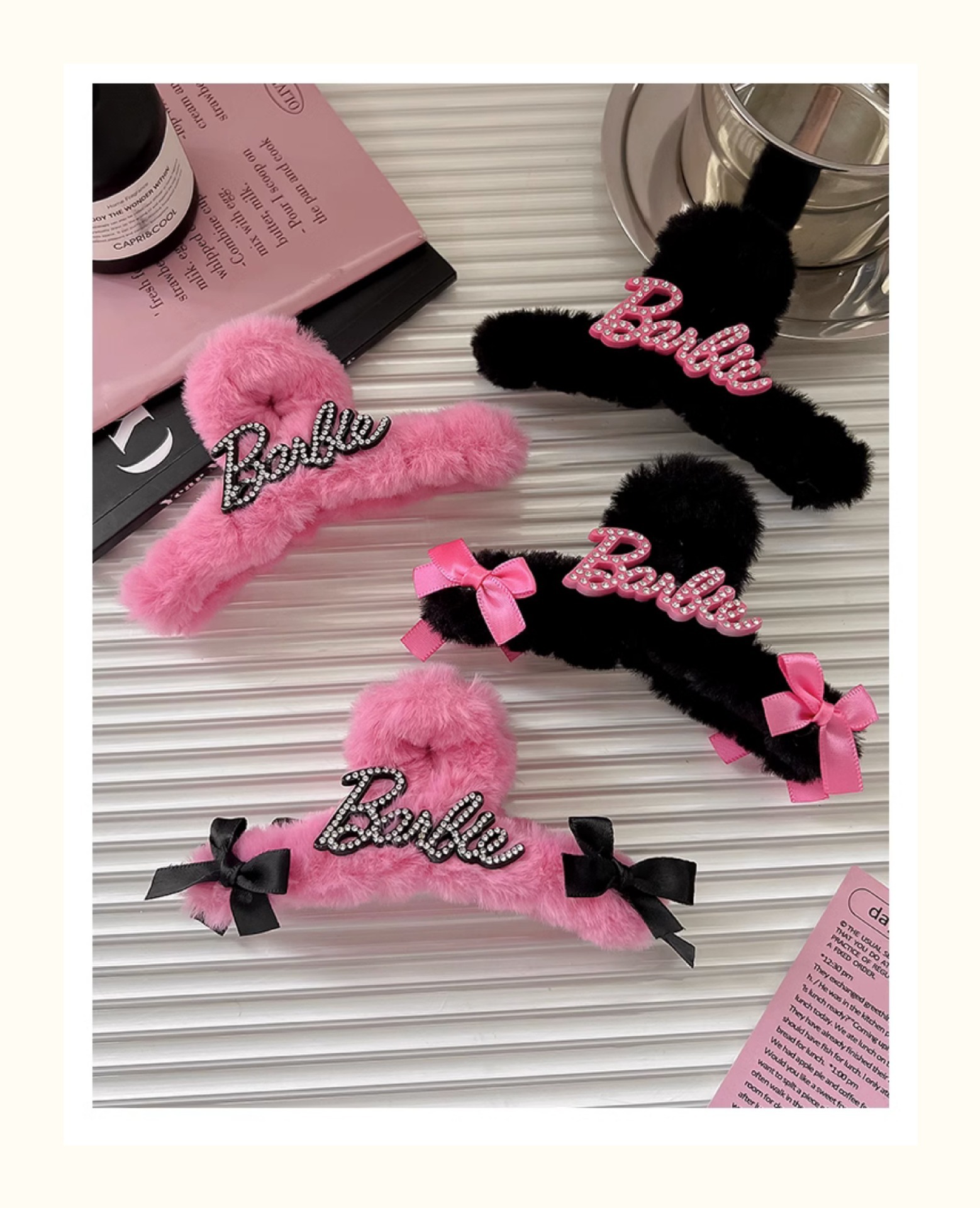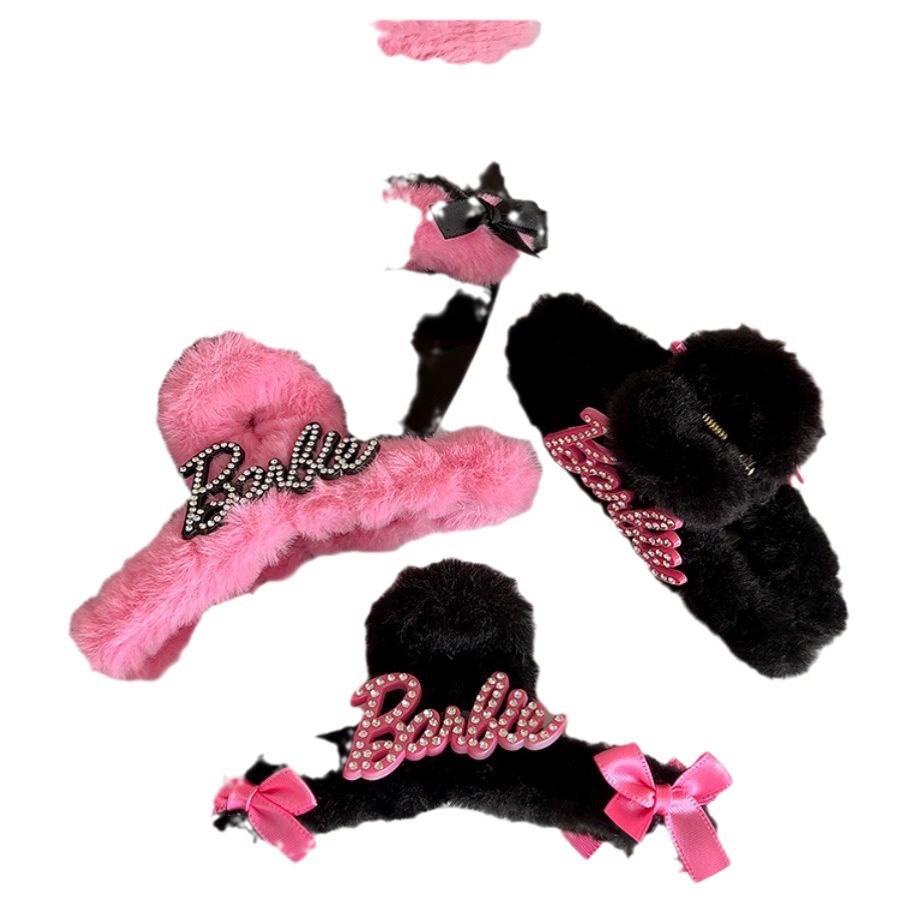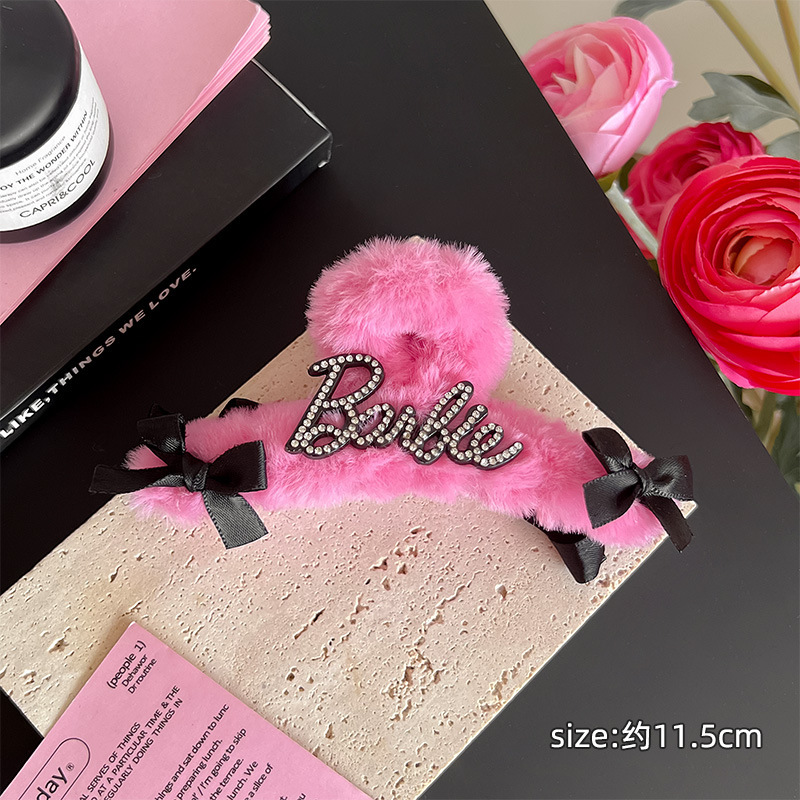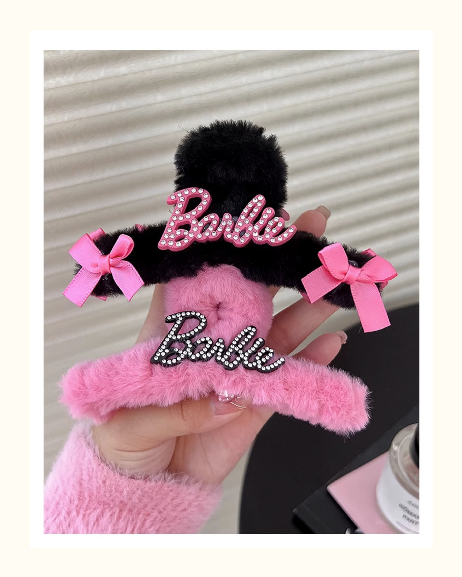 芭比风毛绒蝴蝶结抓夹女后脑勺盘发鲨鱼夹子甜美少女可爱发卡头饰