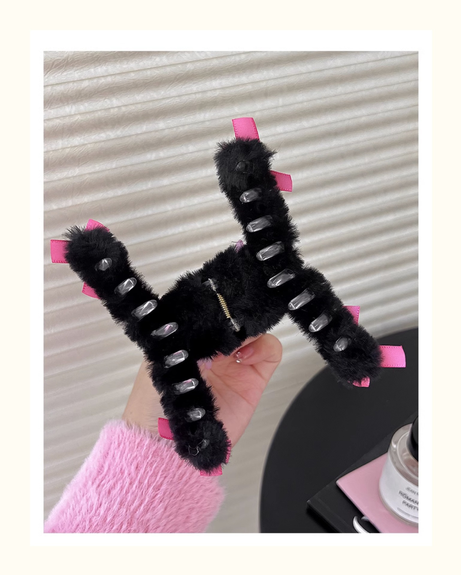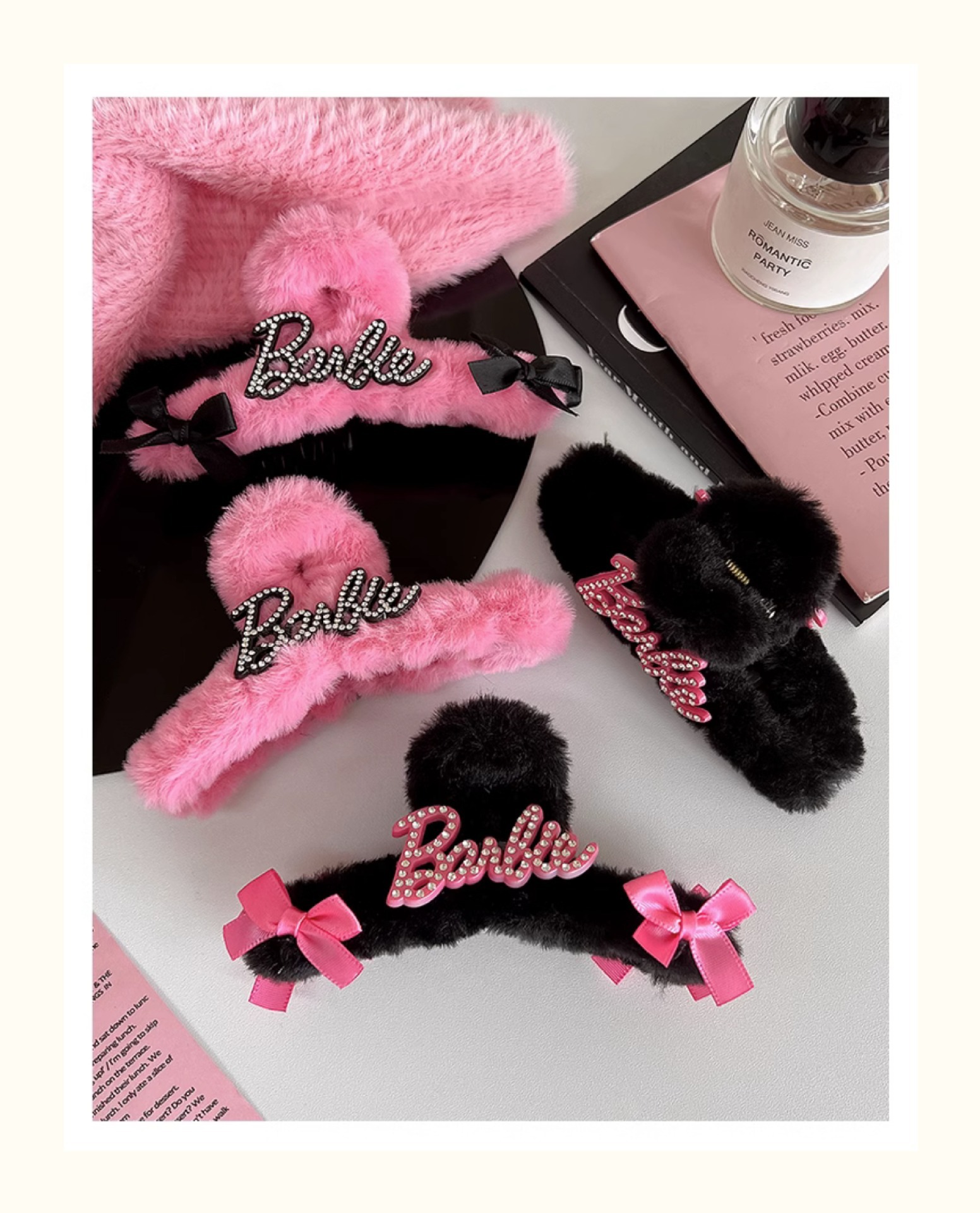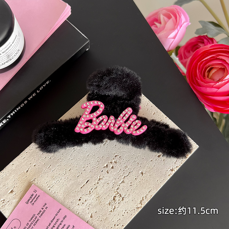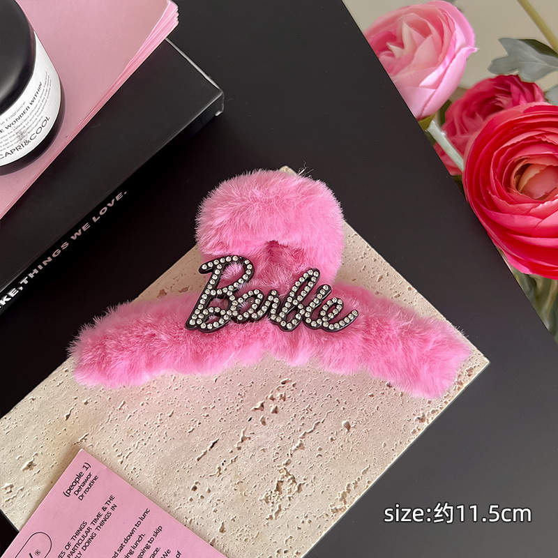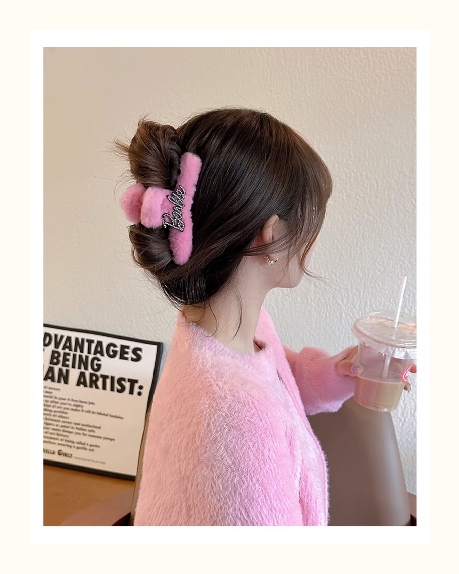 芭比风毛绒蝴蝶结抓夹女后脑勺盘发鲨鱼夹子甜美少女可爱发卡头饰