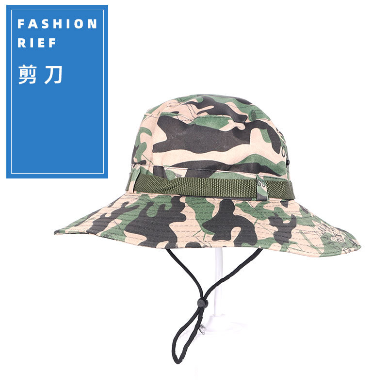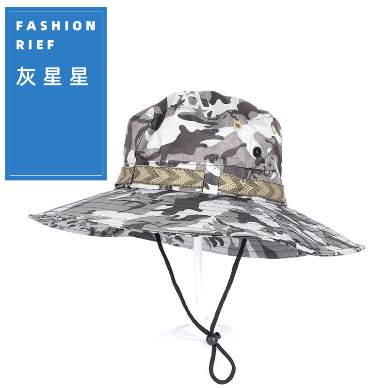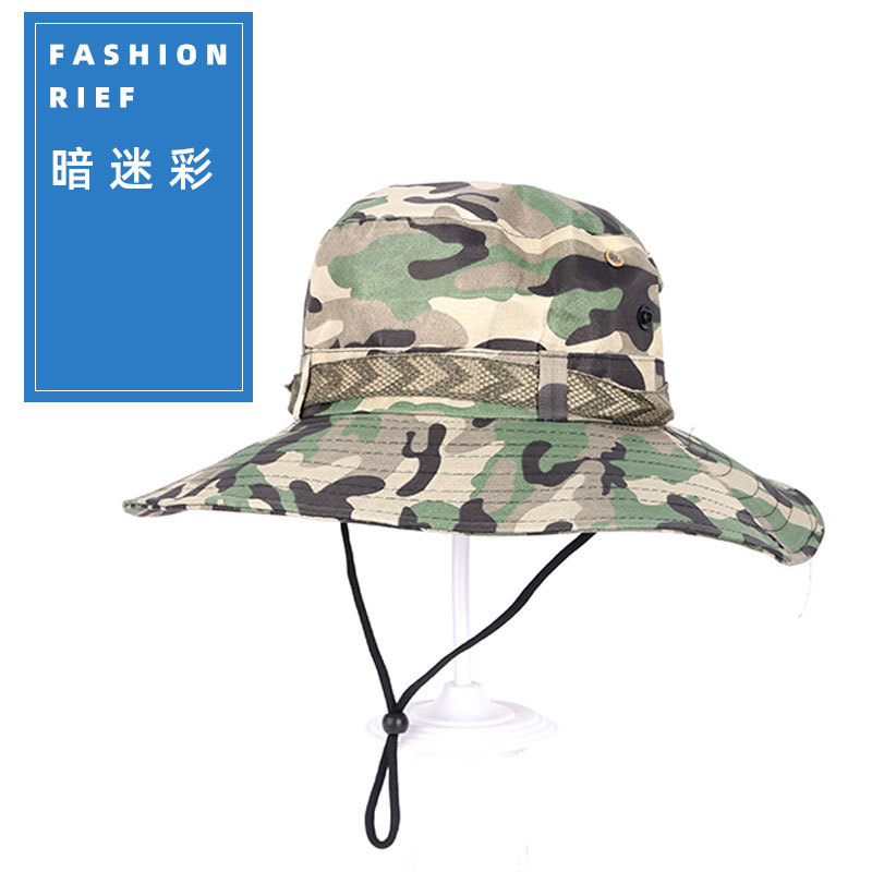 外贸帽子春秋男户外登山徒步渔夫迷彩帽韩版大檐防晒遮脸钓鱼帽